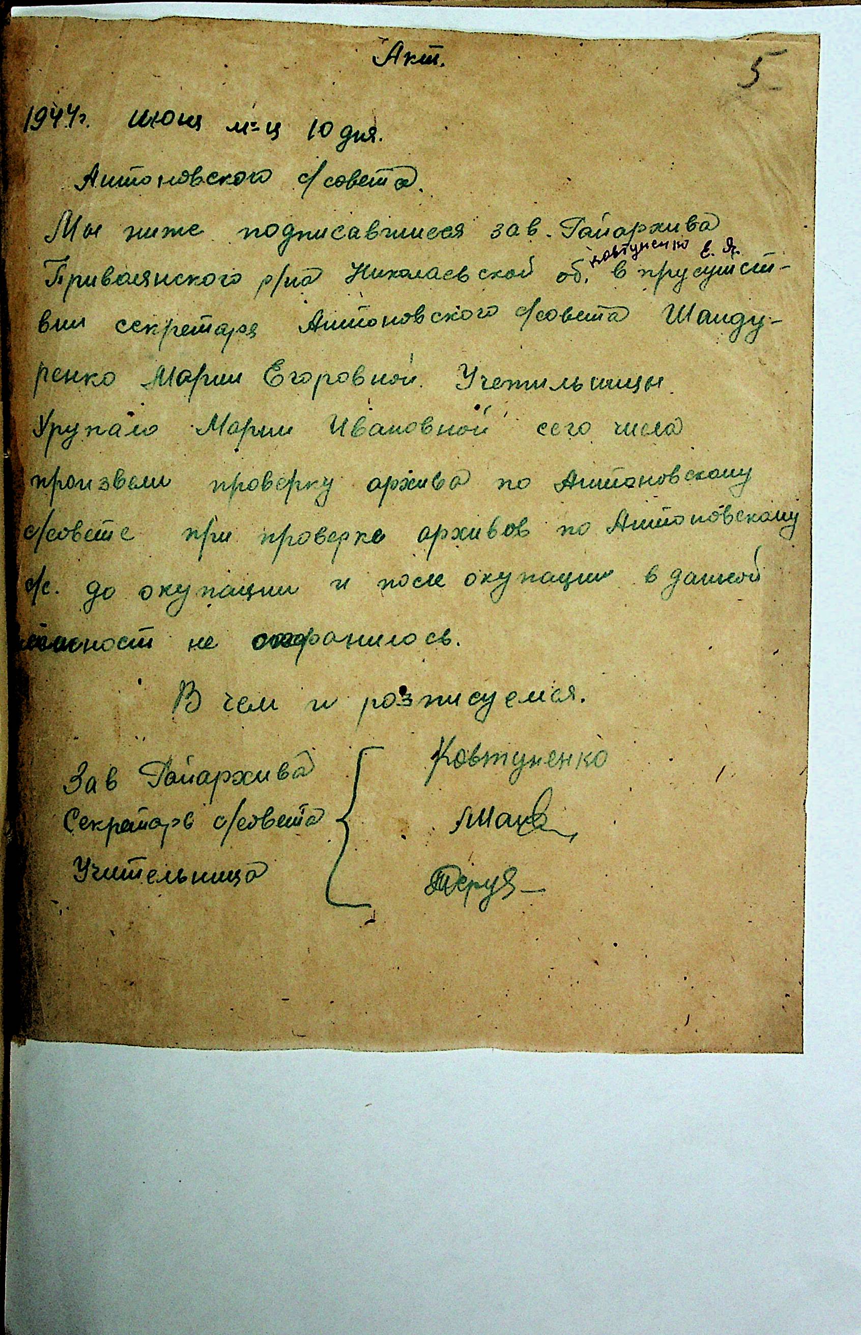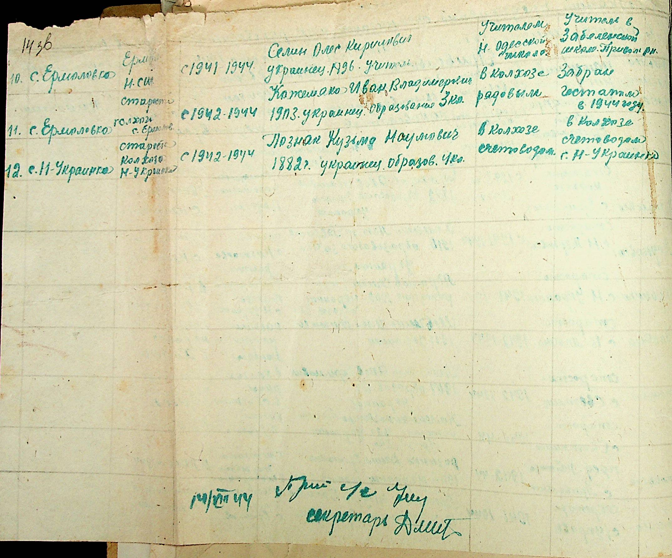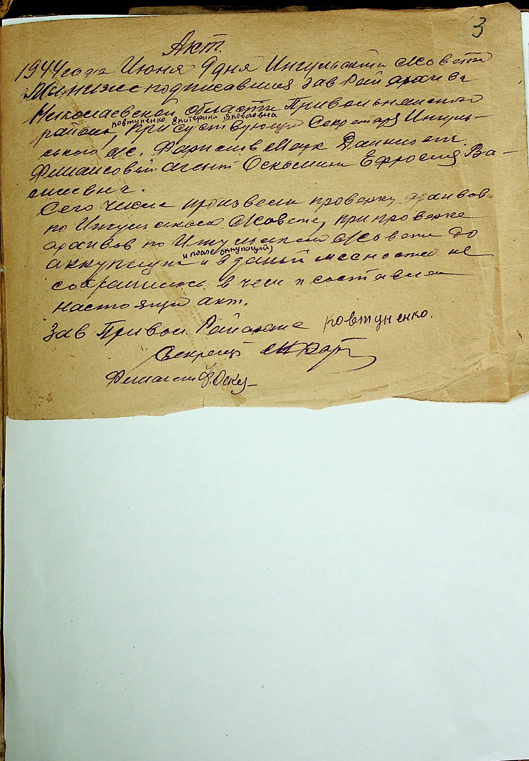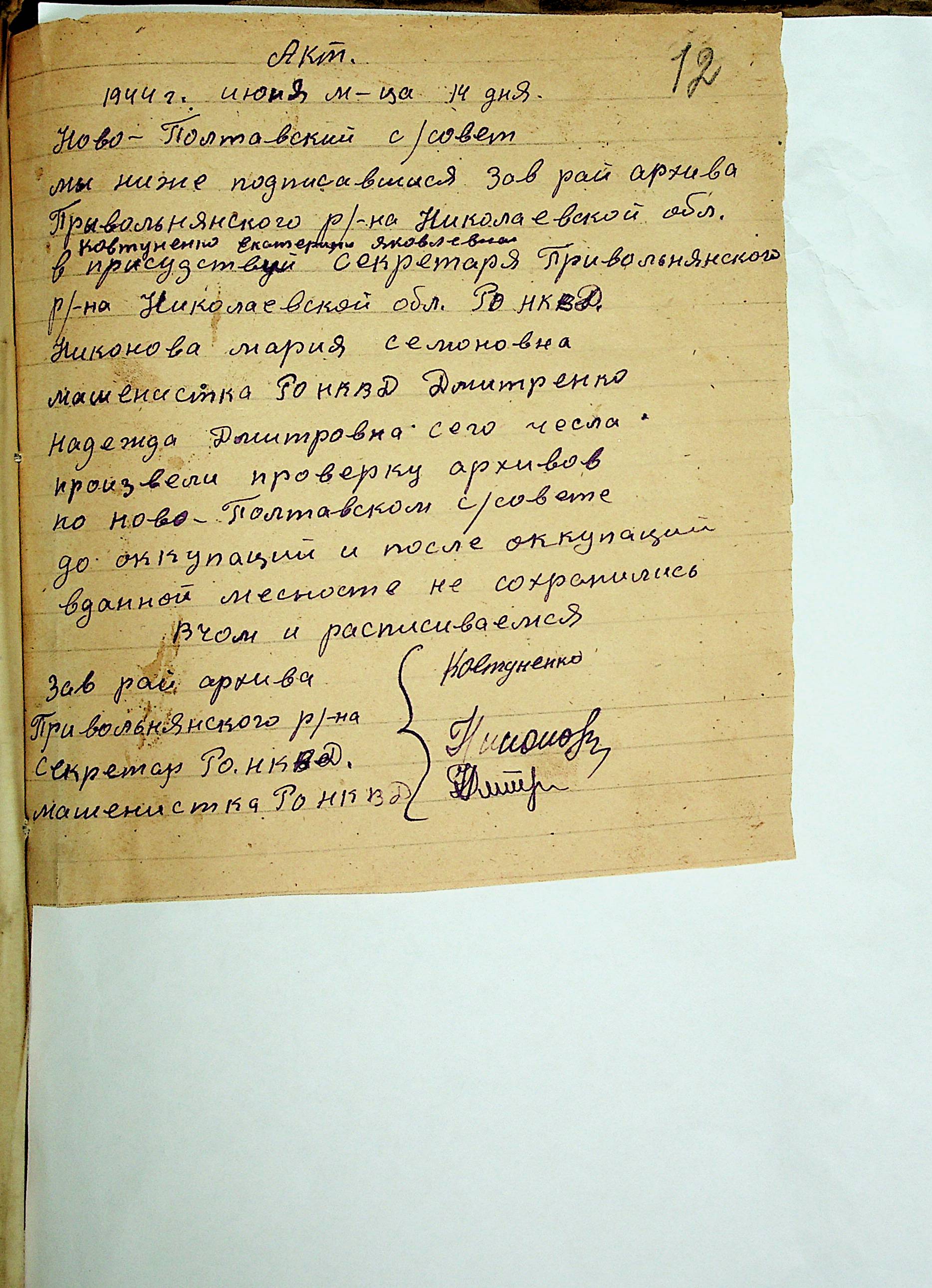 • • • • Справа № 31 “Хронологічні довідки (списки громадян викрадених до Німеччини, розстріляних, списки керівників установ, робітників та службовців) періоду німецької окупації 1941-1944 та часу визволення Радянською армією Привільнянського району Миколаївської області”