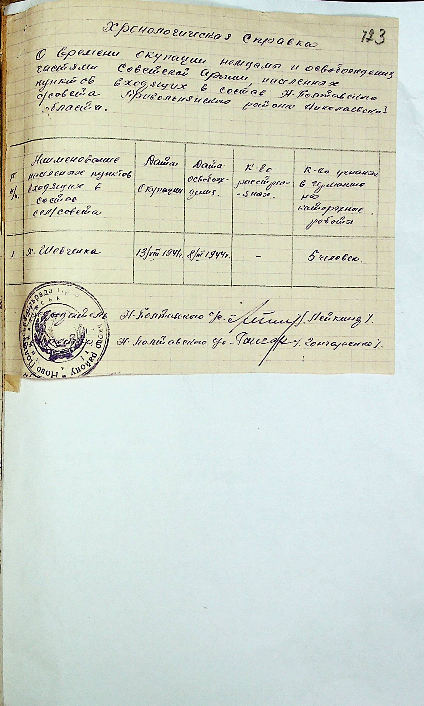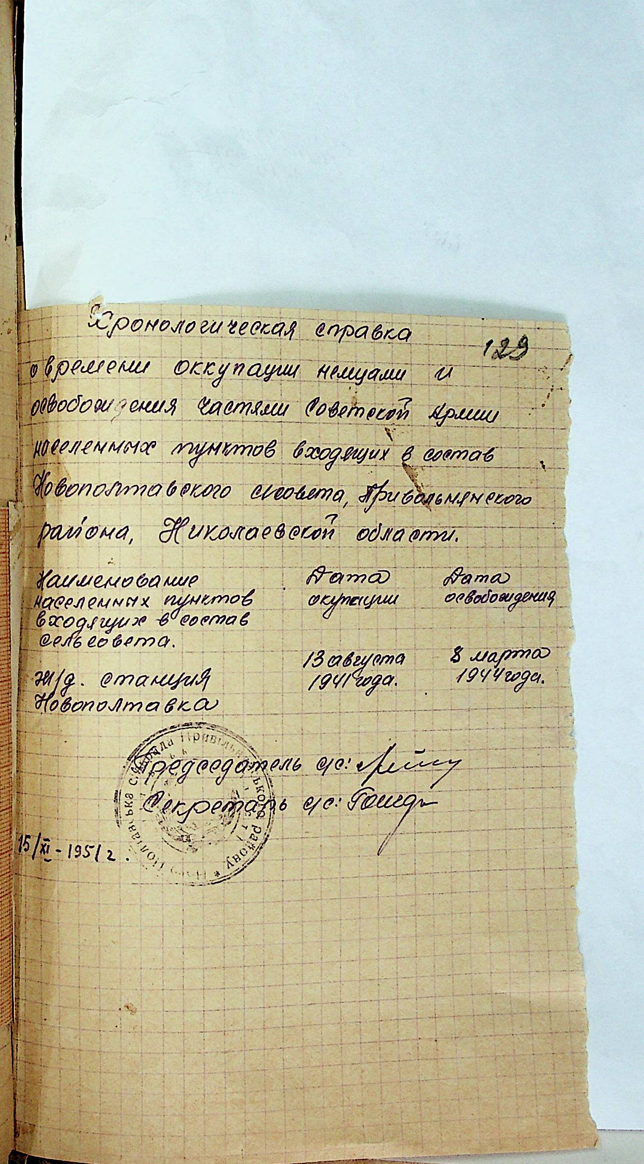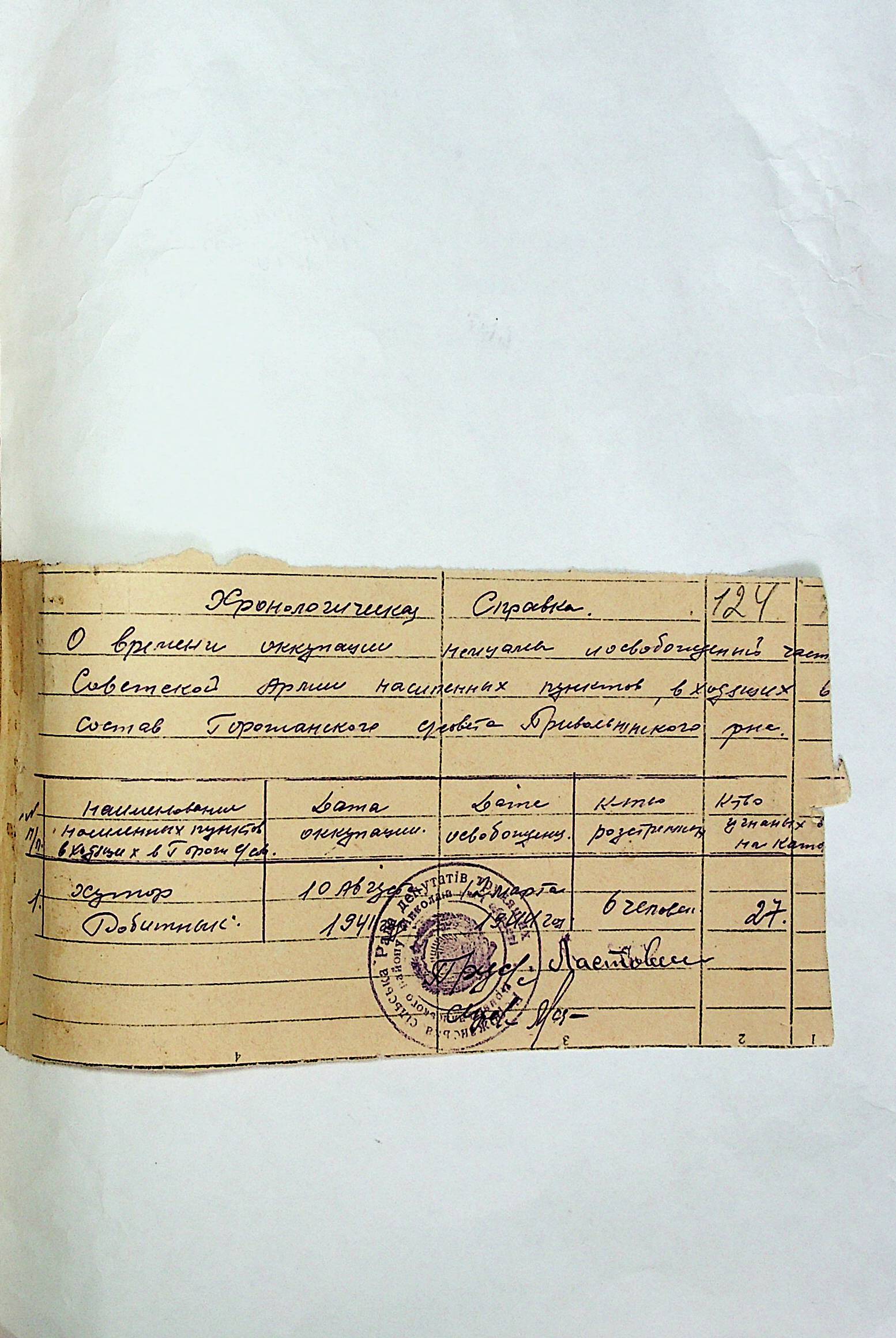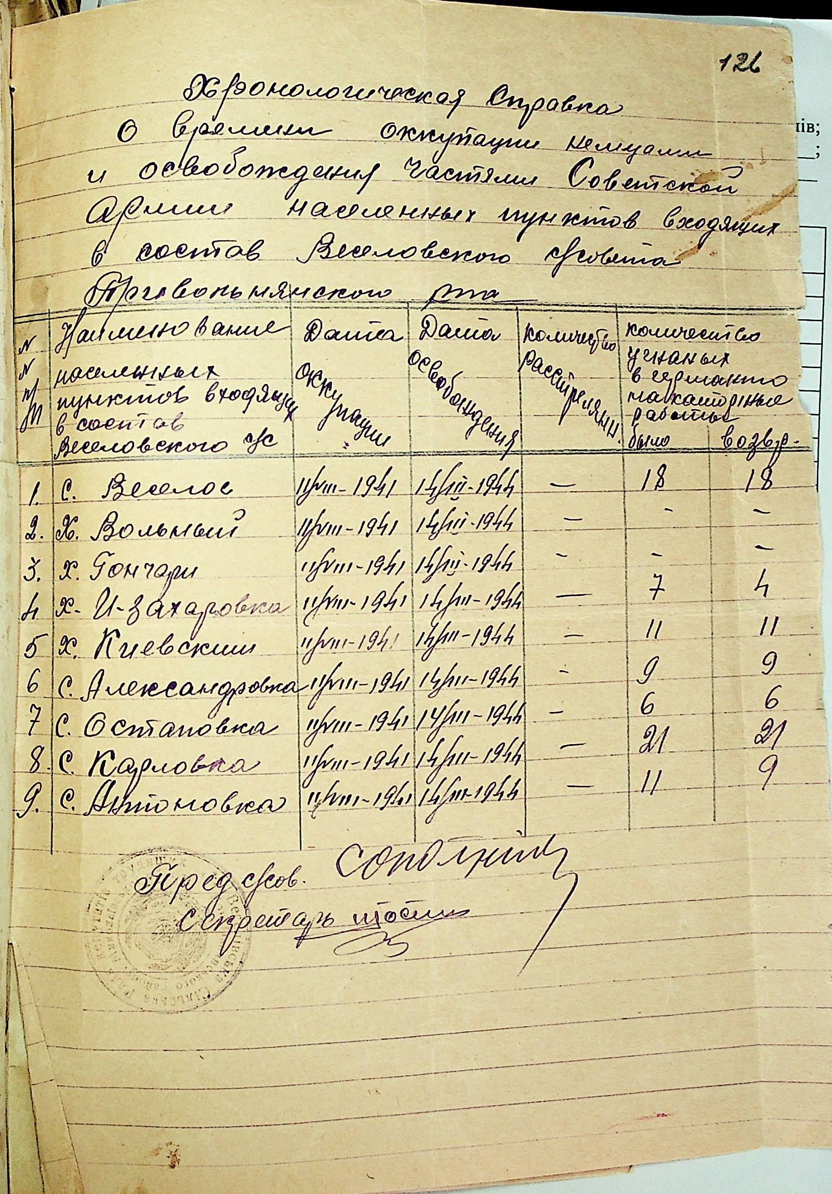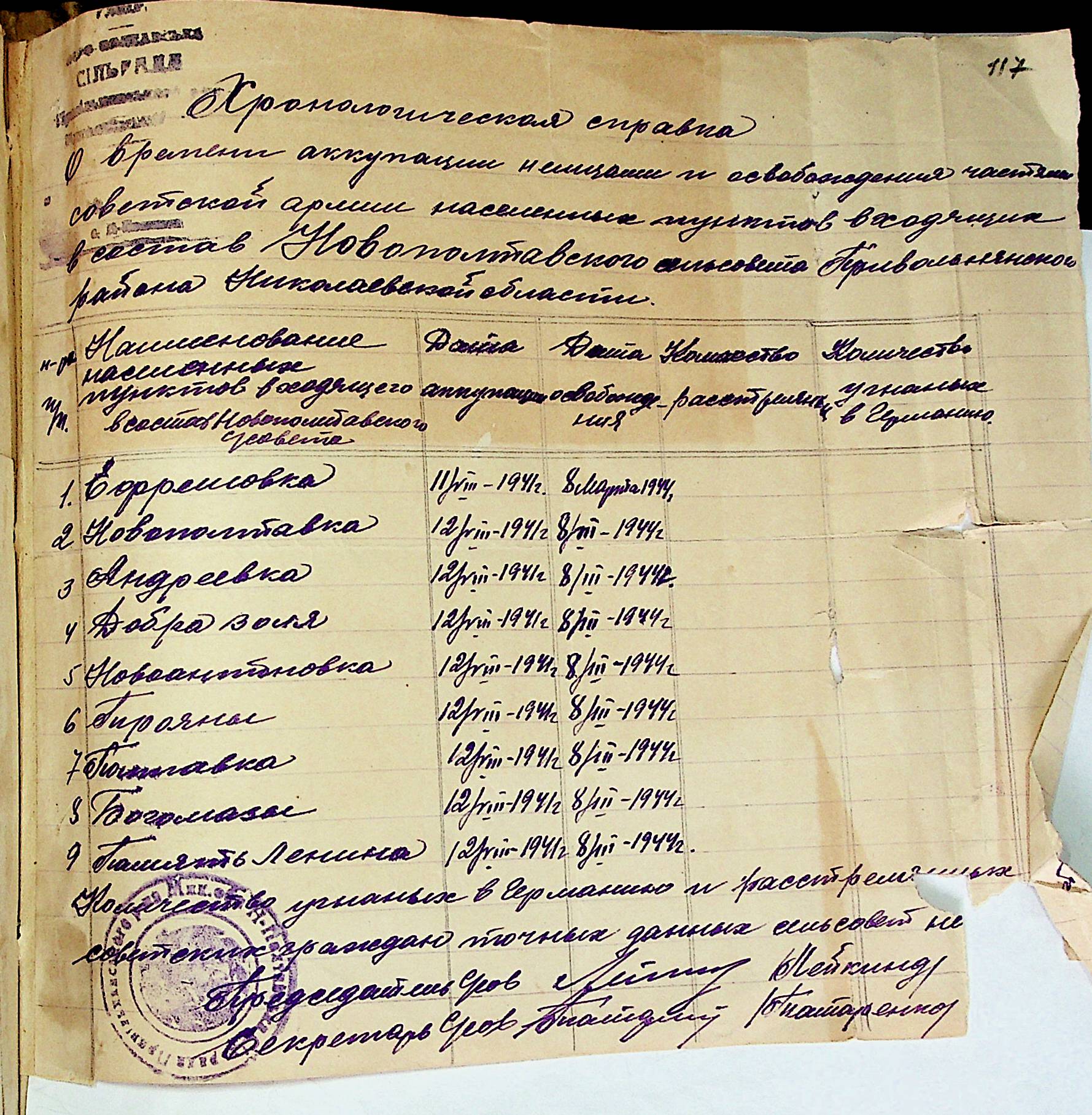 • • • • Справа № 31 “Хронологічні довідки (списки громадян викрадених до Німеччини, розстріляних, списки керівників установ, робітників та службовців) періоду німецької окупації 1941-1944 та часу визволення Радянською армією Привільнянського району Миколаївської області”