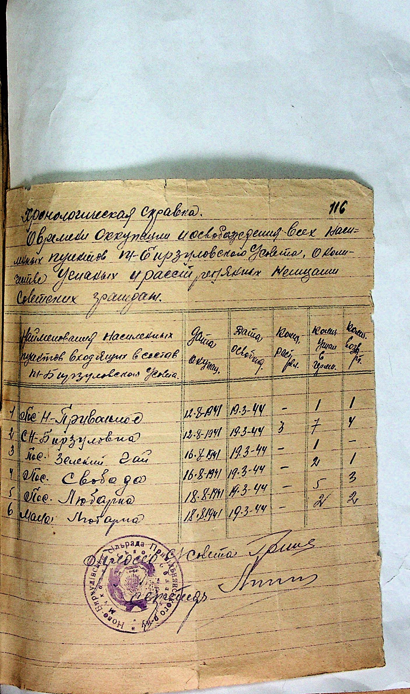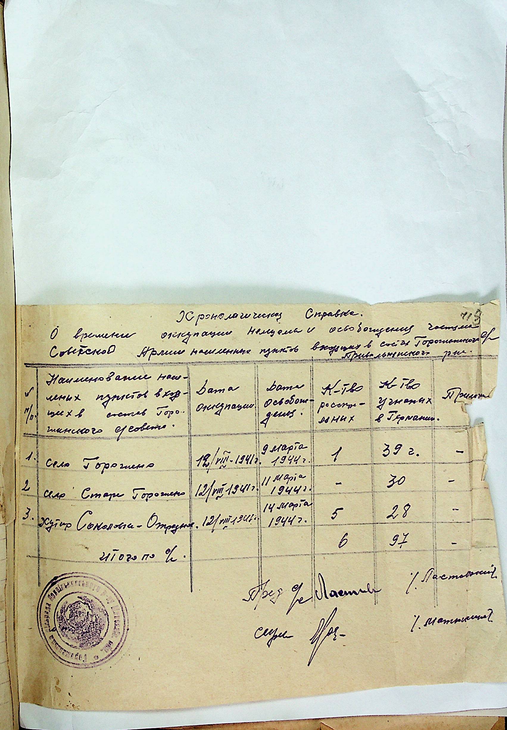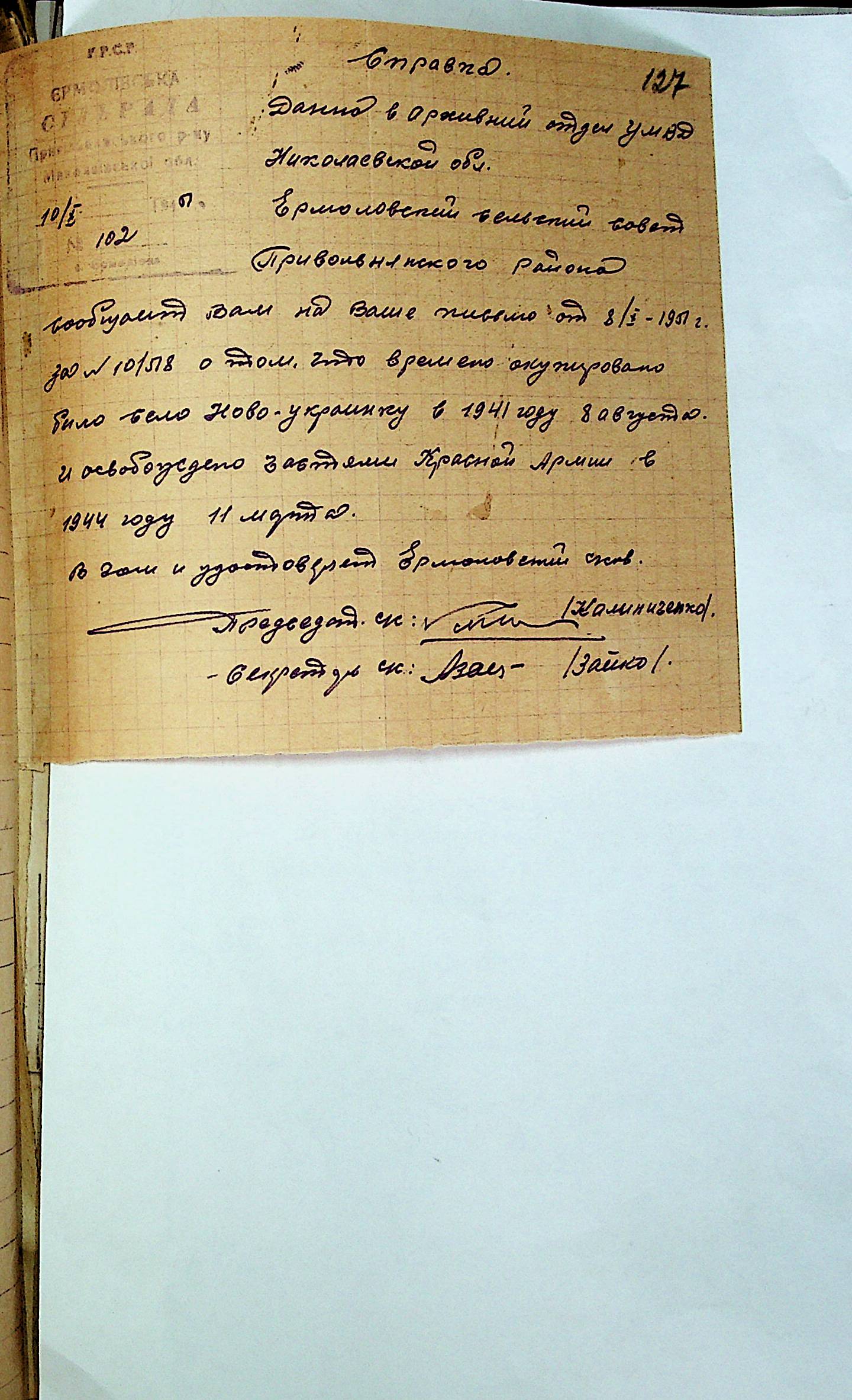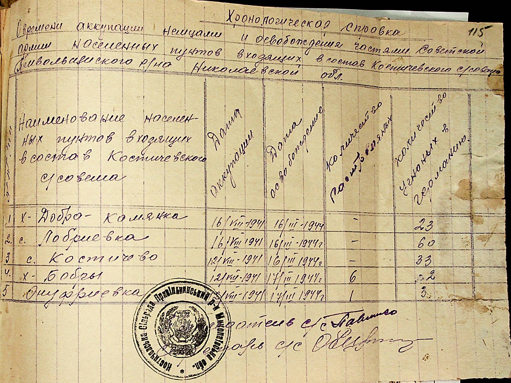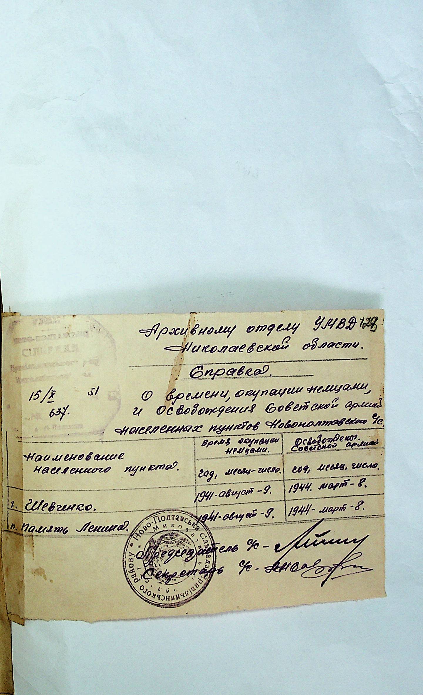 • • • • Справа № 31 “Хронологічні довідки (списки громадян викрадених до Німеччини, розстріляних, списки керівників установ, робітників та службовців) періоду німецької окупації 1941-1944 та часу визволення Радянською армією Привільнянського району Миколаївської області”