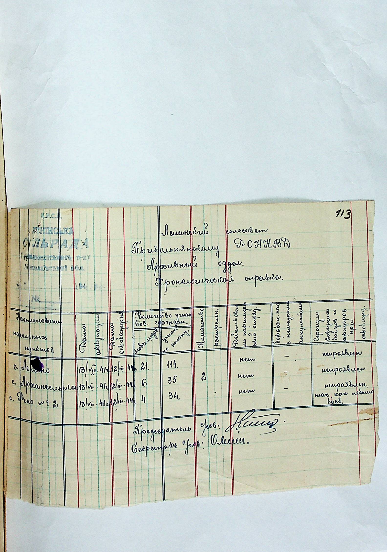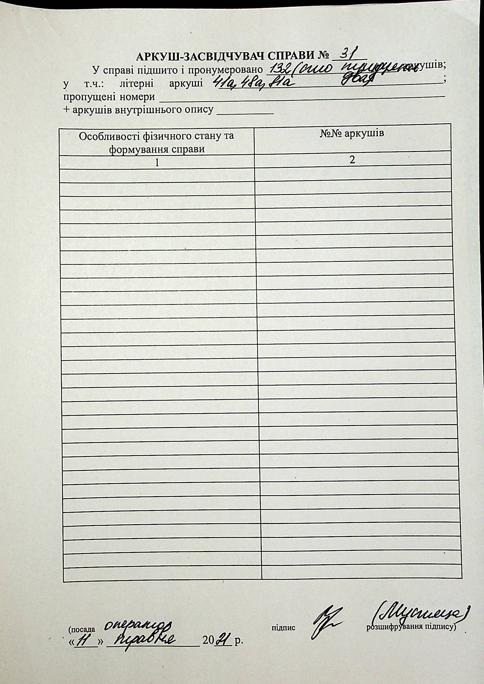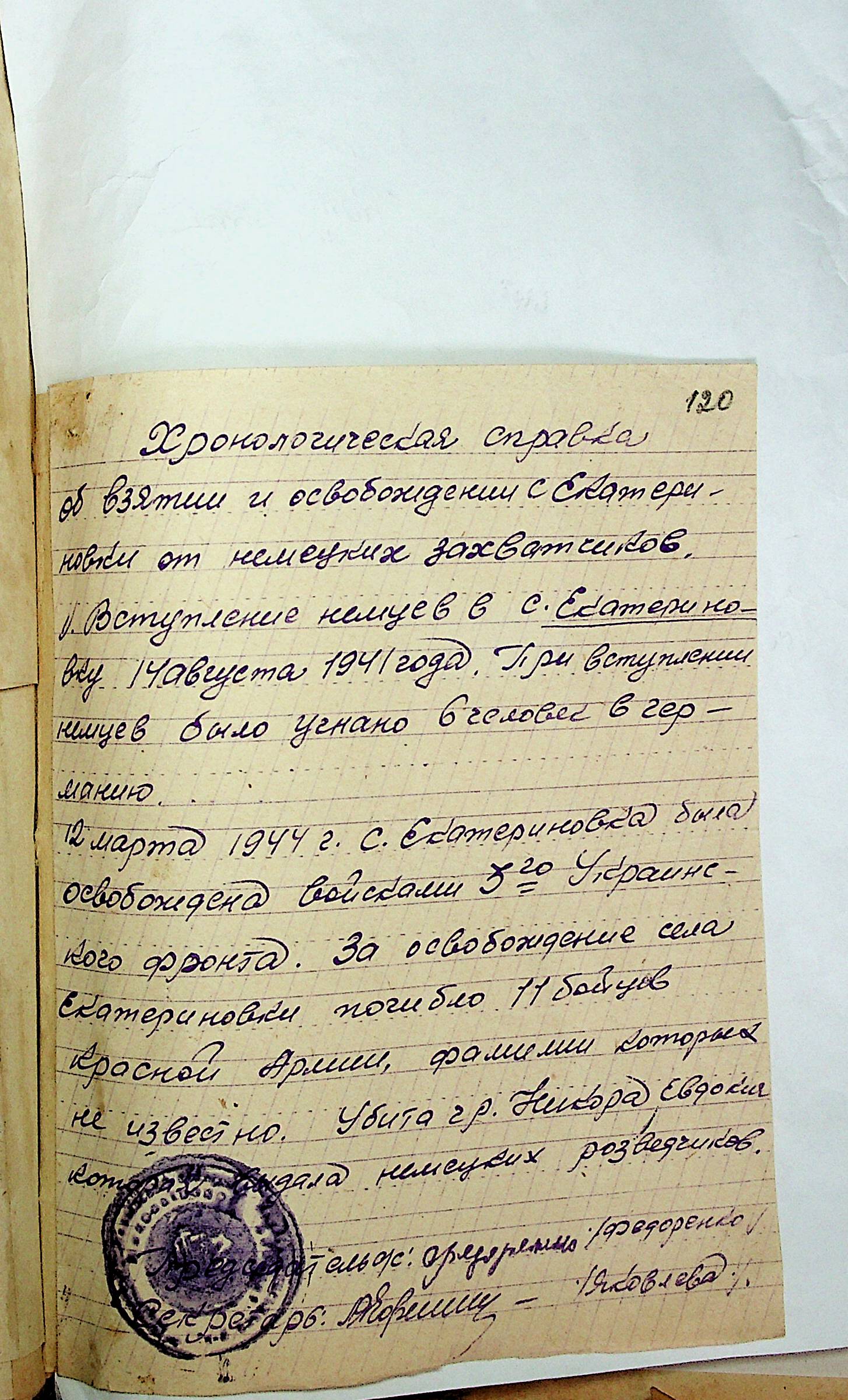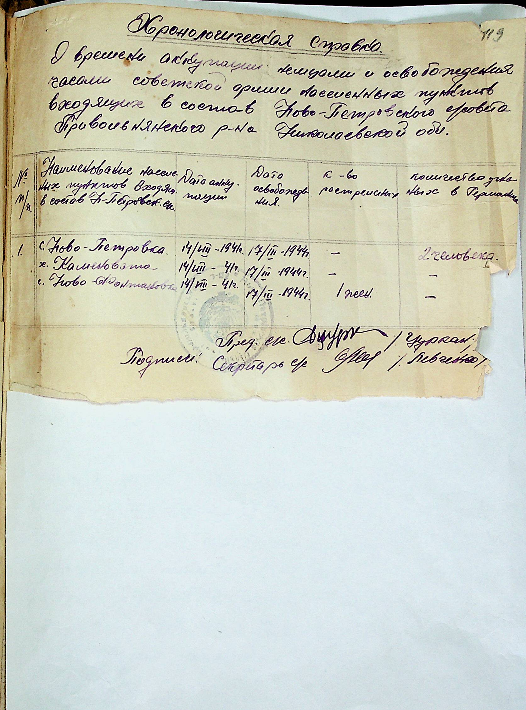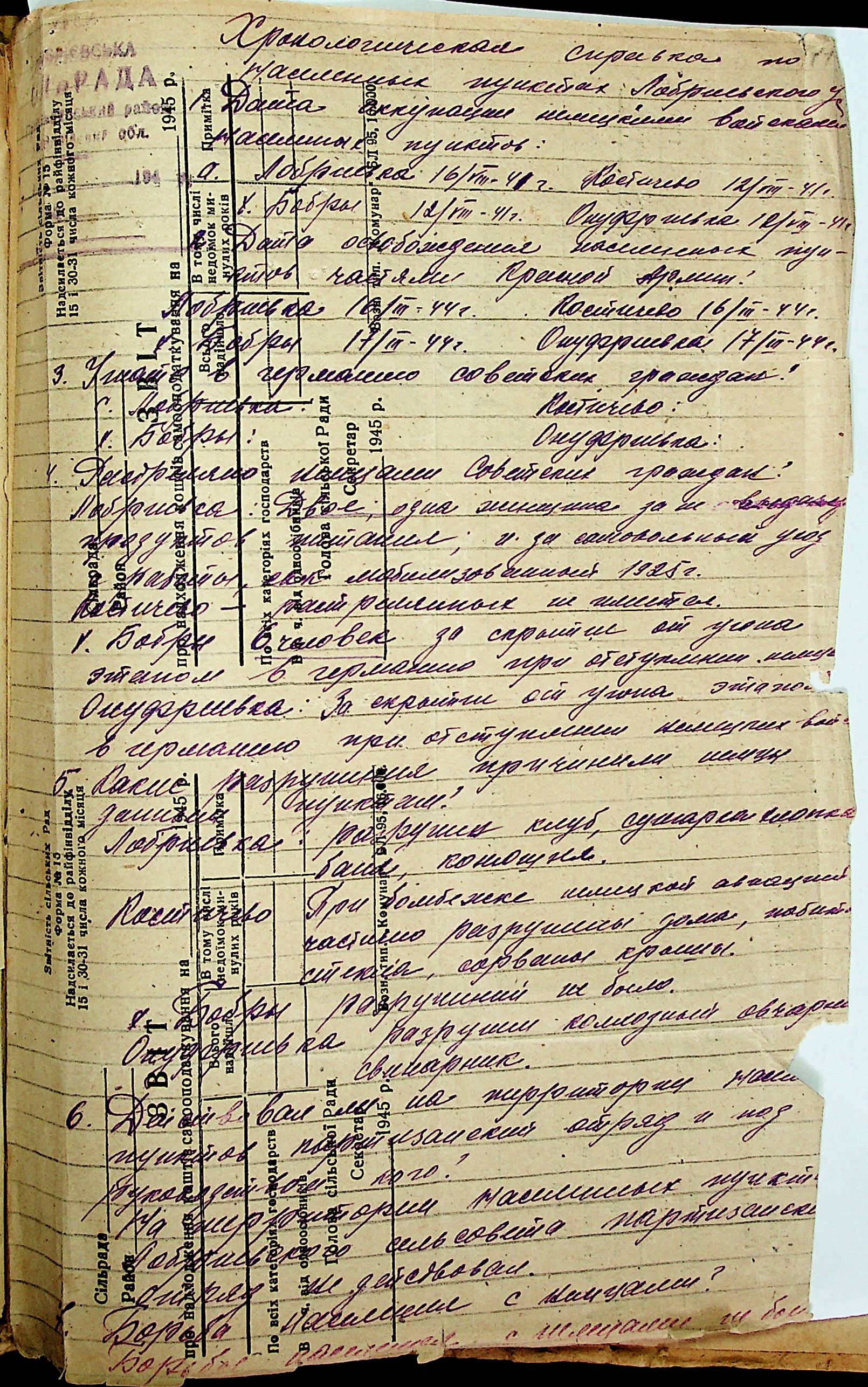• • • • Справа № 31 “Хронологічні довідки (списки громадян викрадених до Німеччини, розстріляних, списки керівників установ, робітників та службовців) періоду німецької окупації 1941-1944 та часу визволення Радянською армією Привільнянського району Миколаївської області”