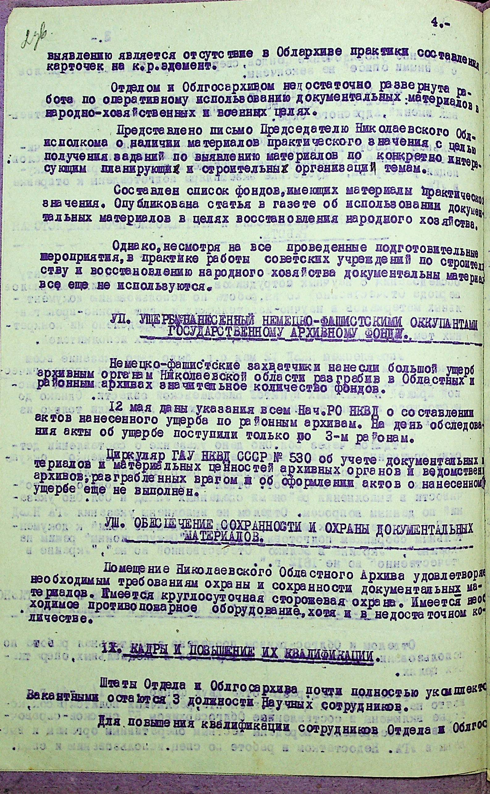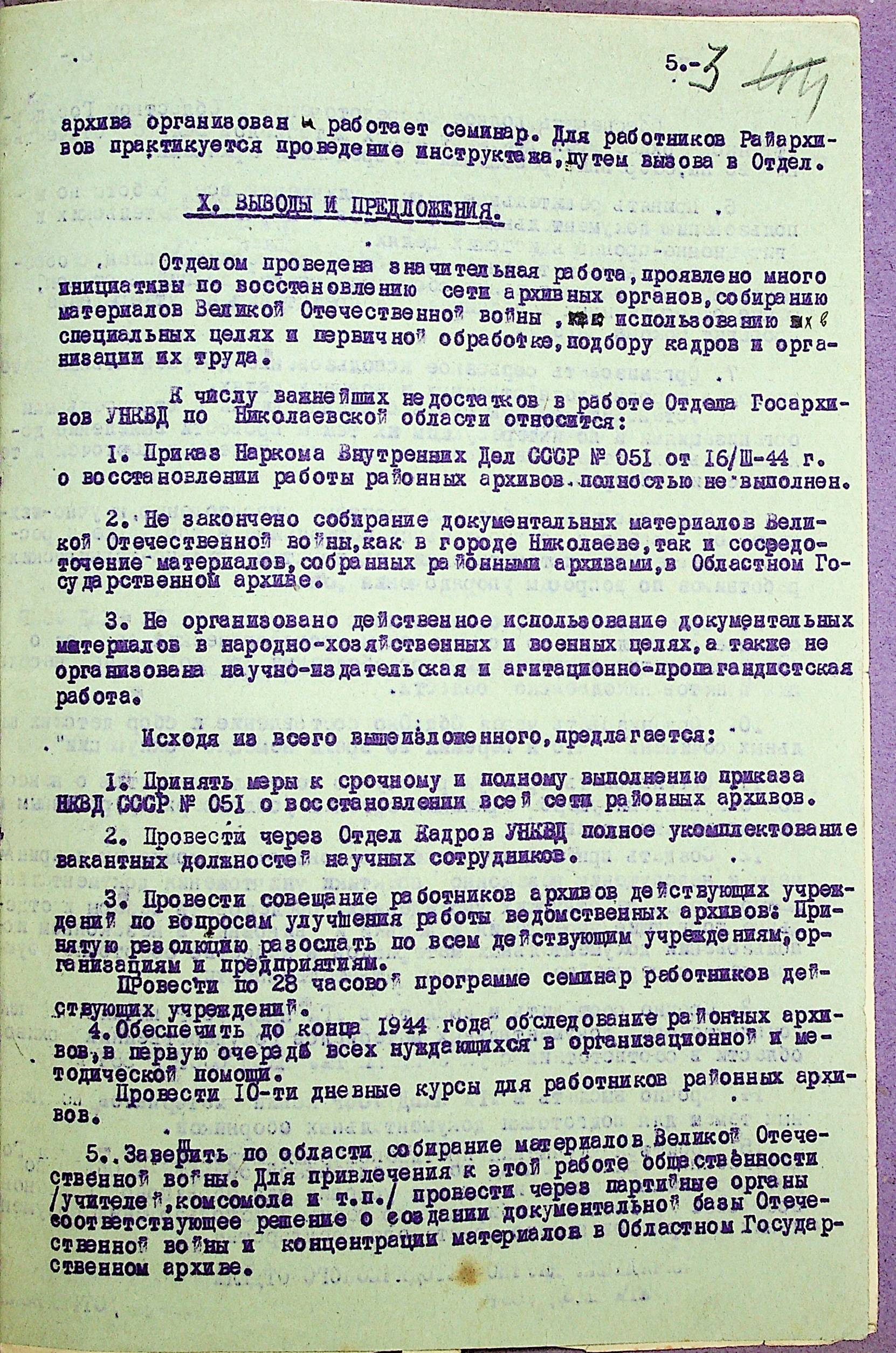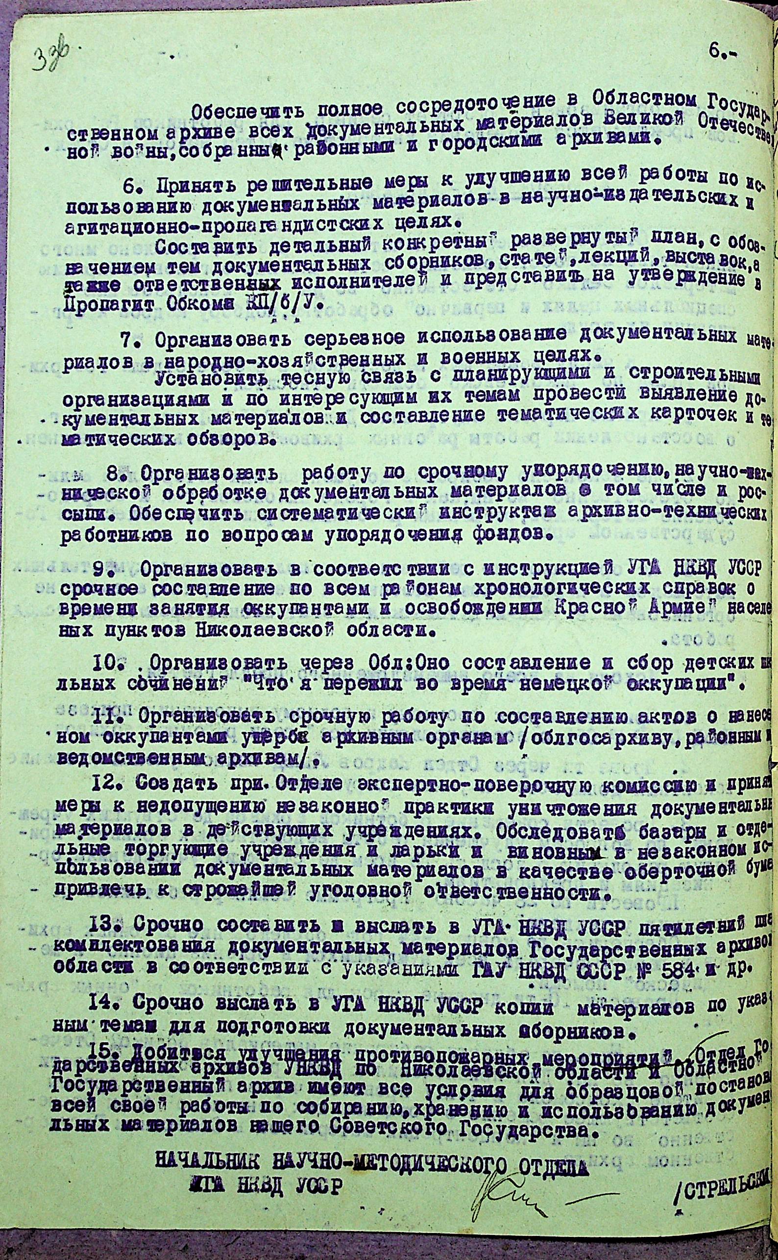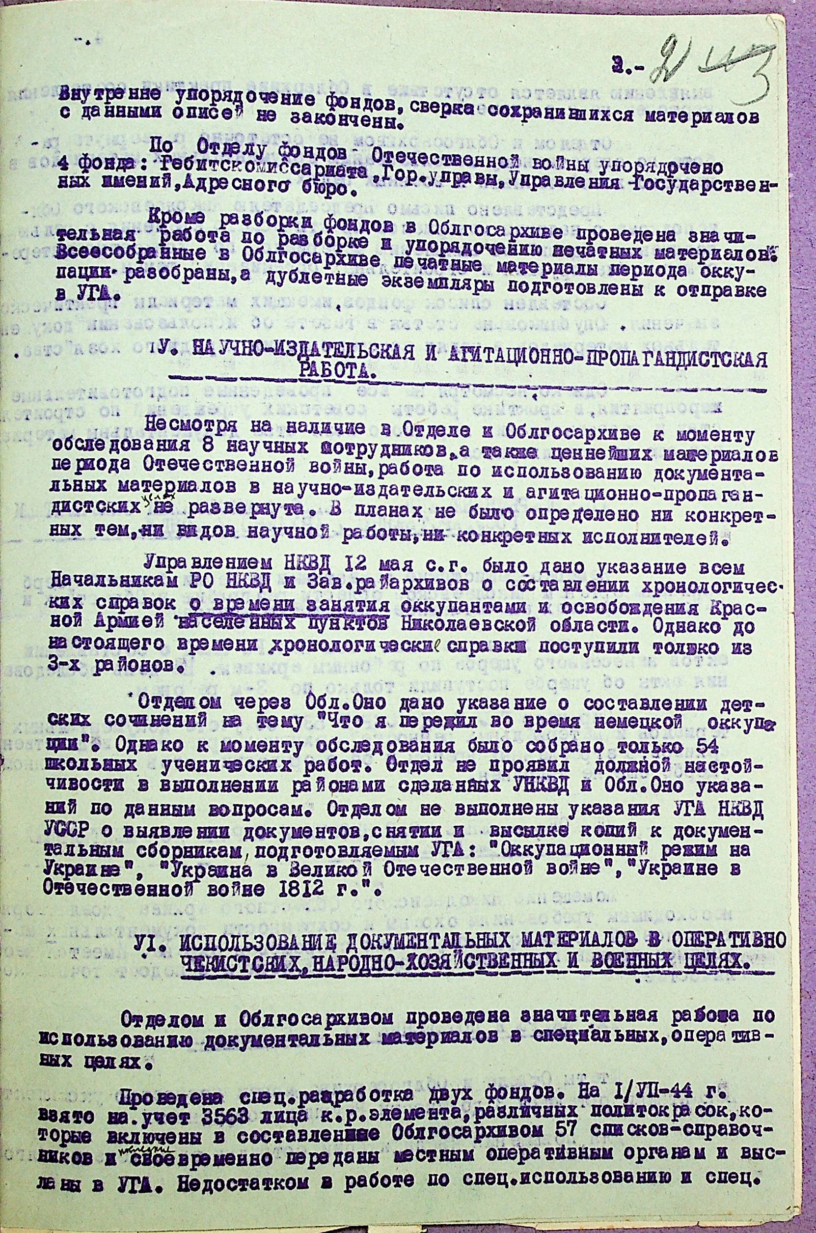 • • • • Справа № 35 “Акти перевірки стану та роботи архівного відділу та обласного державного архіву УНКВС Миколаївської області”