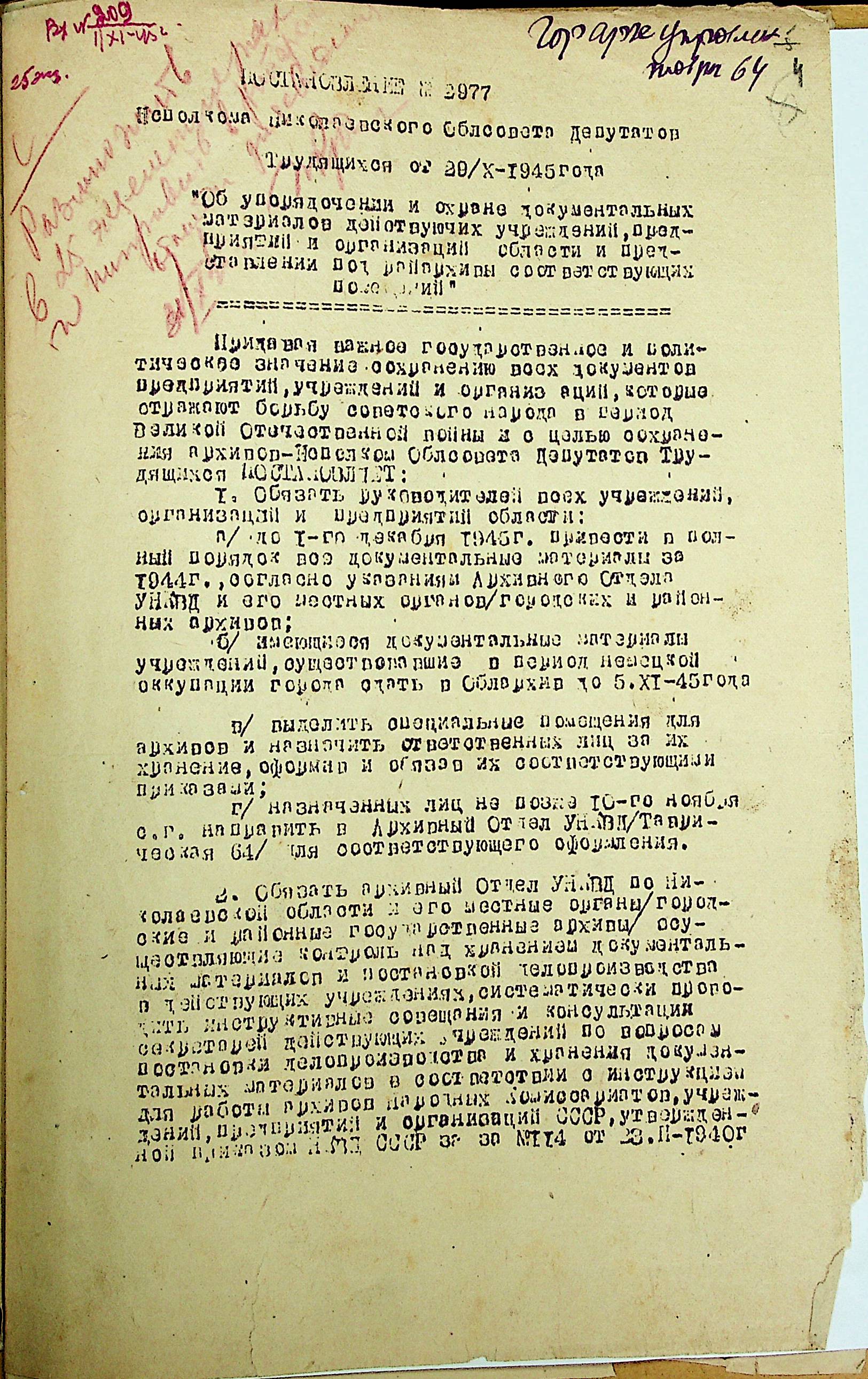 ◦ ◦ Фонд № Р-1002 “Архівний відділ управління виконкому Миколаївської обласної Ради народних депутатів, м. Миколаїв”