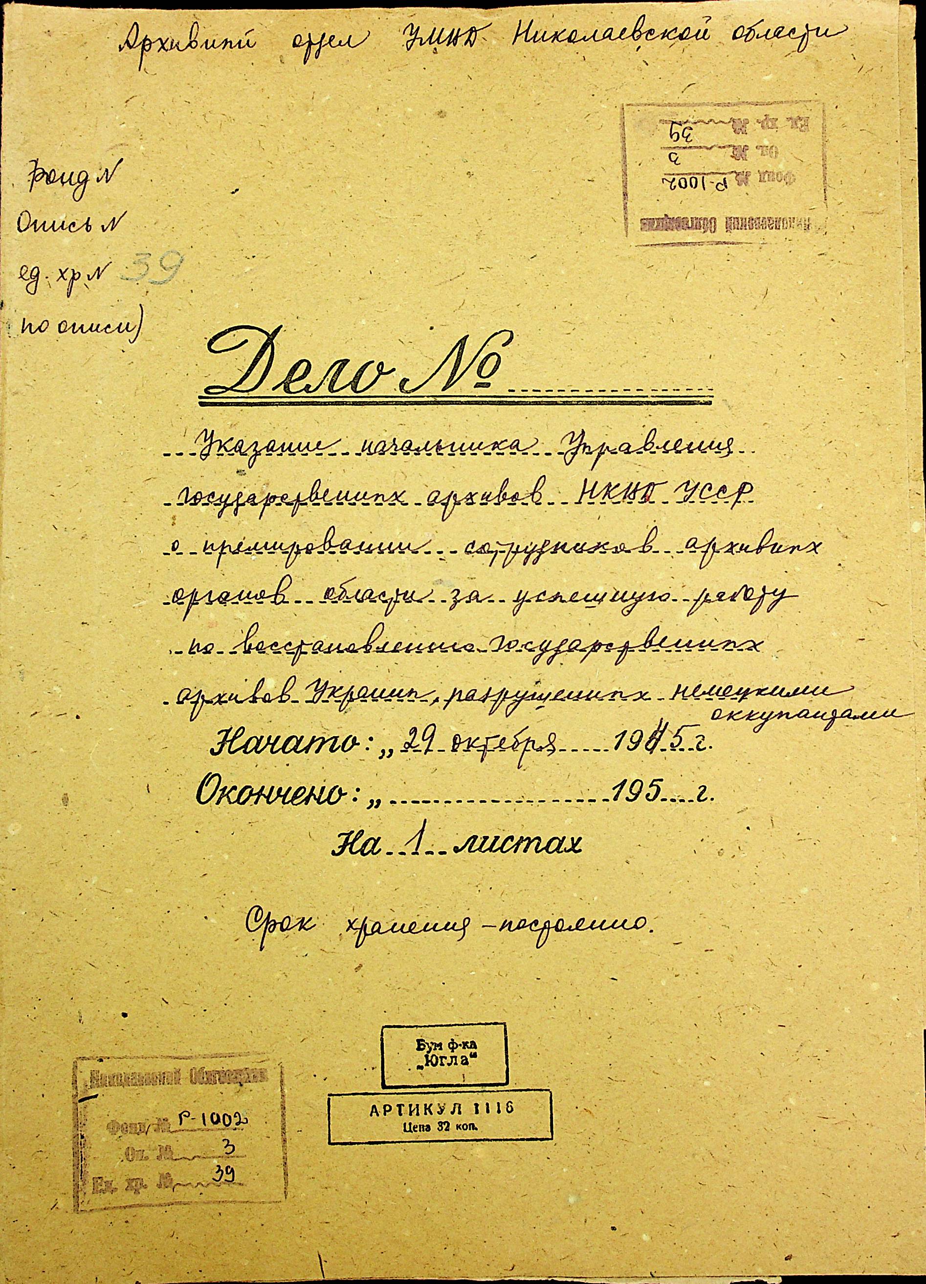 Фонд Р-1002 / Опис 3 / Справа 039