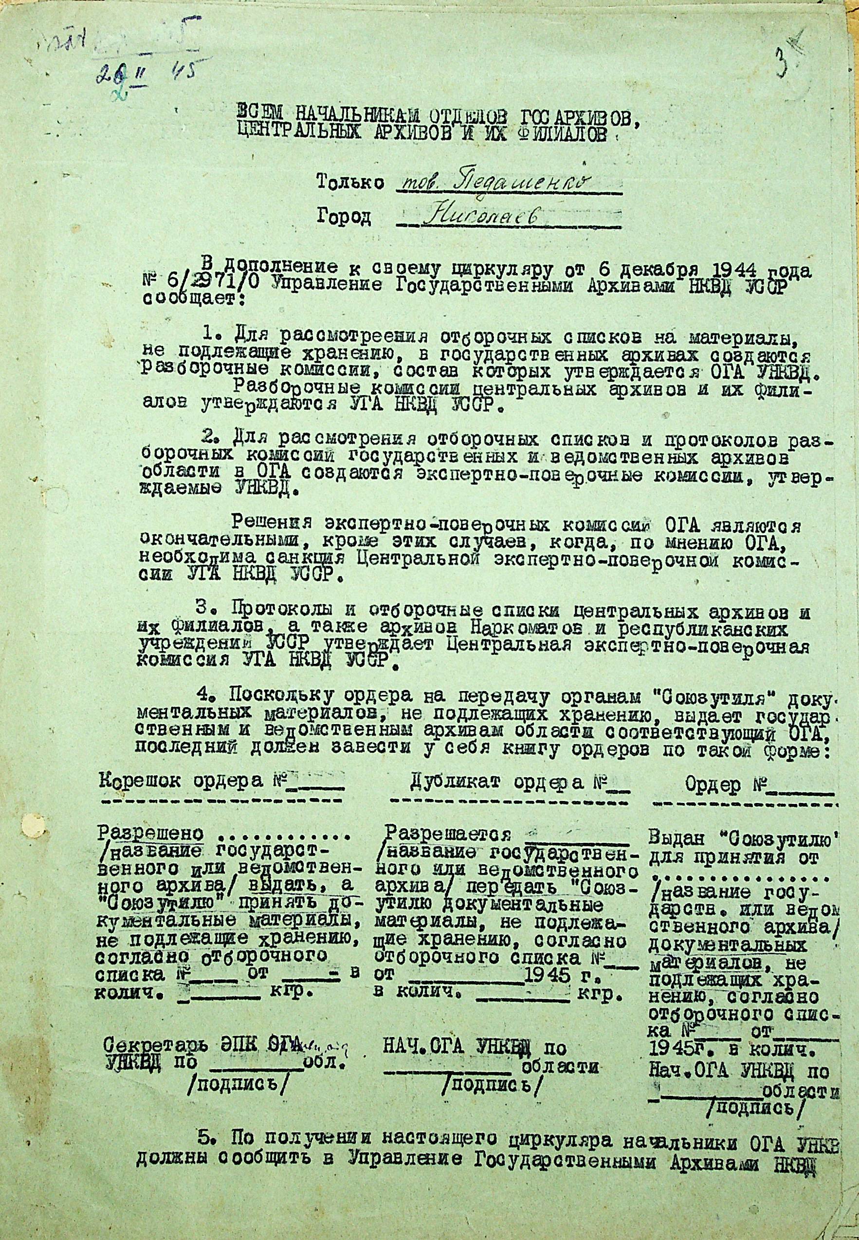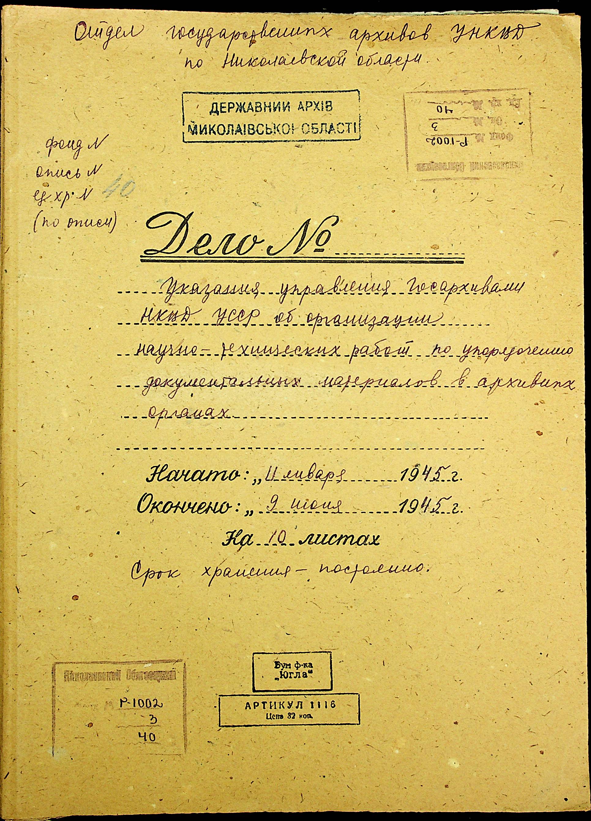 ◦ ◦ Фонд № Р-1002 “Архівний відділ управління виконкому Миколаївської обласної Ради народних депутатів, м. Миколаїв”
