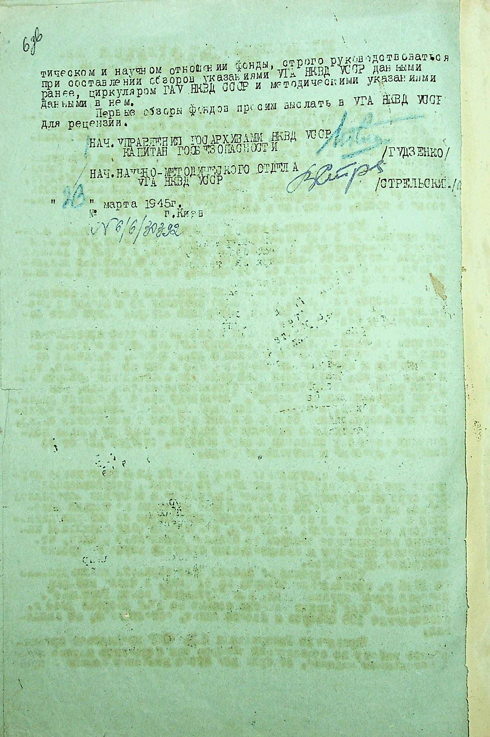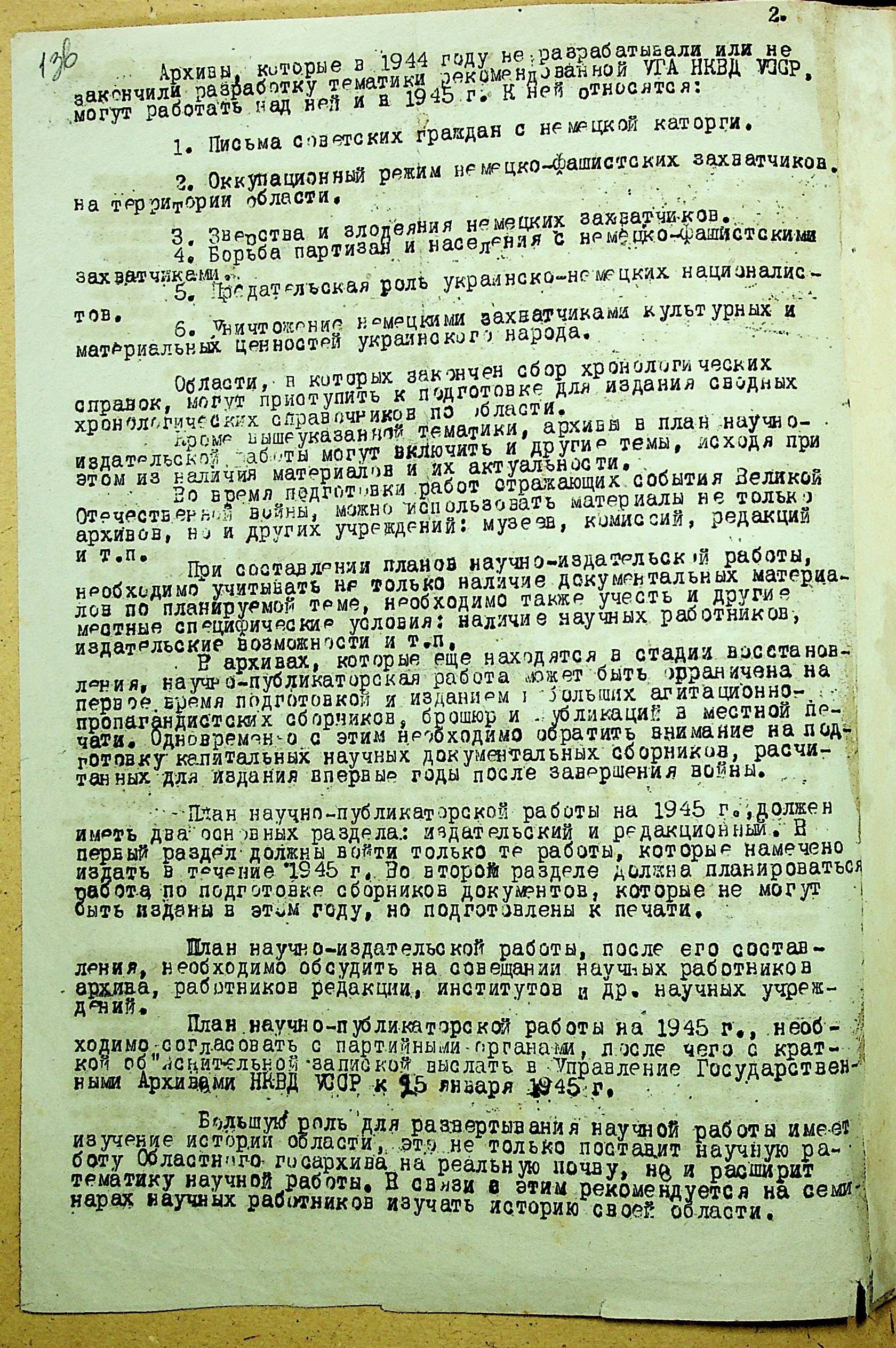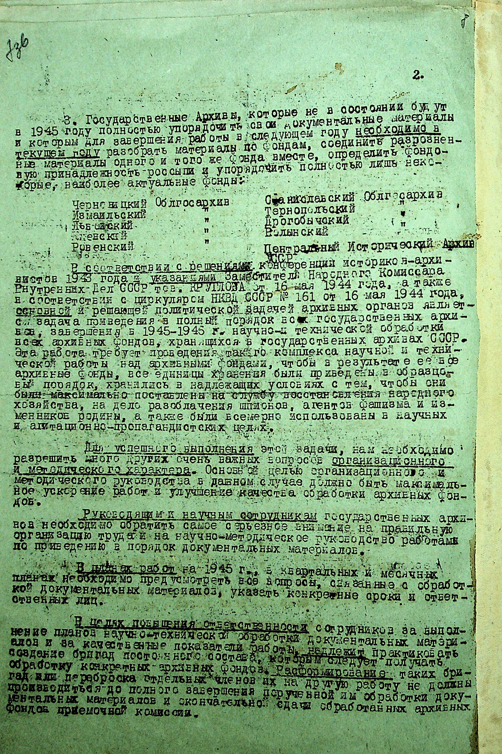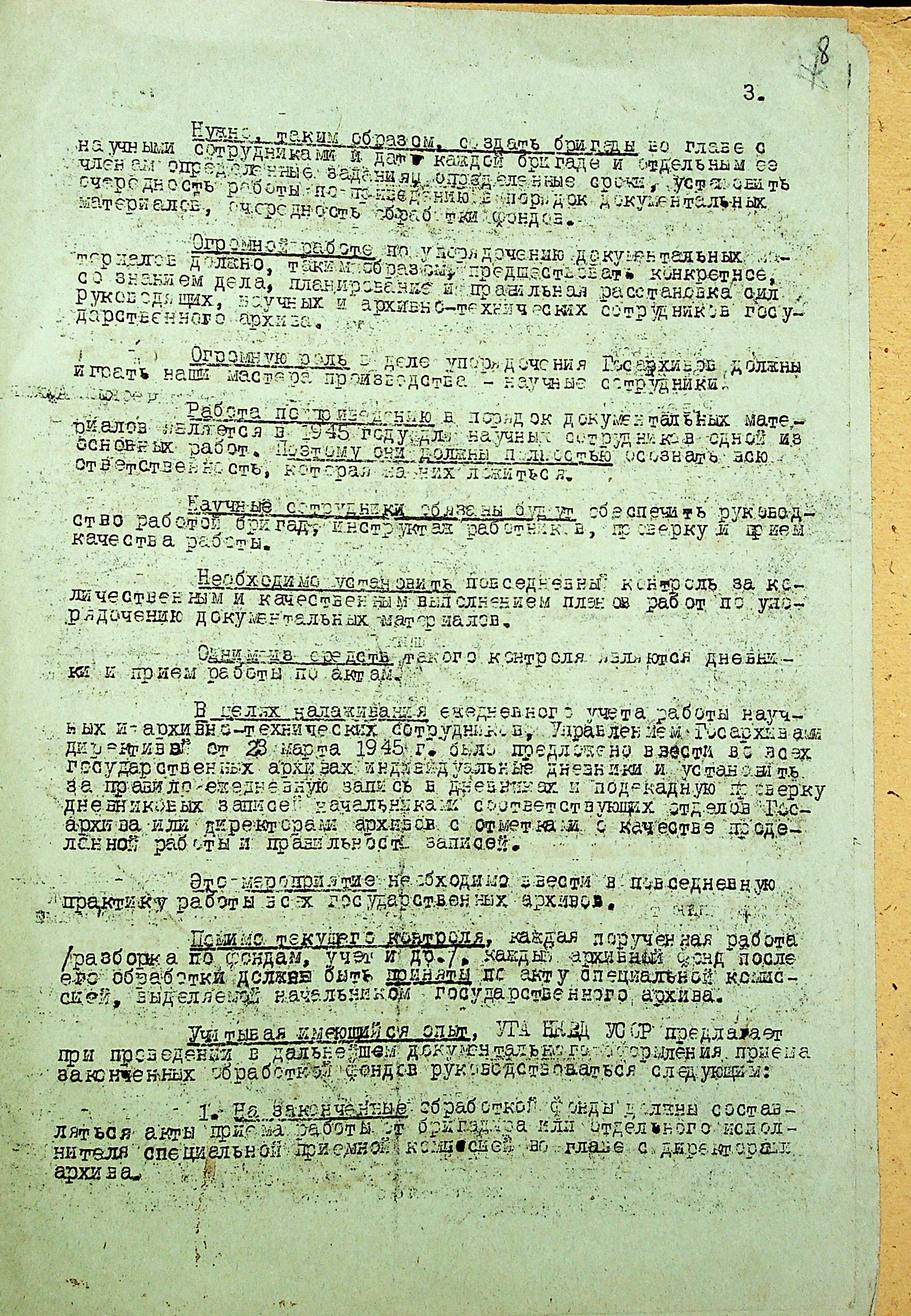 • • • • Справа № 40 “Вказівки управління державними архівами НКВС УРСР про організацію науково-технічних робіт з упорядкування документальних матеріалів архівних органів”