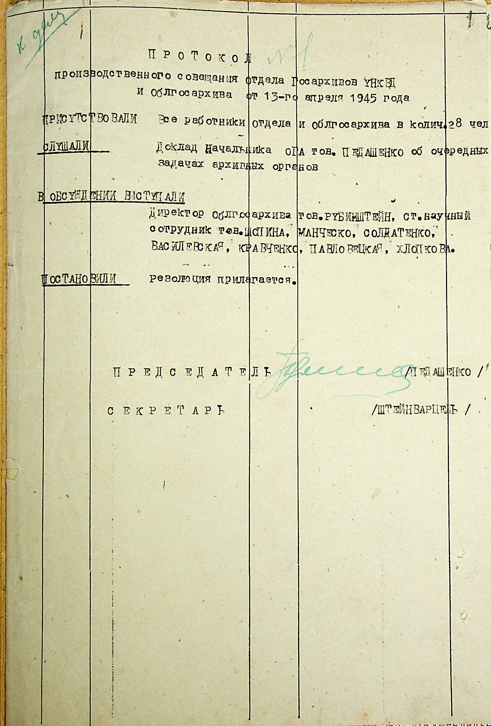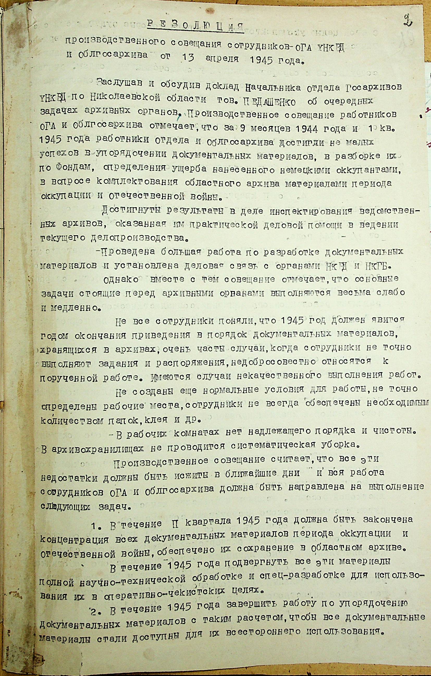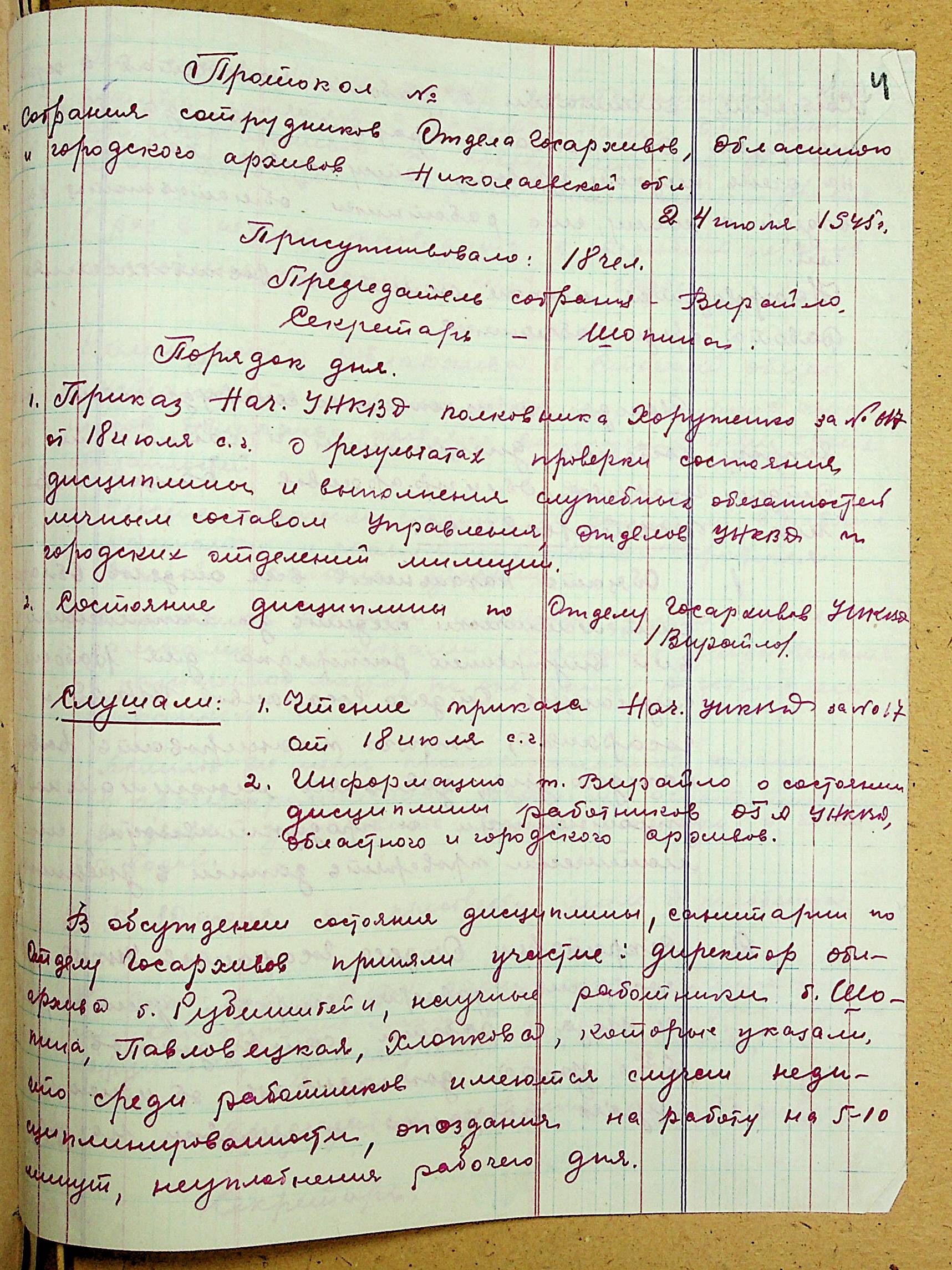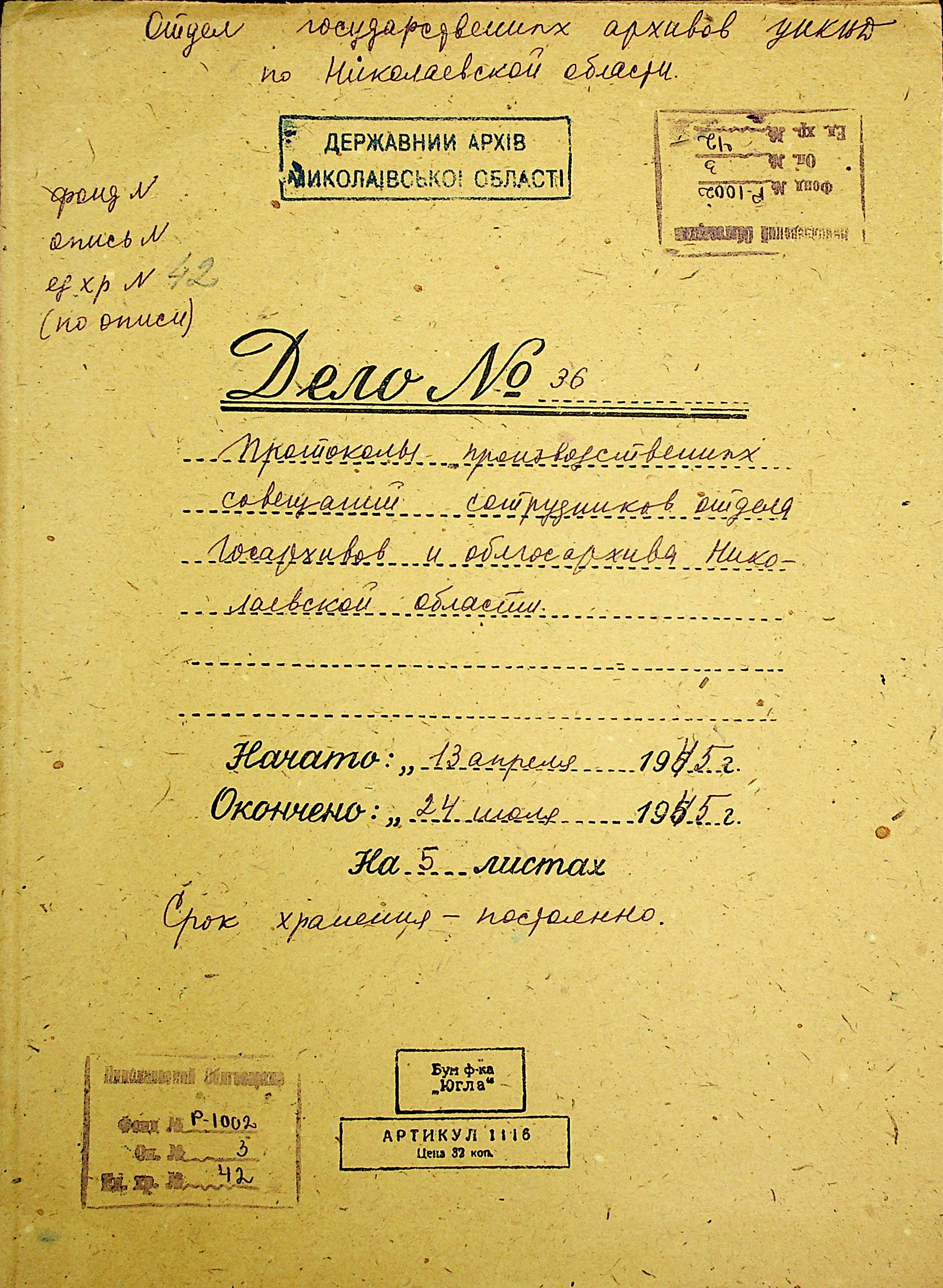 • • • • Справа № 42 “Протоколи виробничих нарад співробітників відділу державних архівів та облдержархіву Миколаївської області”
