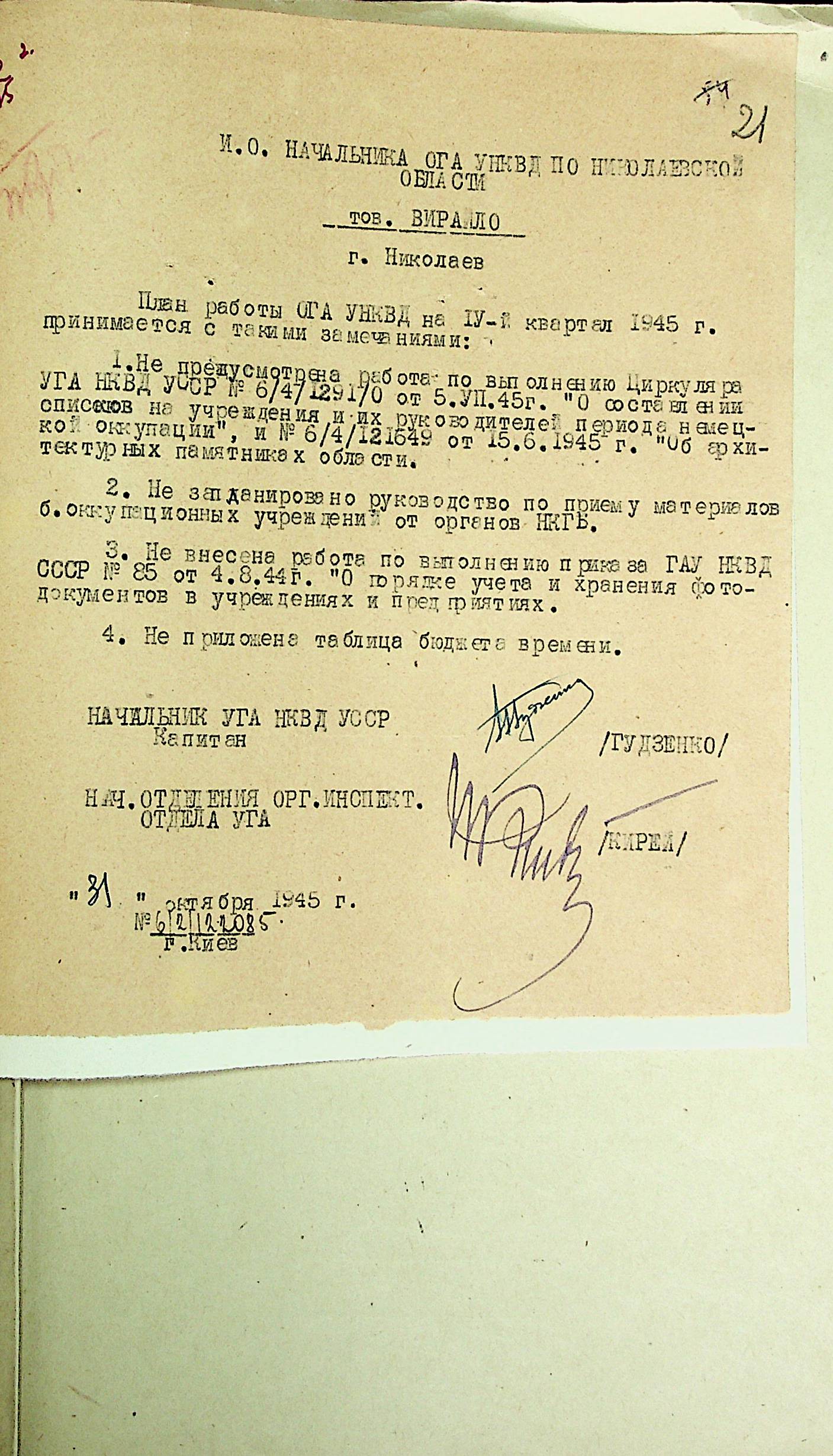 • • • • Справа № 44 “Квартальні плани роботи відділу державних архівів на 1945 р.”