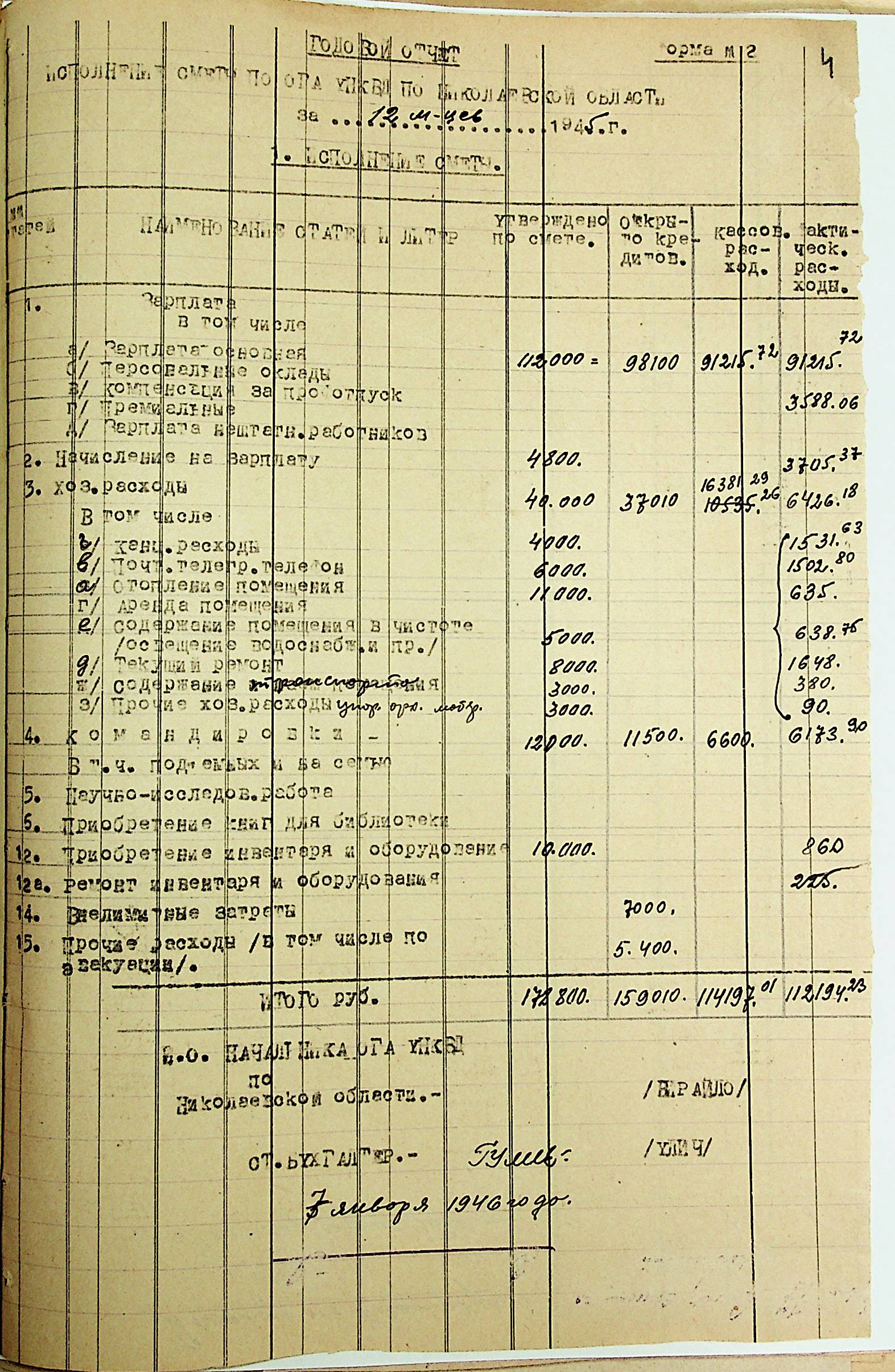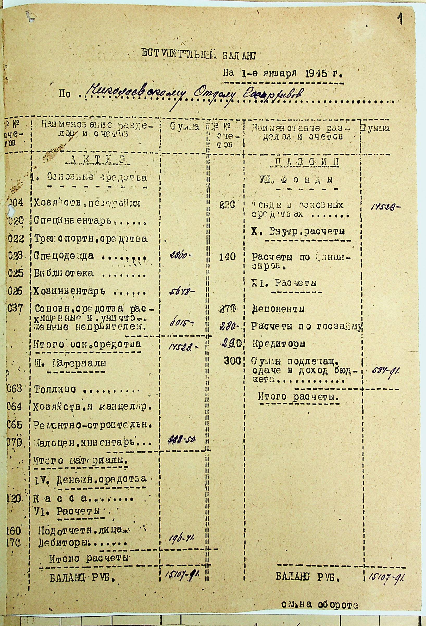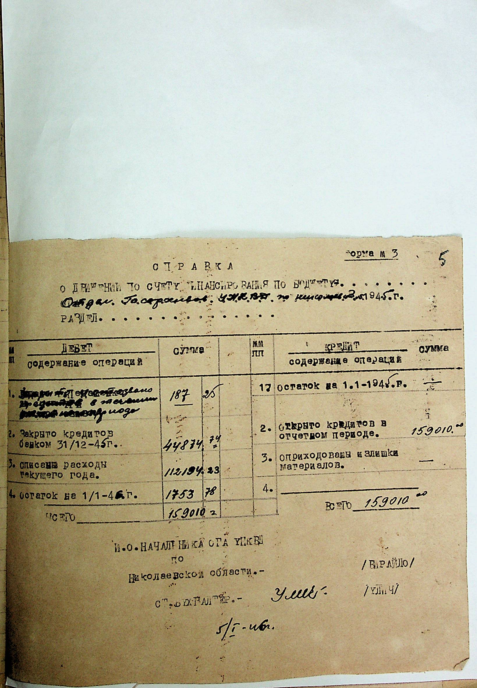 • • • • Справа № 49 “Річний фінансовий звіт за 1945 р.”