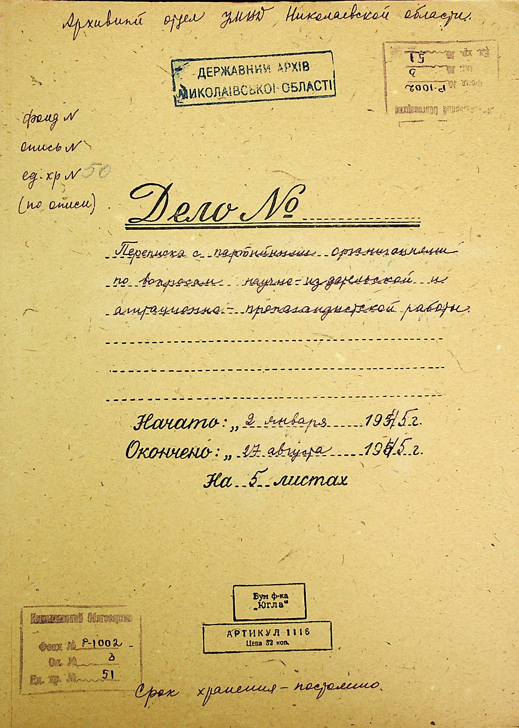 Фонд Р-1002 / Опис 3 / Справа 051