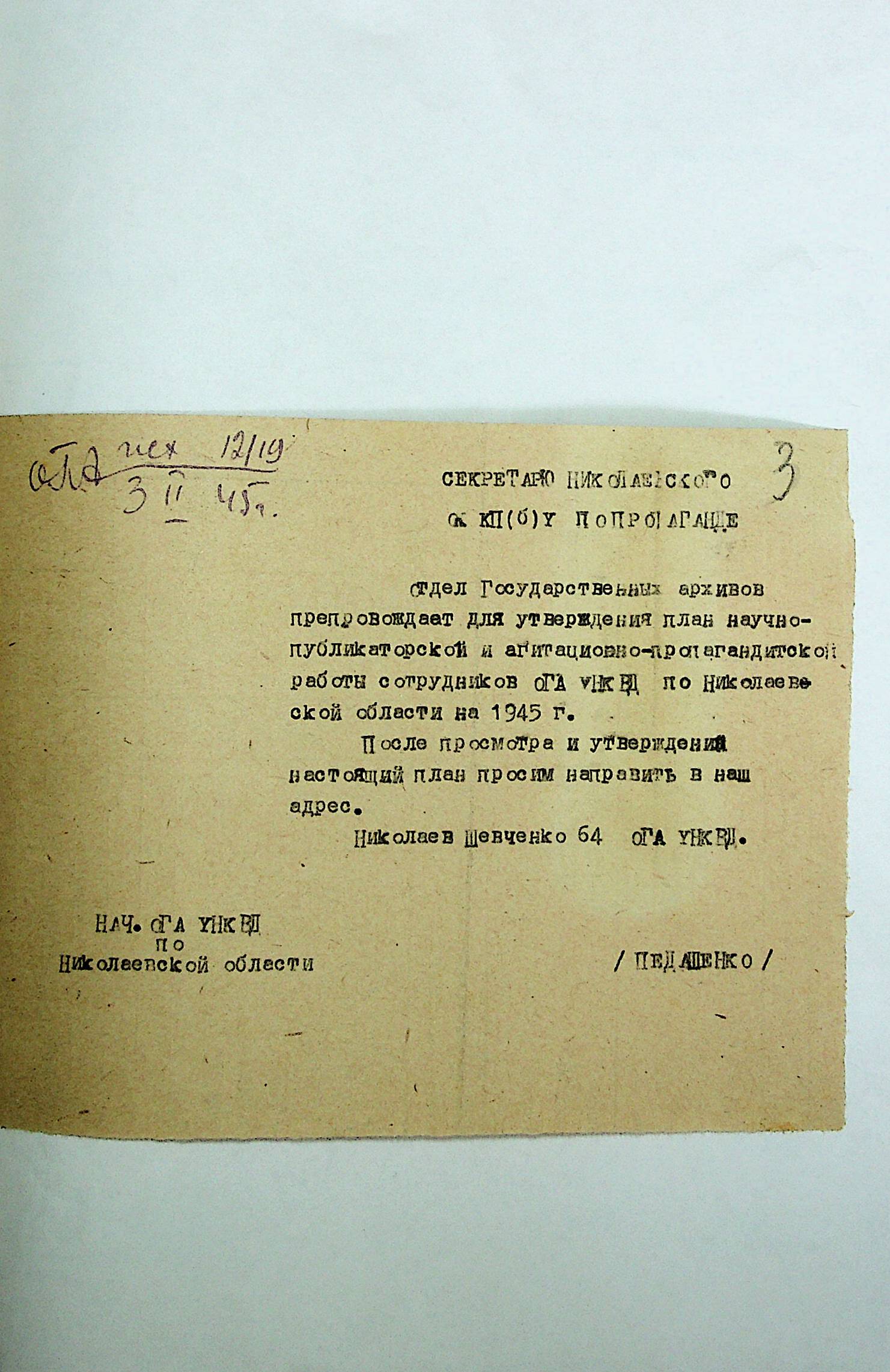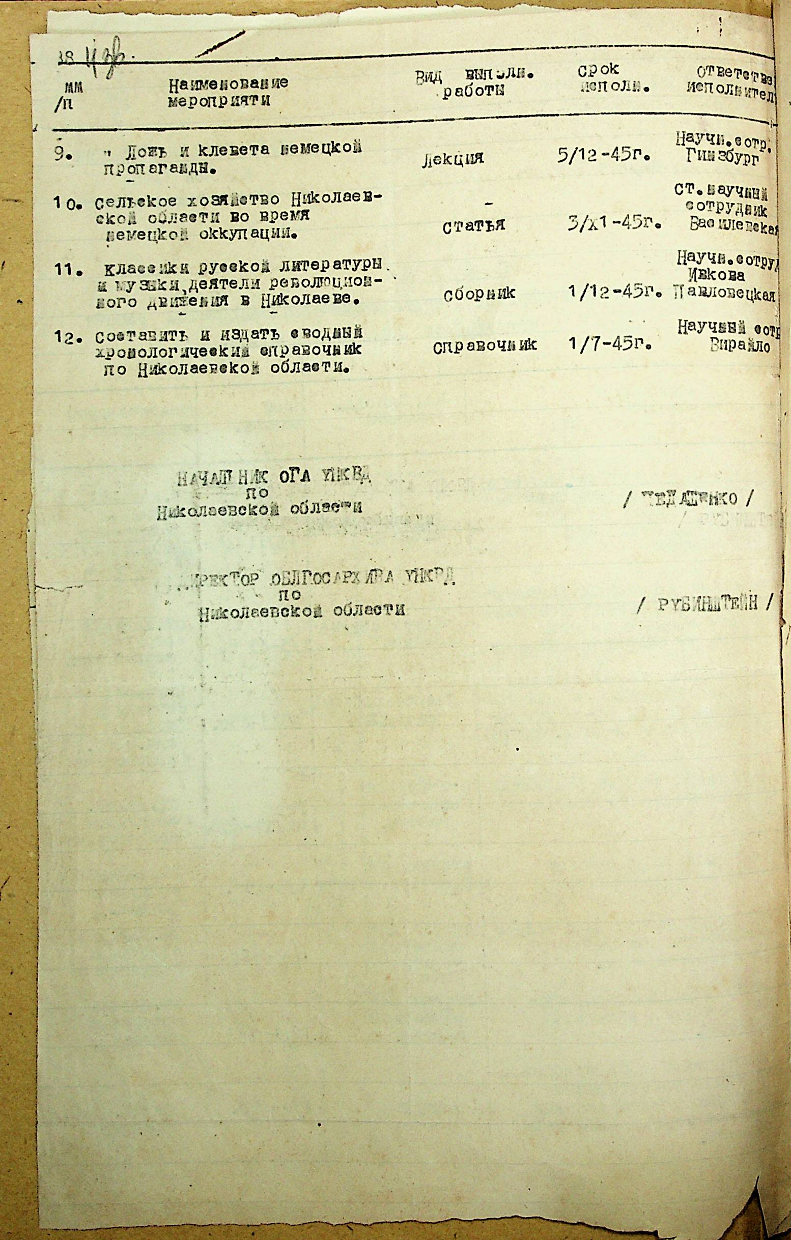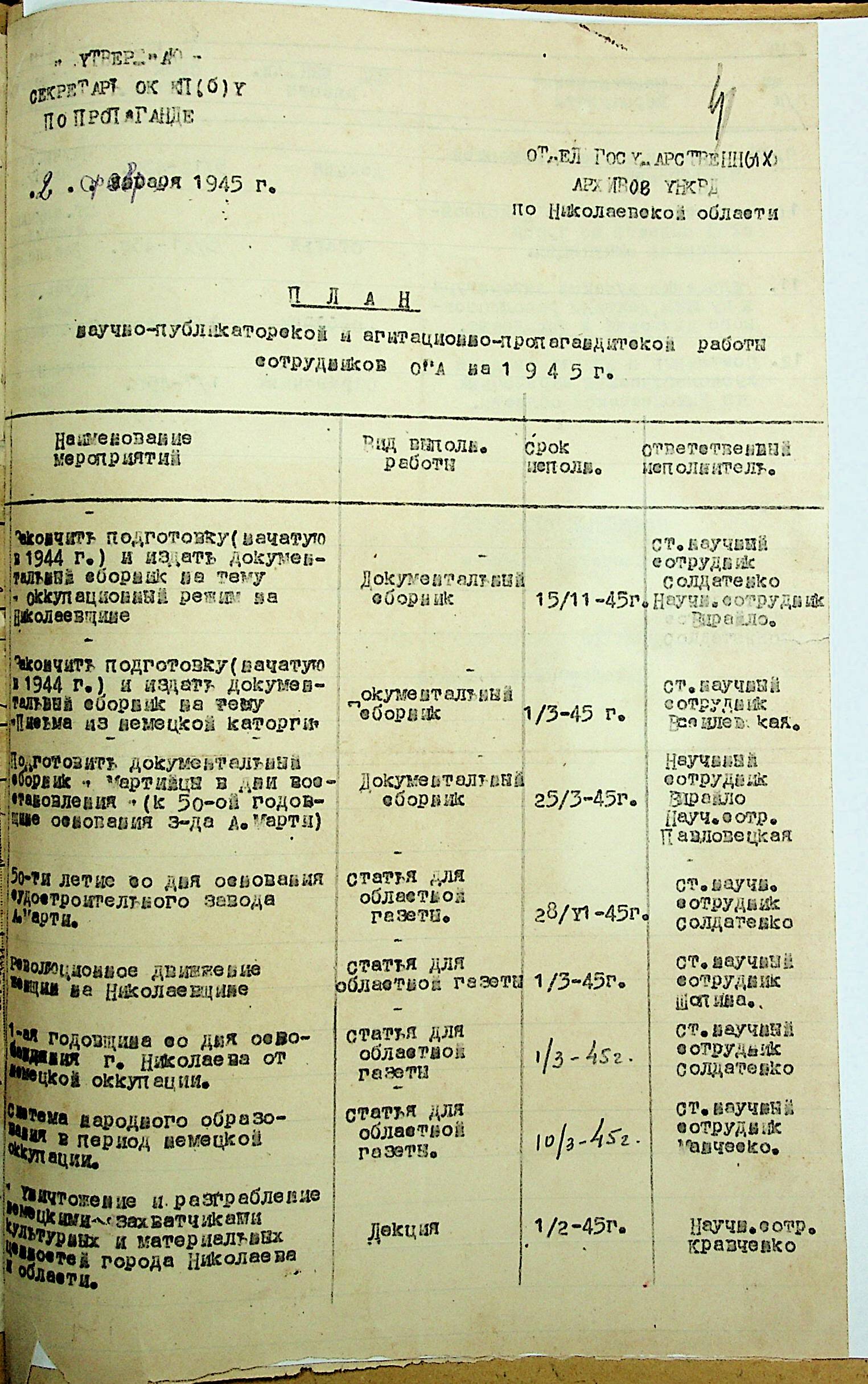 ◦ ◦ Фонд № Р-1002 “Архівний відділ управління виконкому Миколаївської обласної Ради народних депутатів, м. Миколаїв”