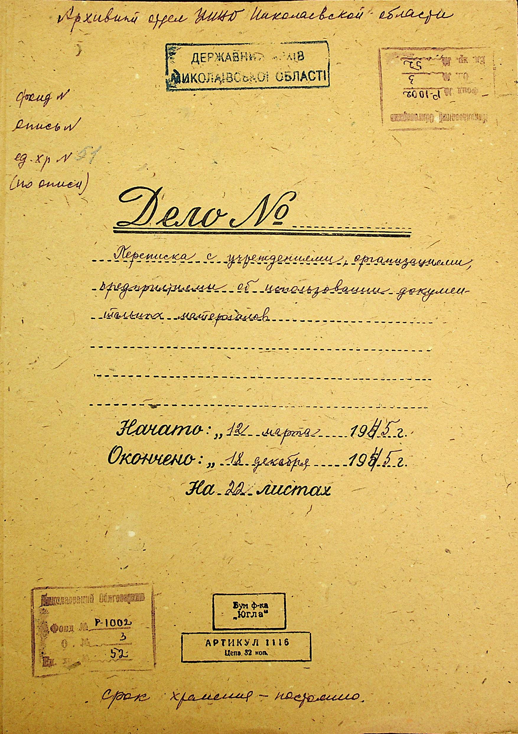 • • • • Справа № 52 “Листування з установами, організаціями, підприємствами про використання документальних матеріалів”