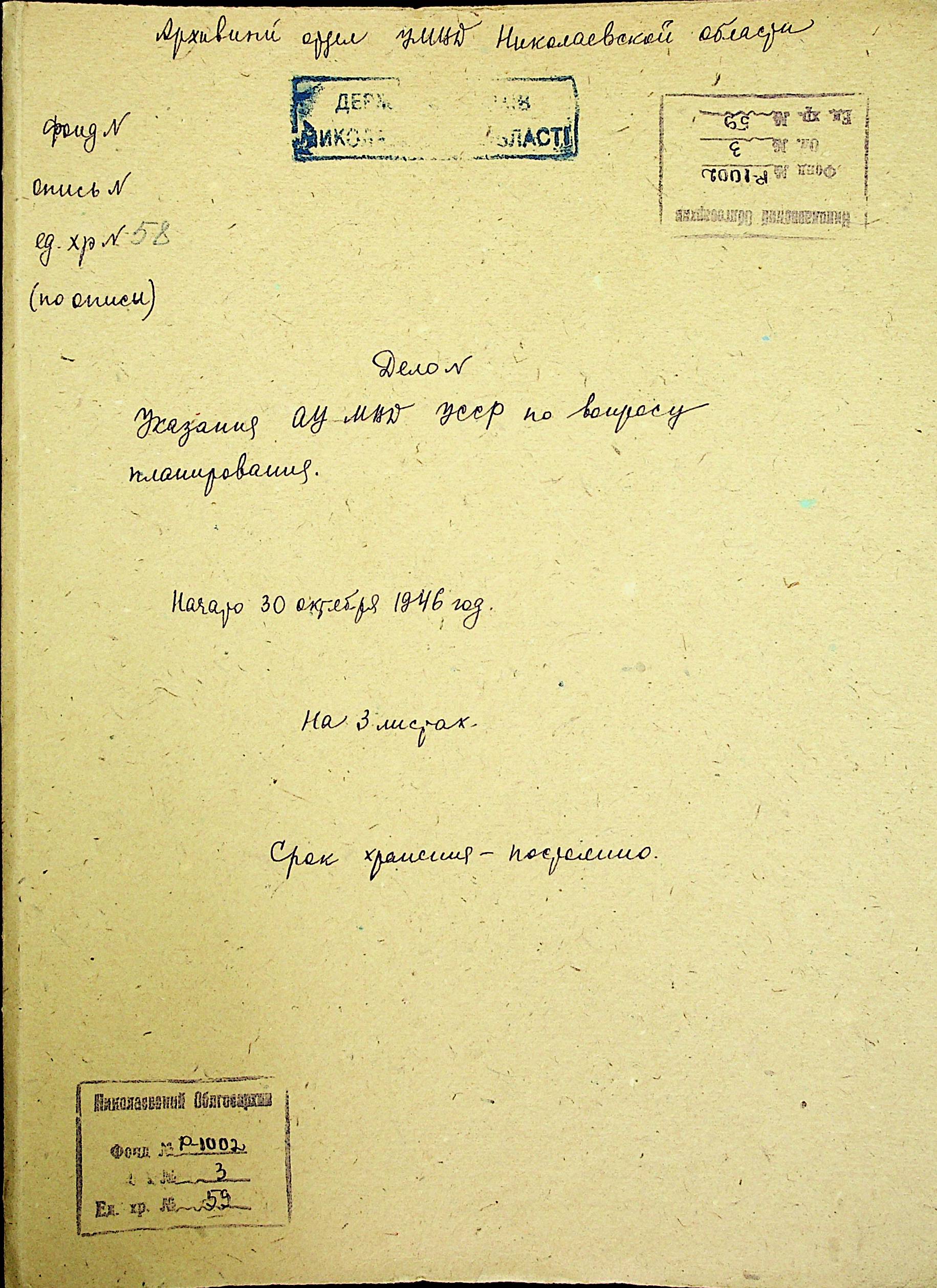 ◦ ◦ Фонд № Р-1002 “Архівний відділ управління виконкому Миколаївської обласної Ради народних депутатів, м. Миколаїв”