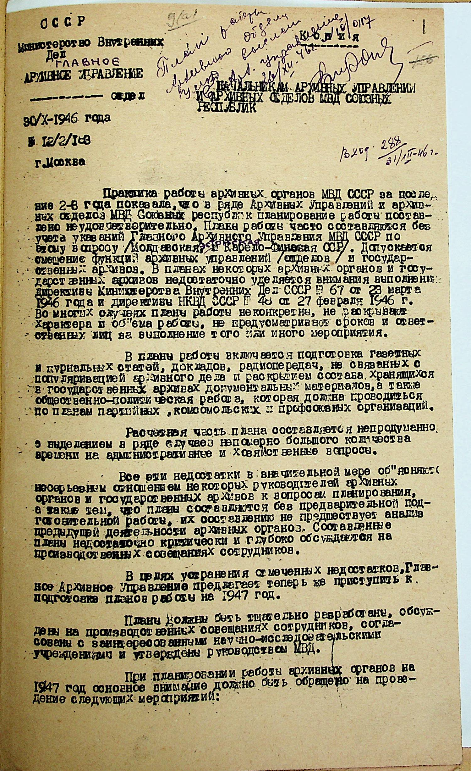 • • • • Справа № 59 “Вказівки Архівного управління МВС УРСР щодо планування”