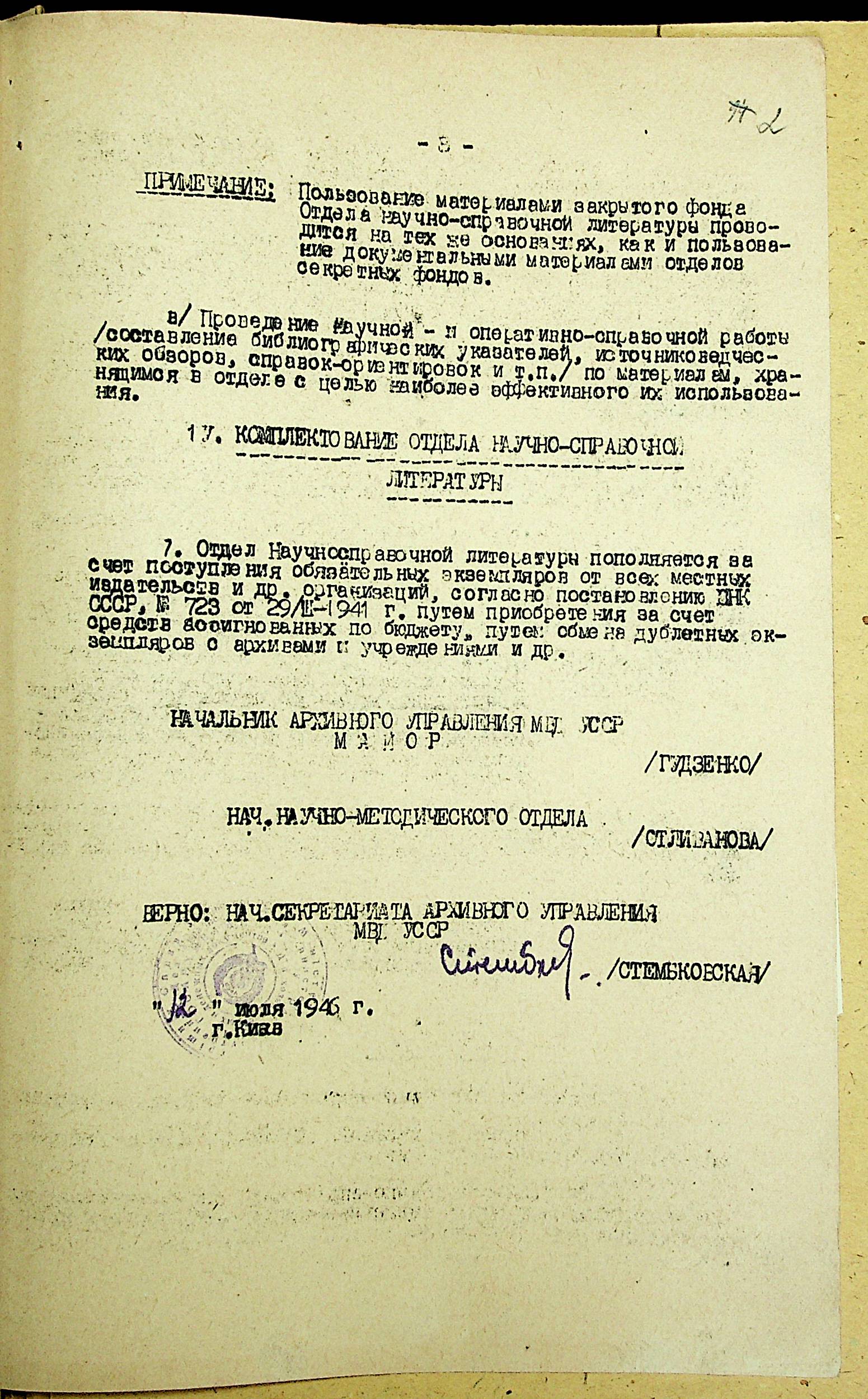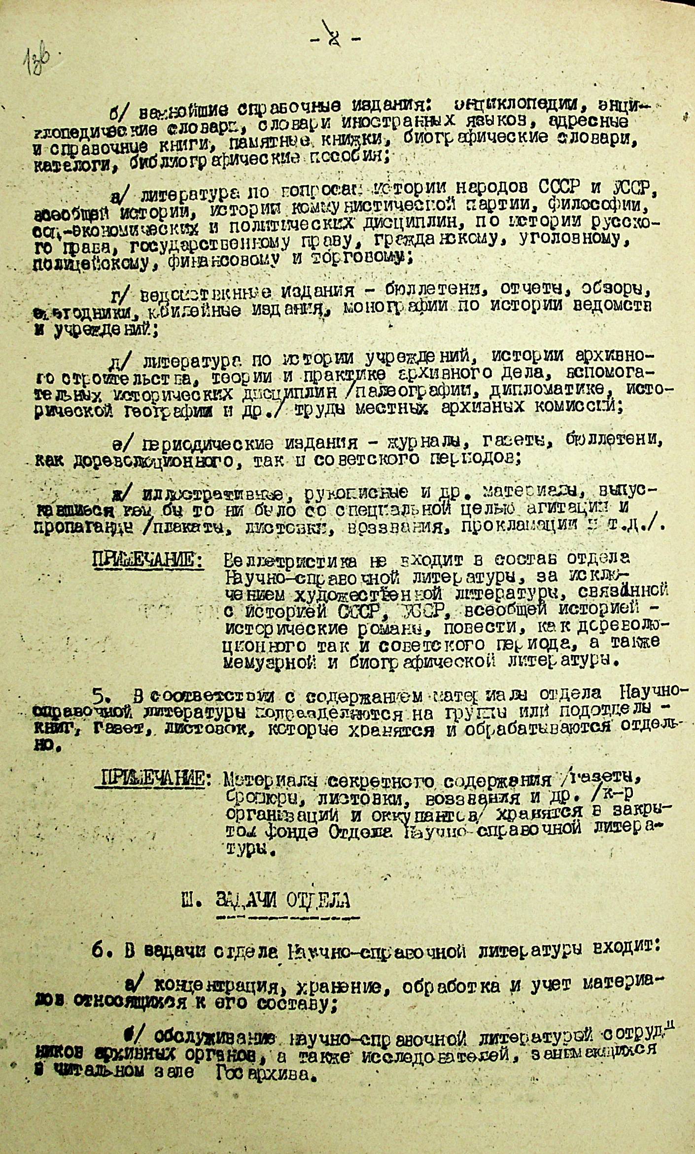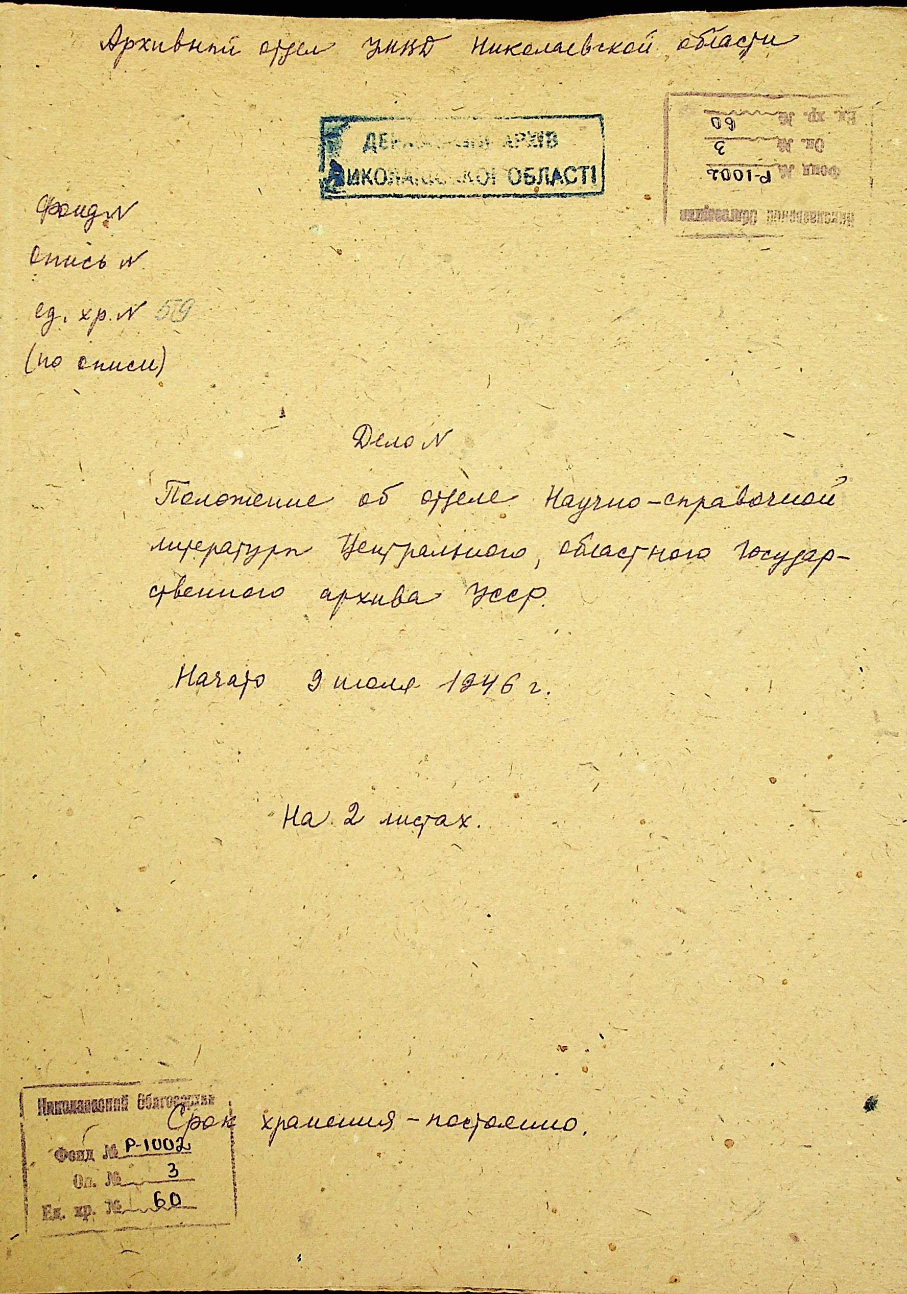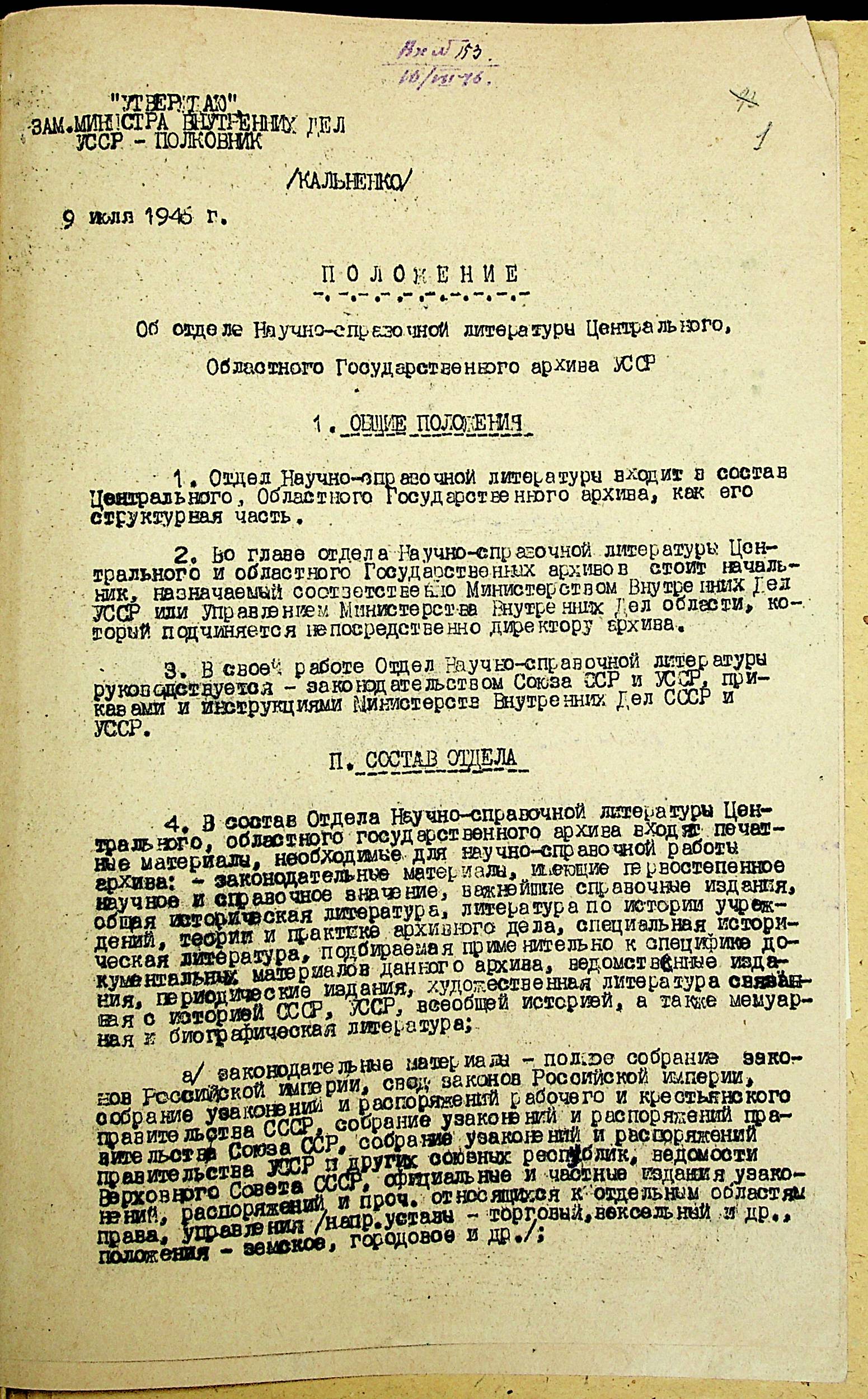 • • • • Справа № 60 “Положення про відділ науково-довідкової літератури Центрального, обласного державного архіву УРСР”