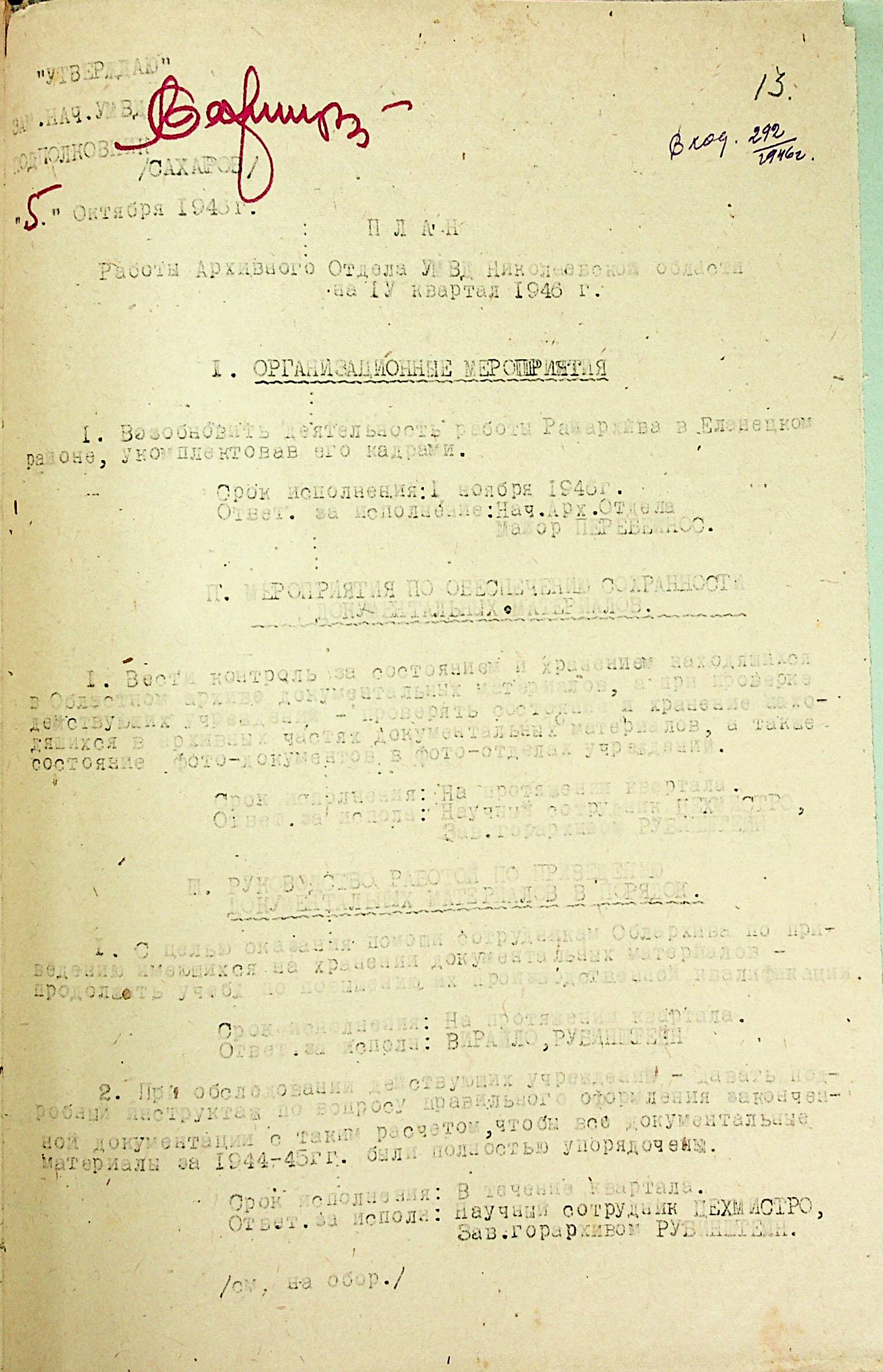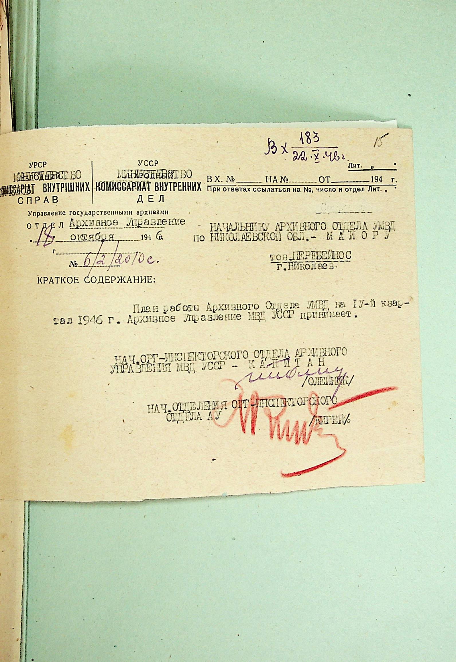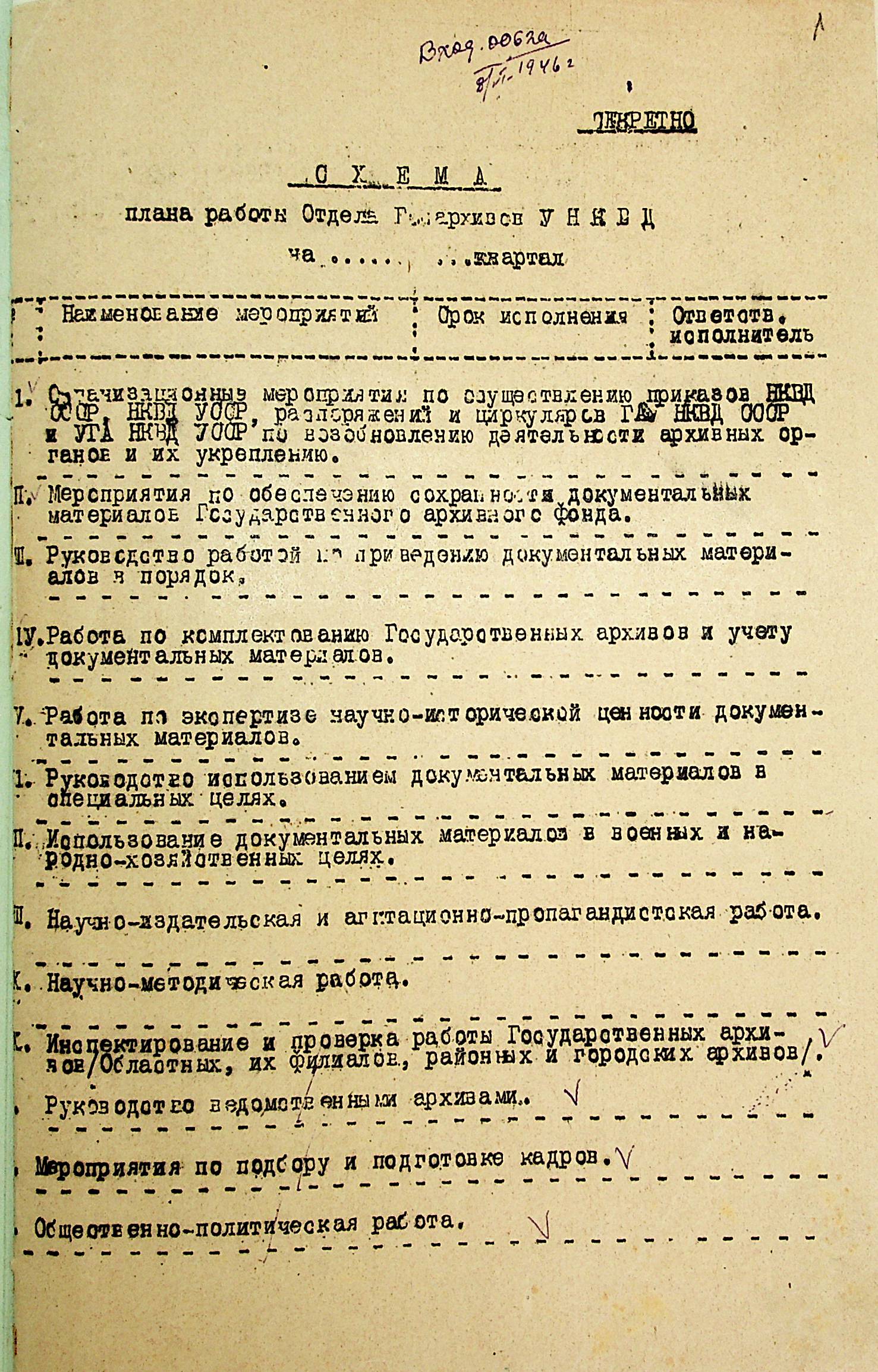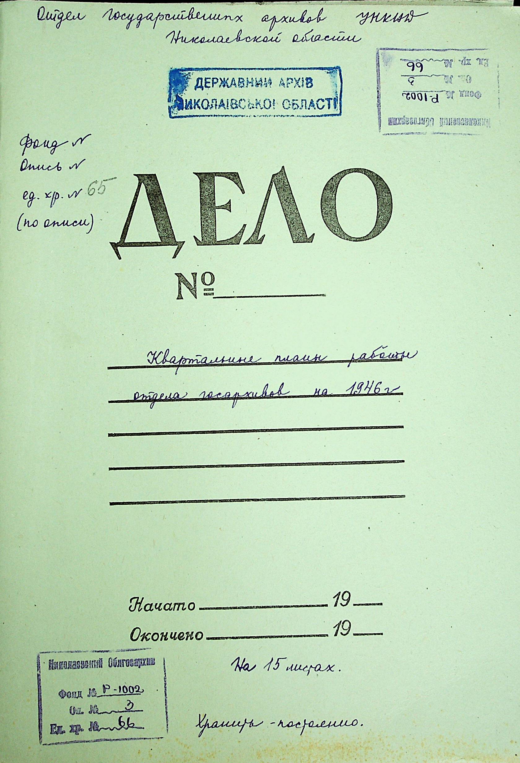• • • • Справа № 66 “Квартальні плани роботи відділу державних архівів на 1946 р.”