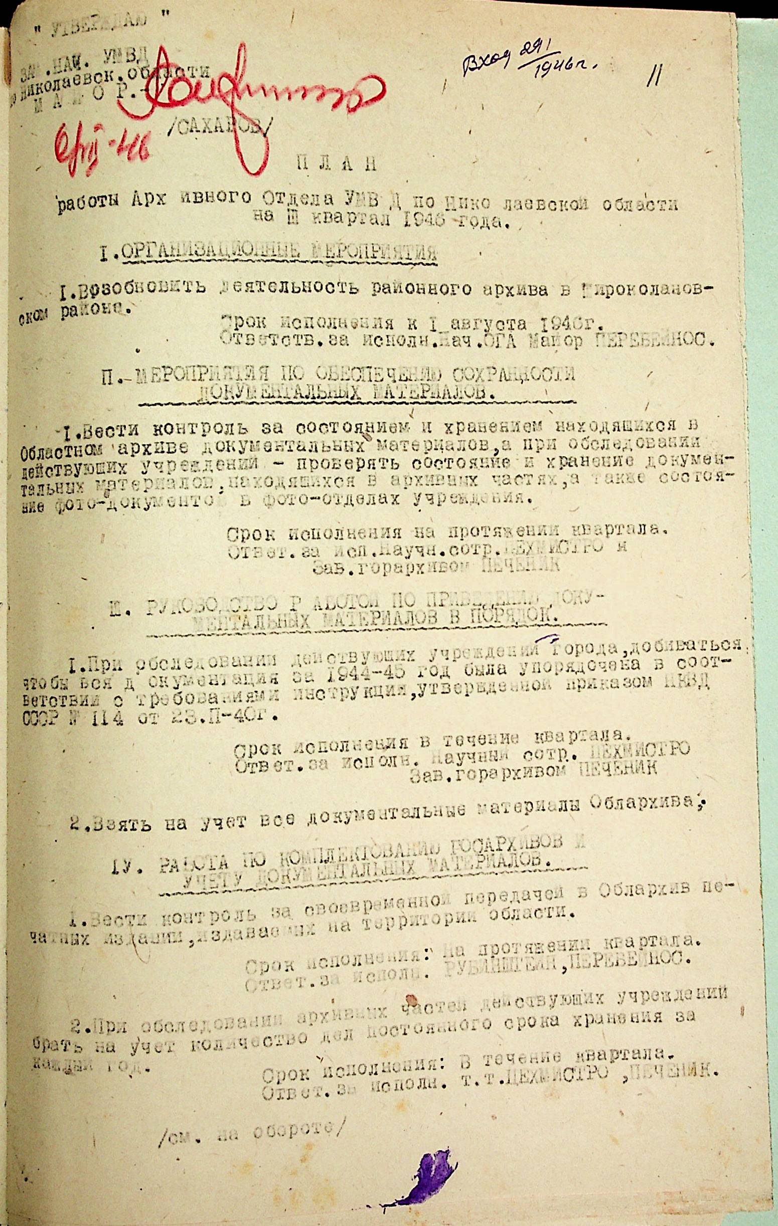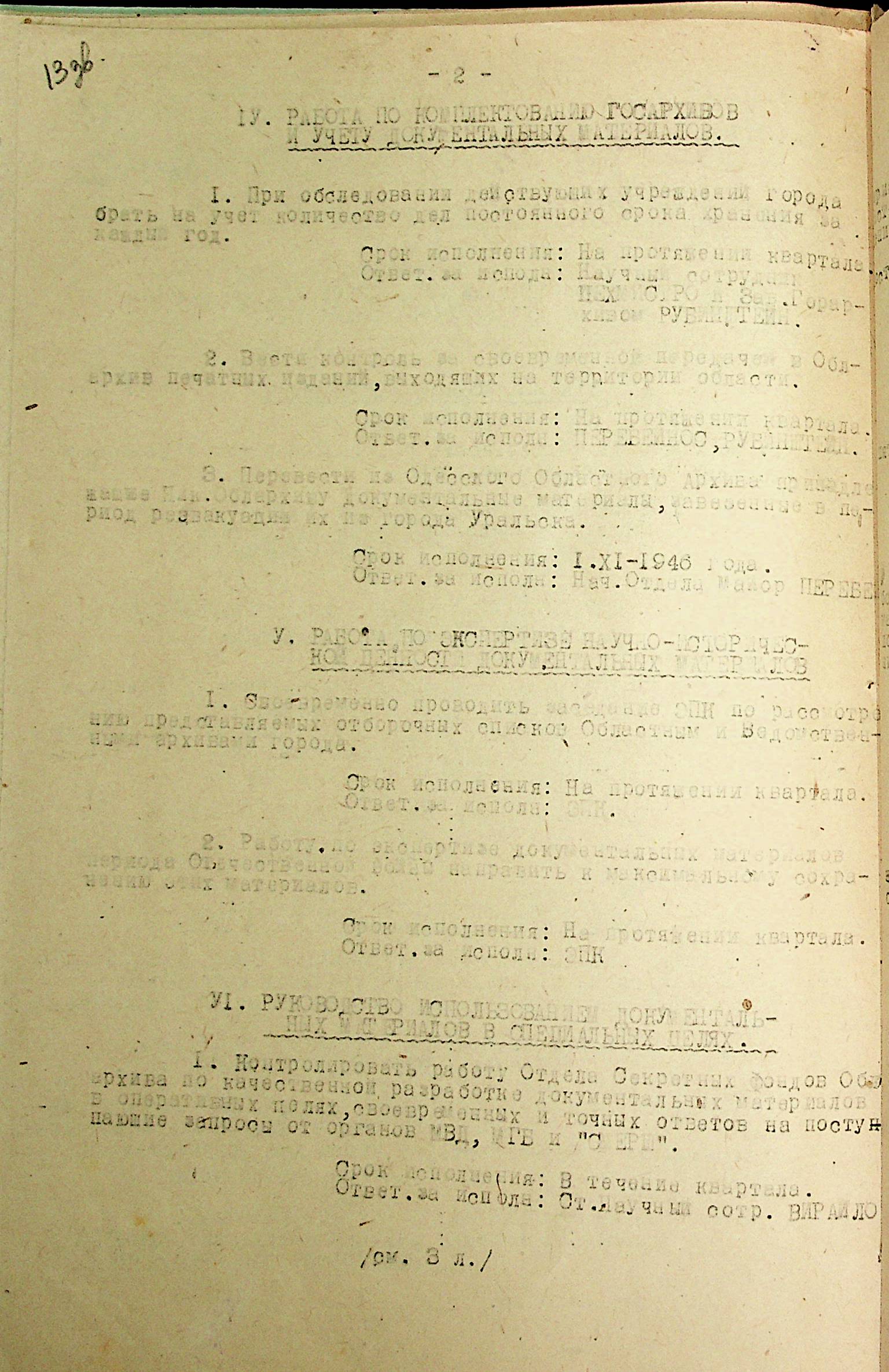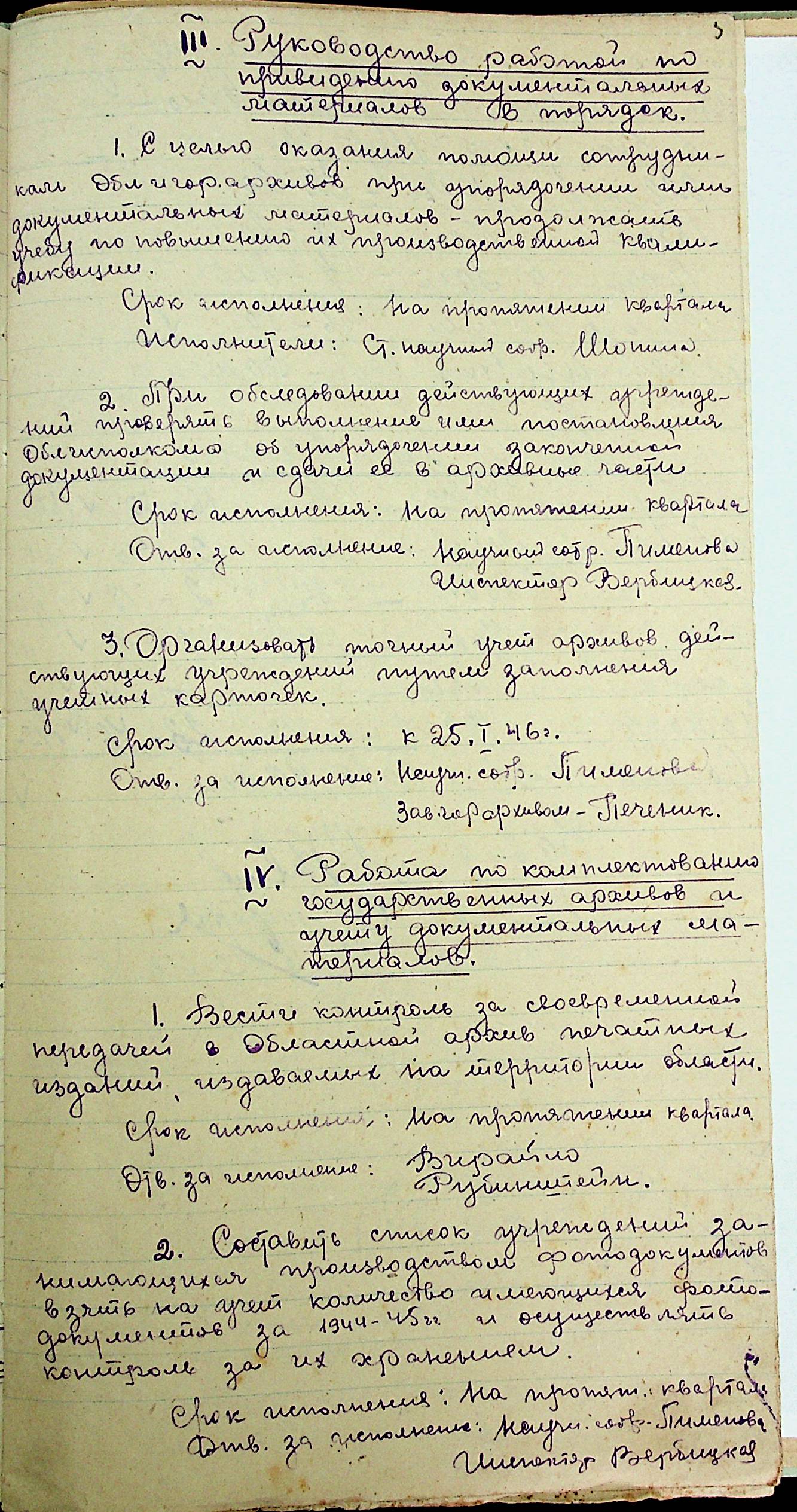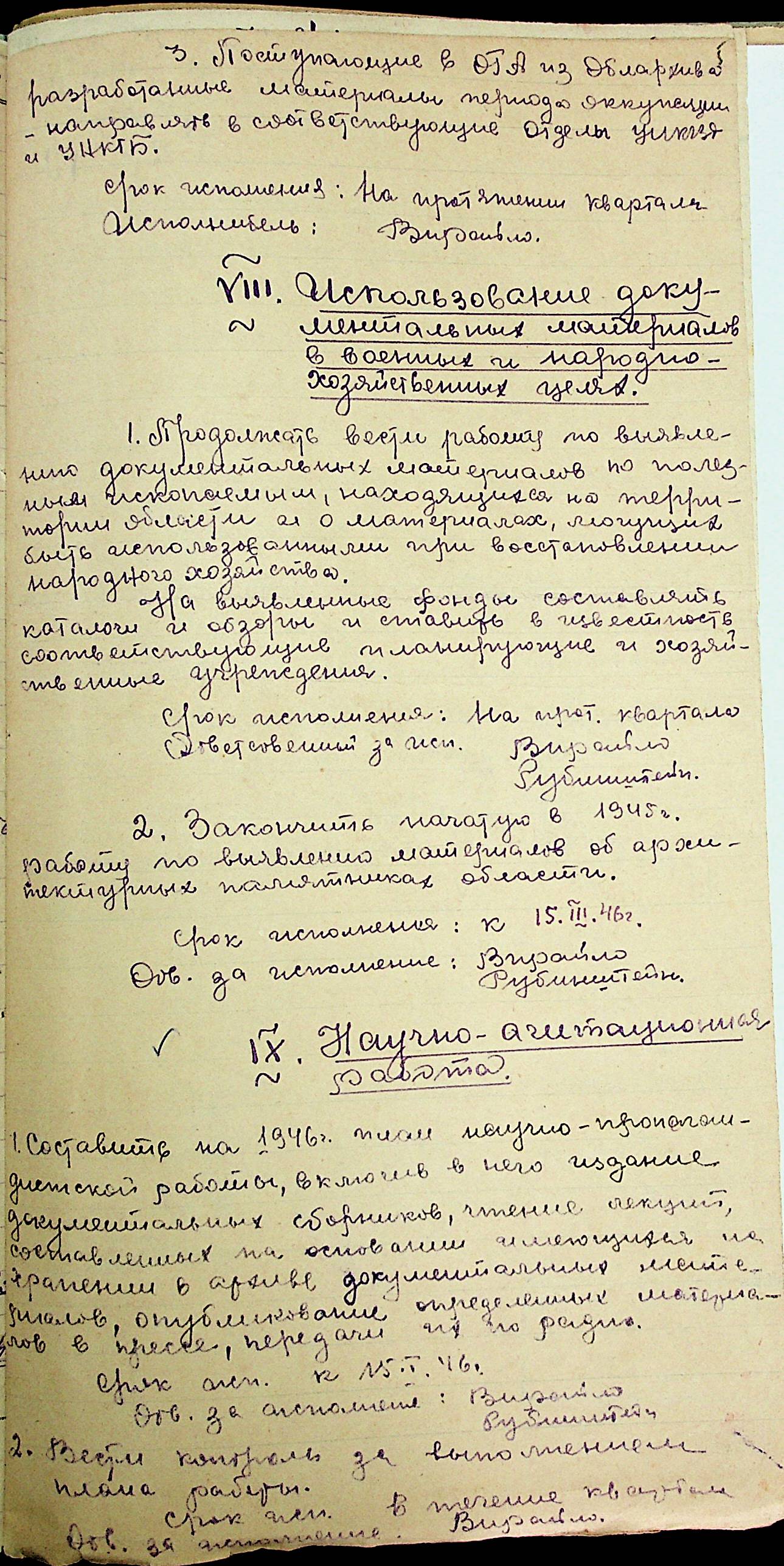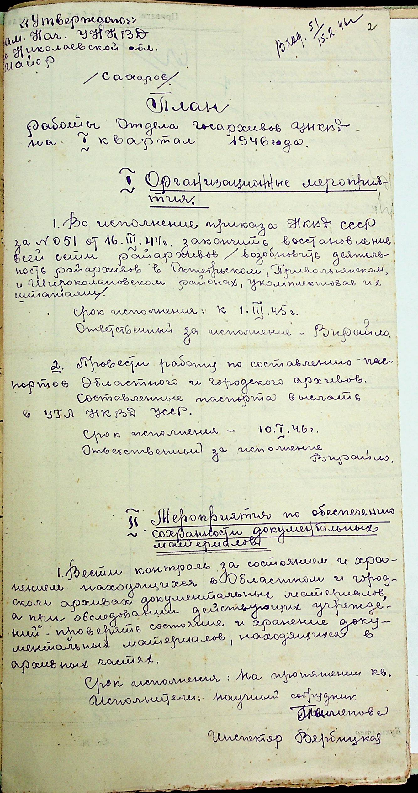 • • • • Справа № 66 “Квартальні плани роботи відділу державних архівів на 1946 р.”