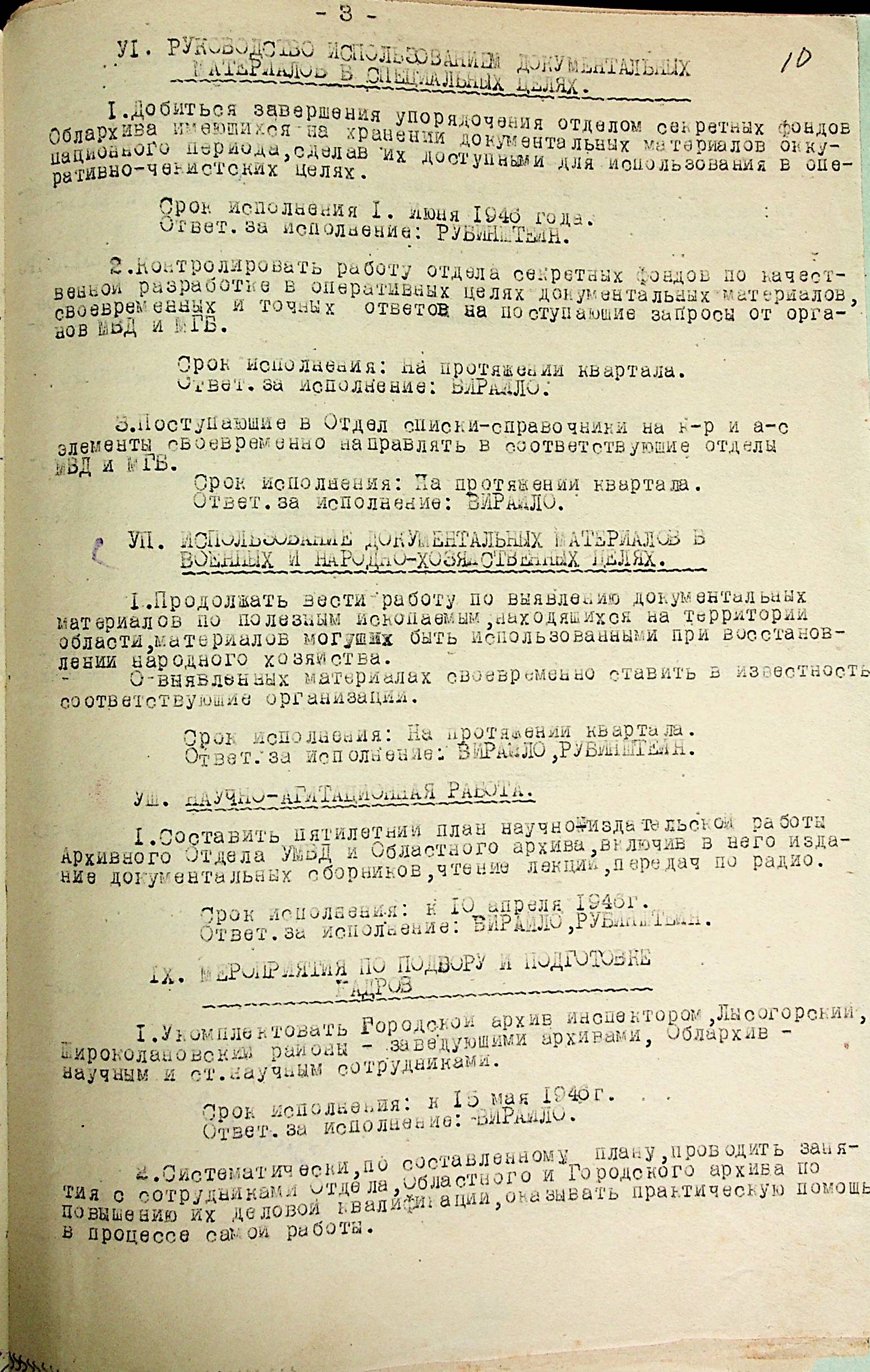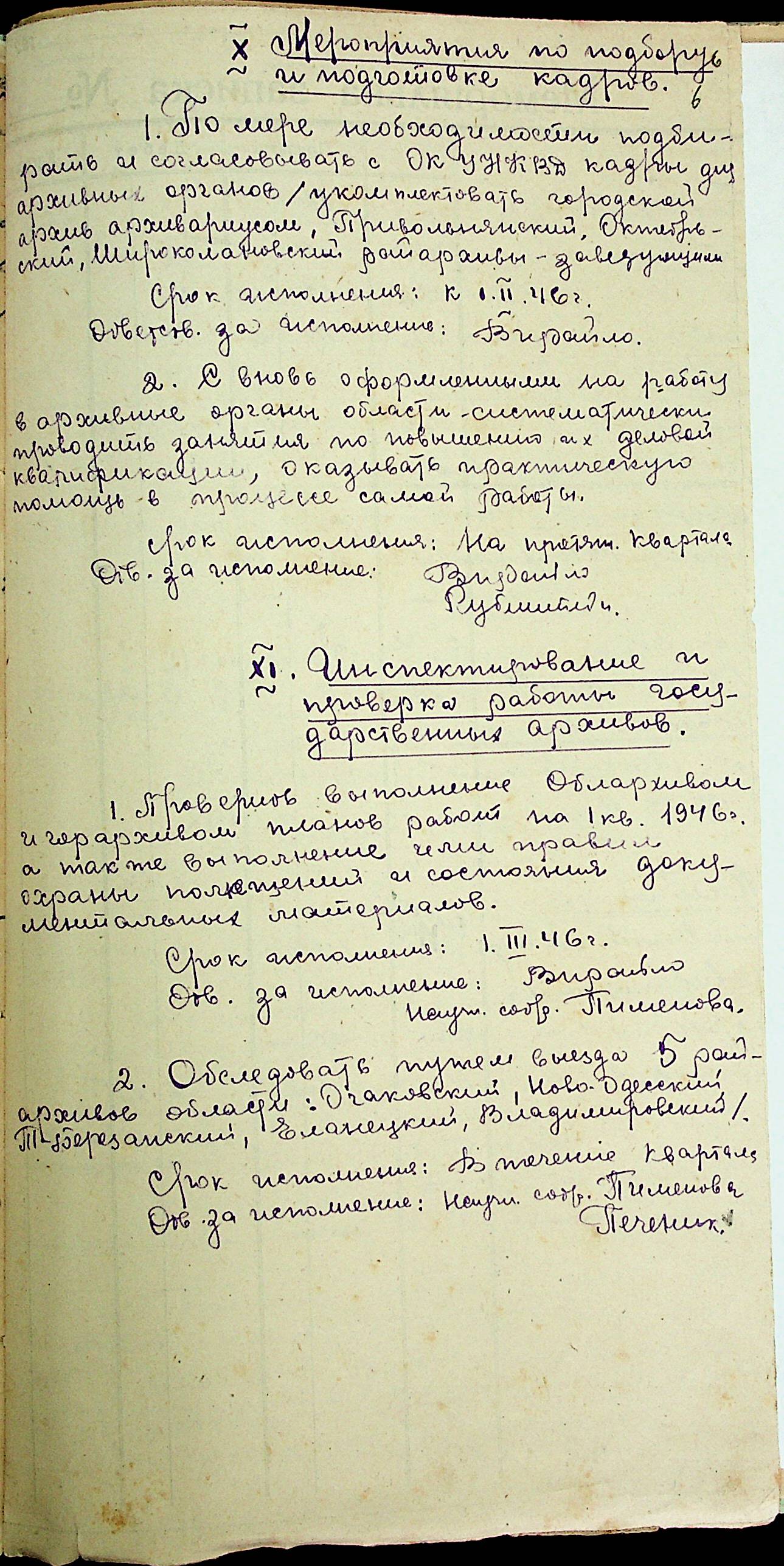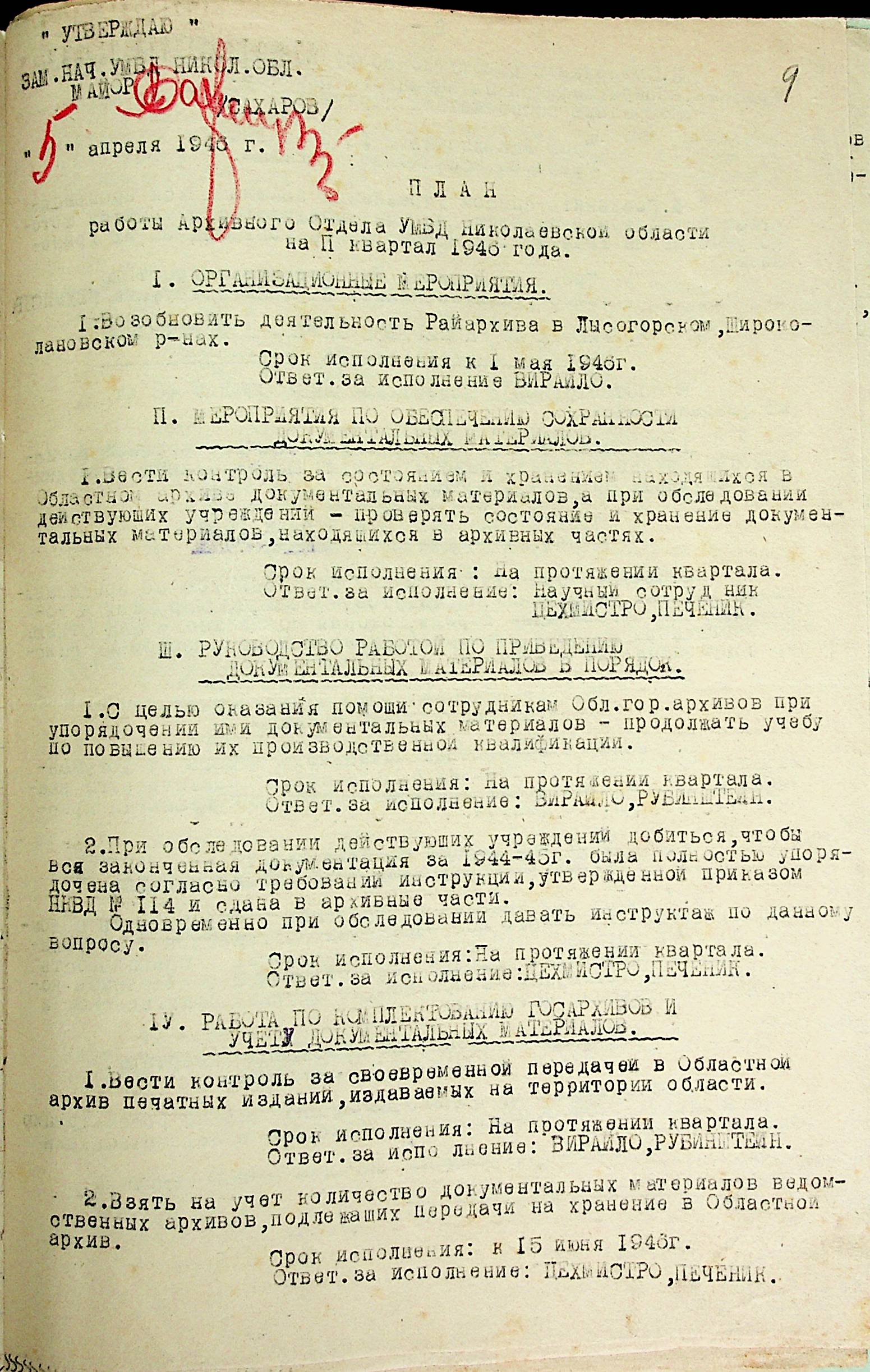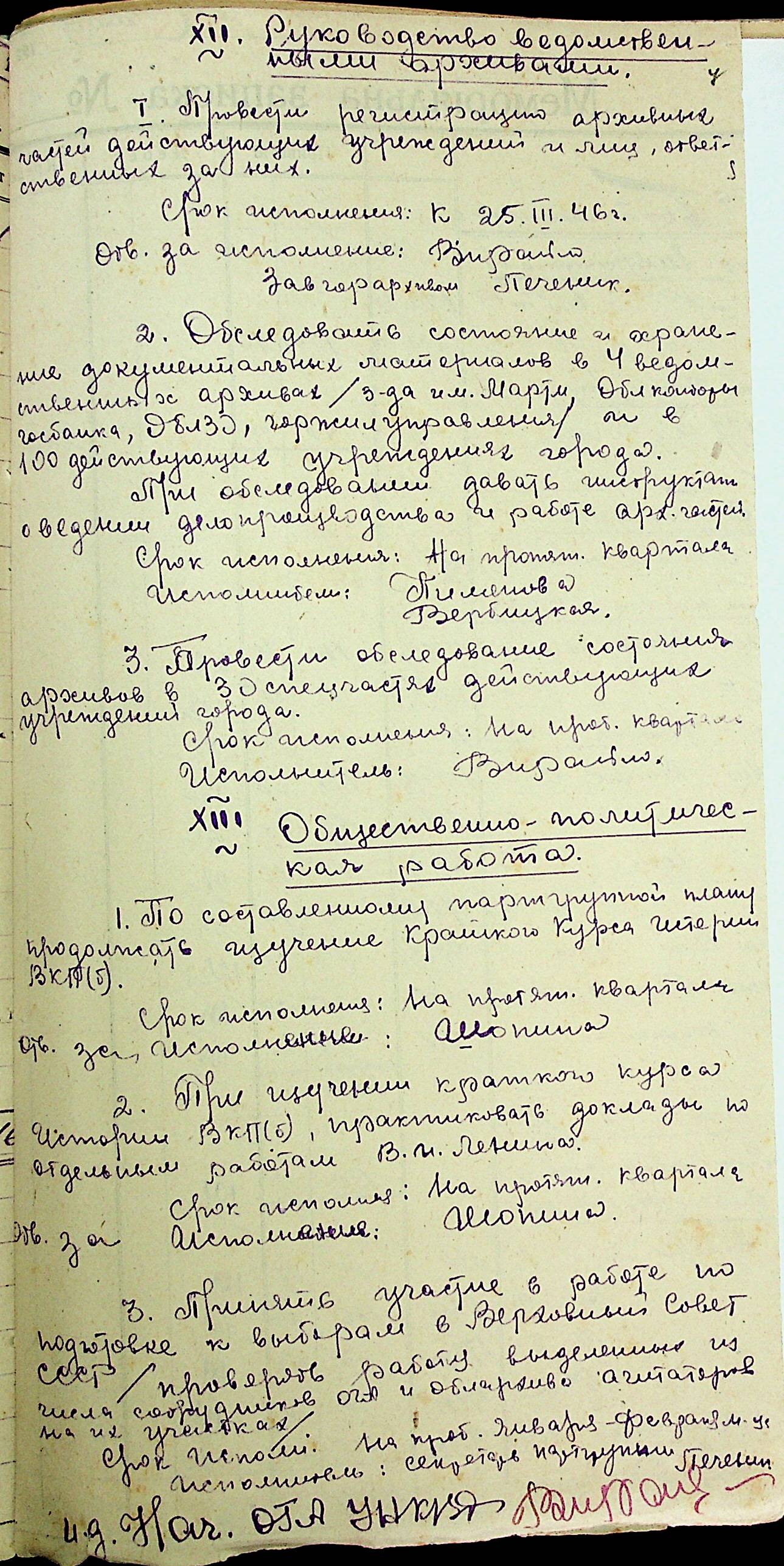 • • • • Справа № 66 “Квартальні плани роботи відділу державних архівів на 1946 р.”