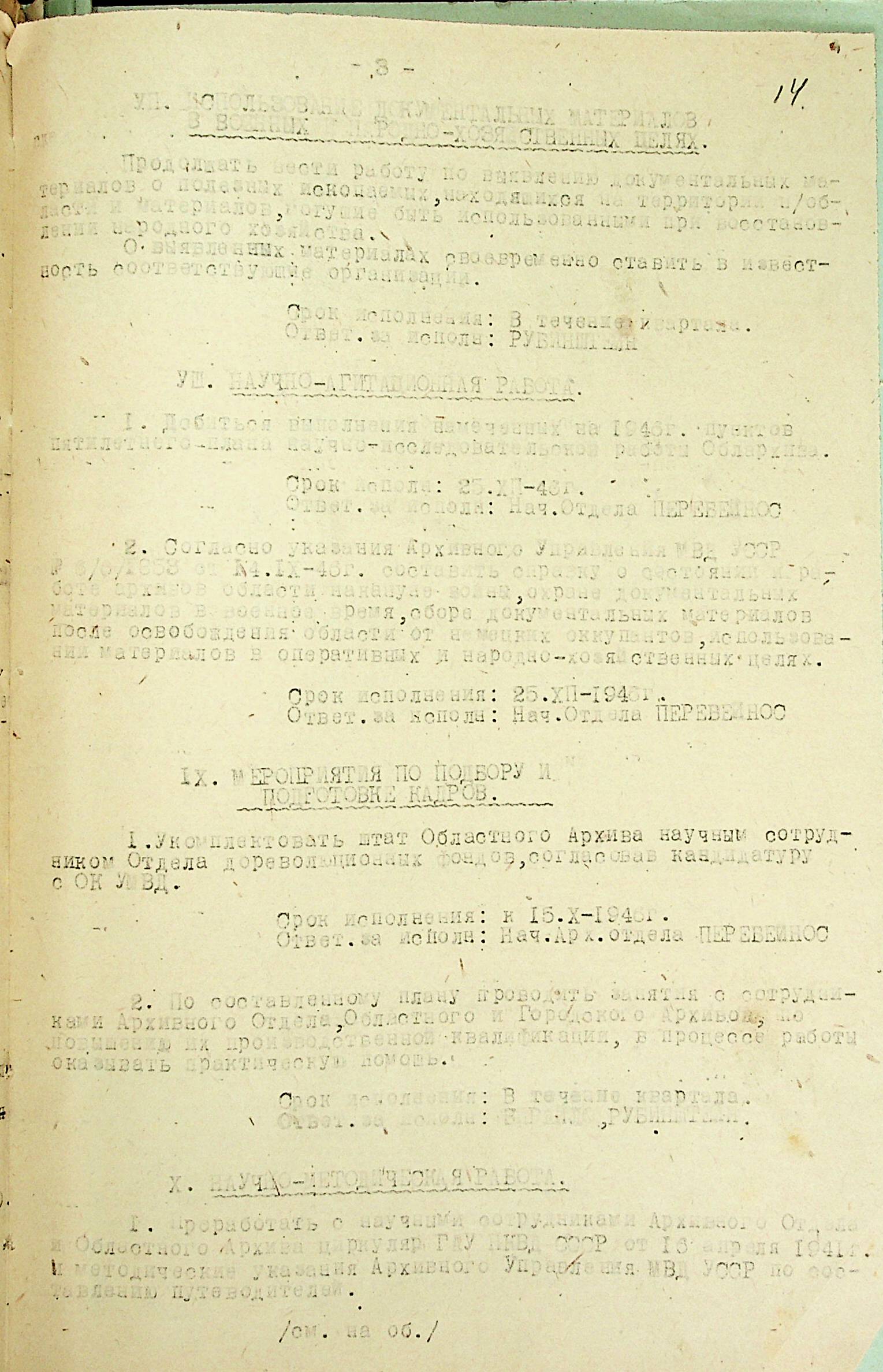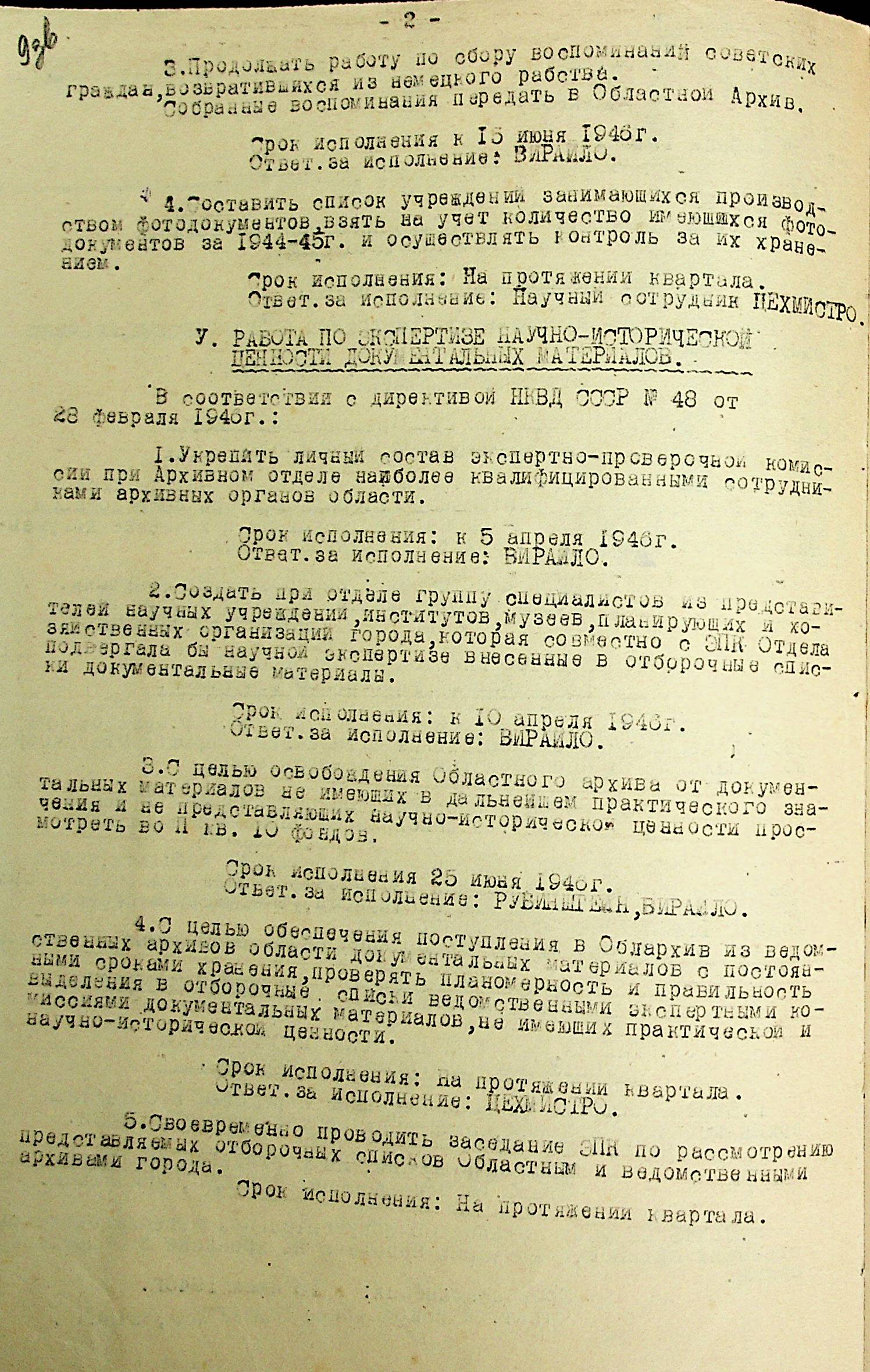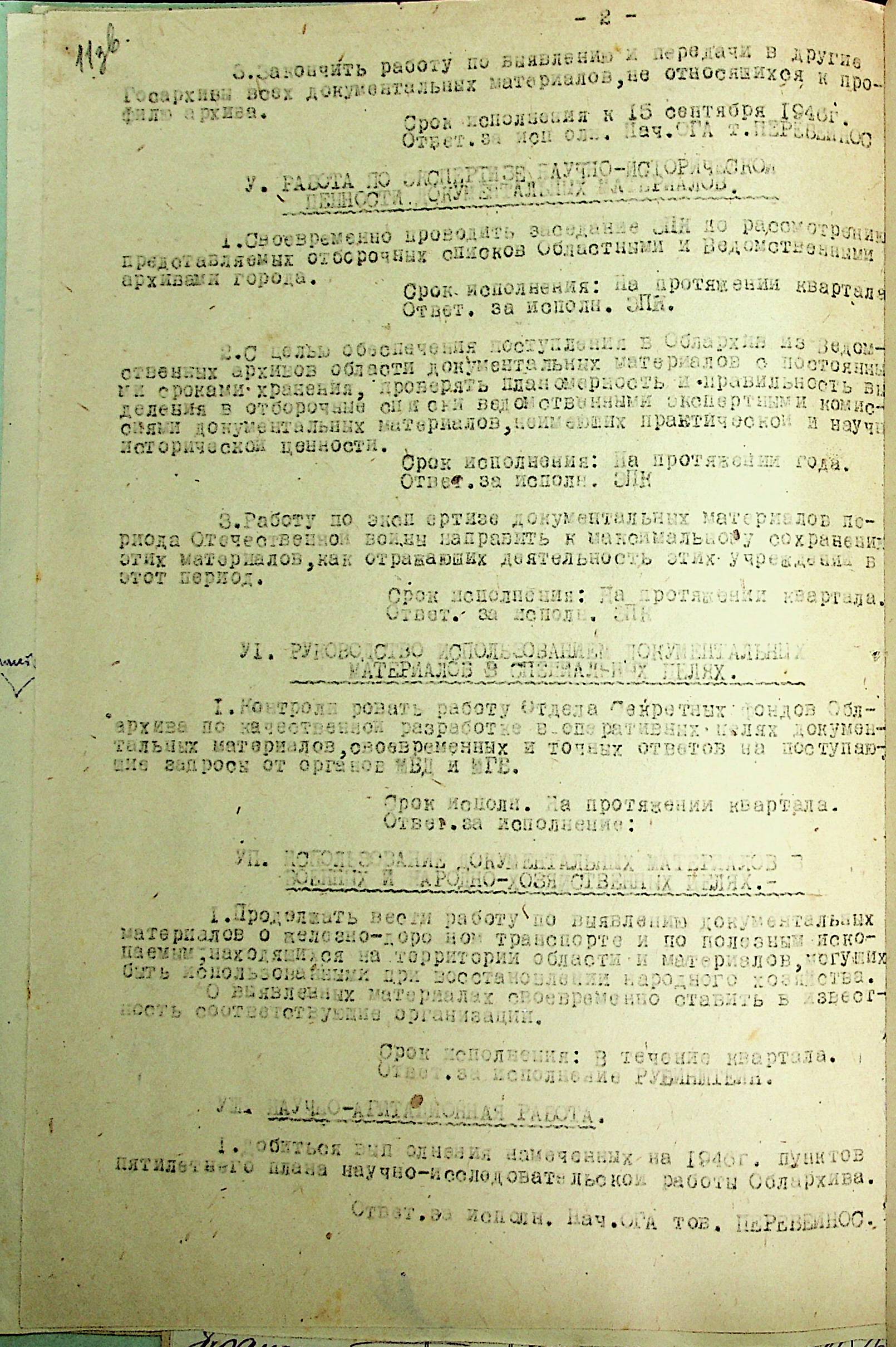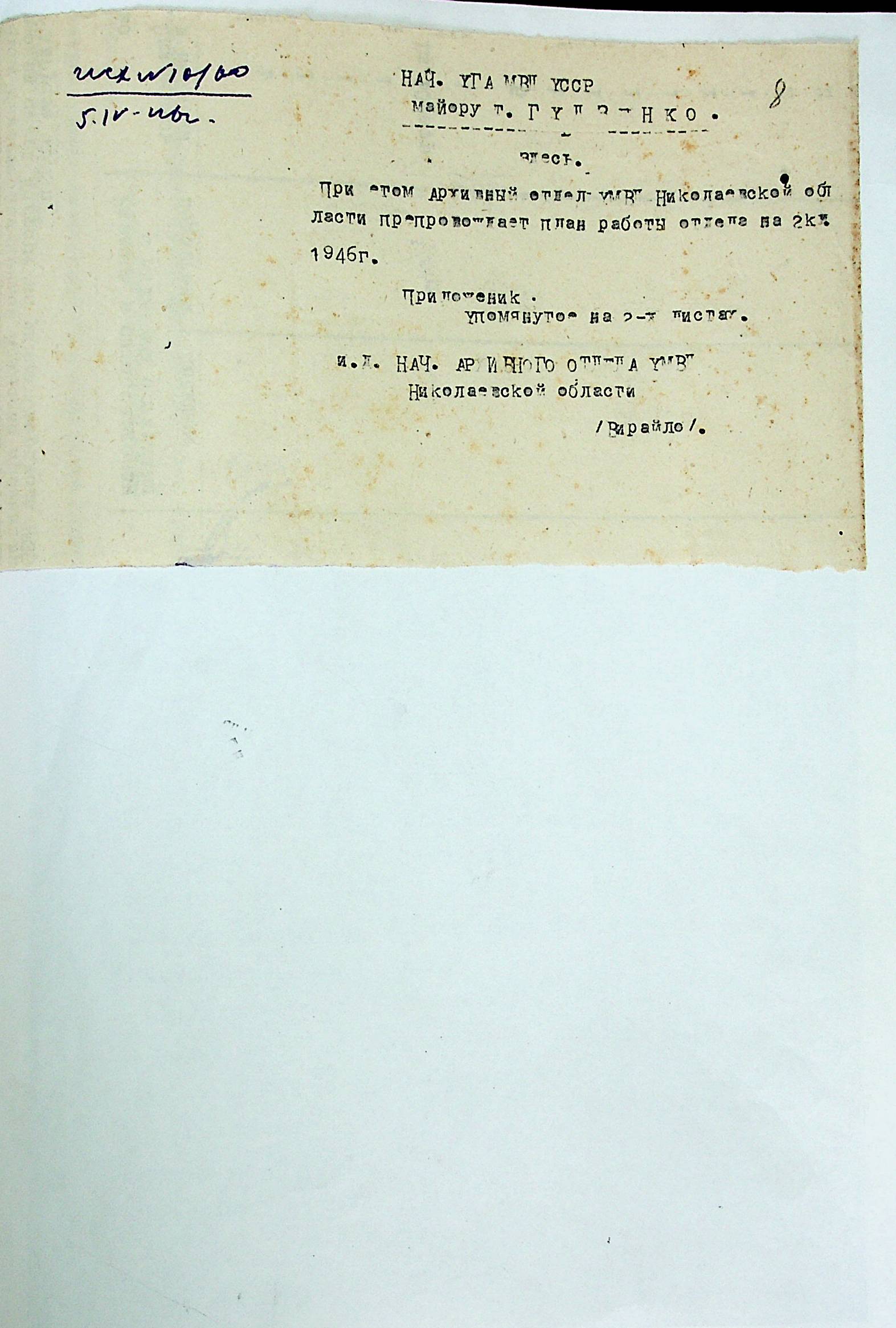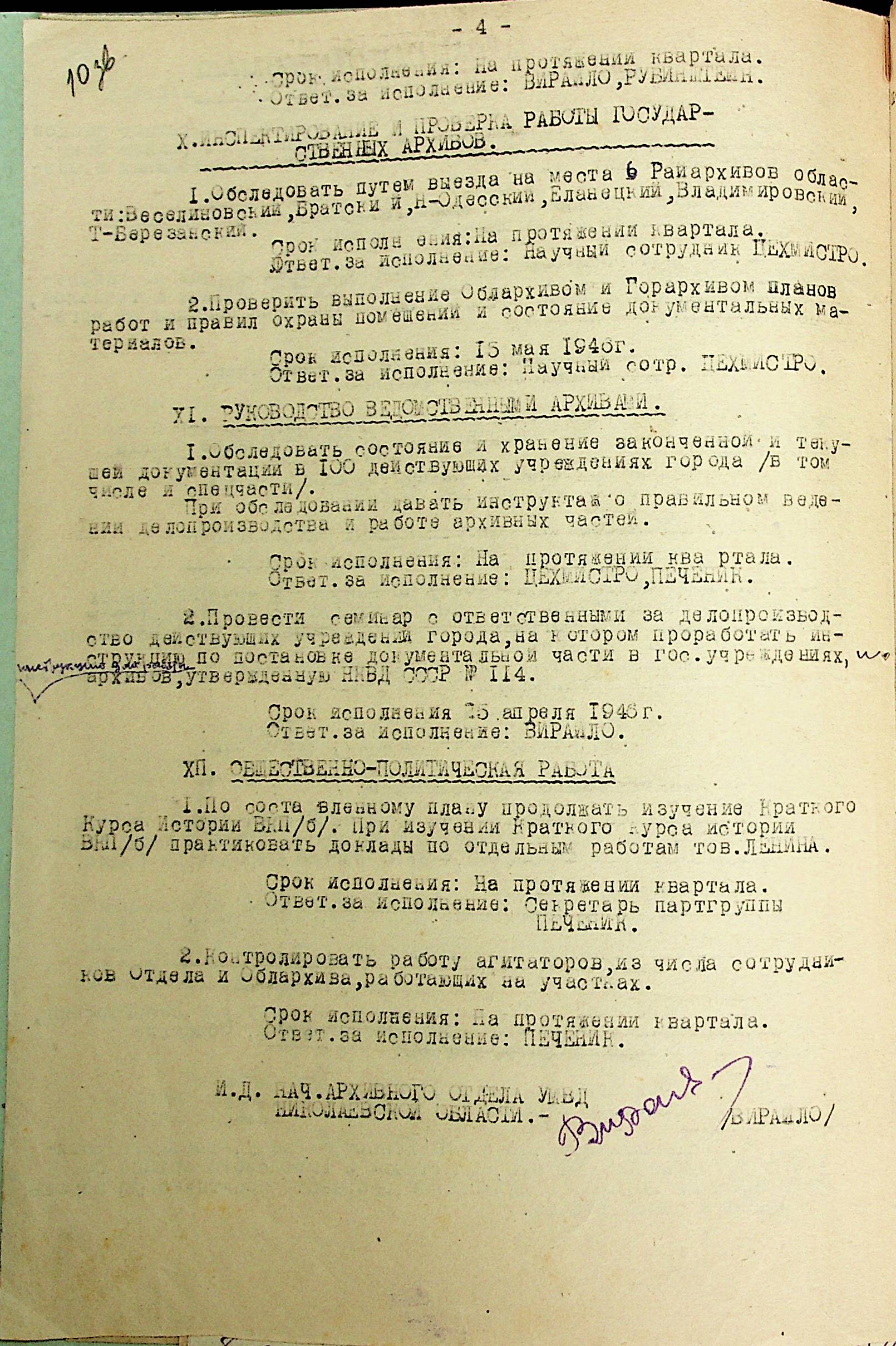 • • • • Справа № 66 “Квартальні плани роботи відділу державних архівів на 1946 р.”