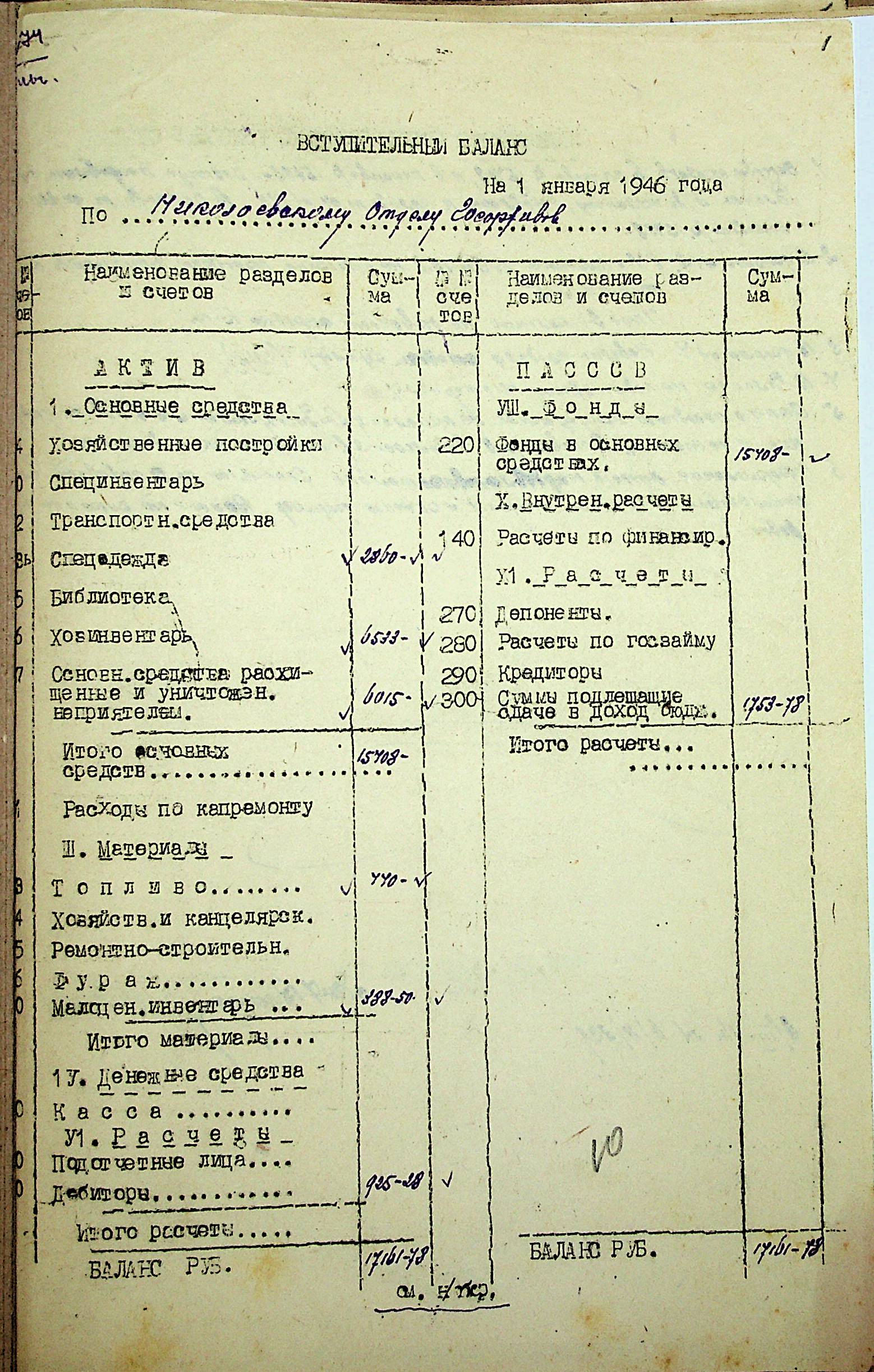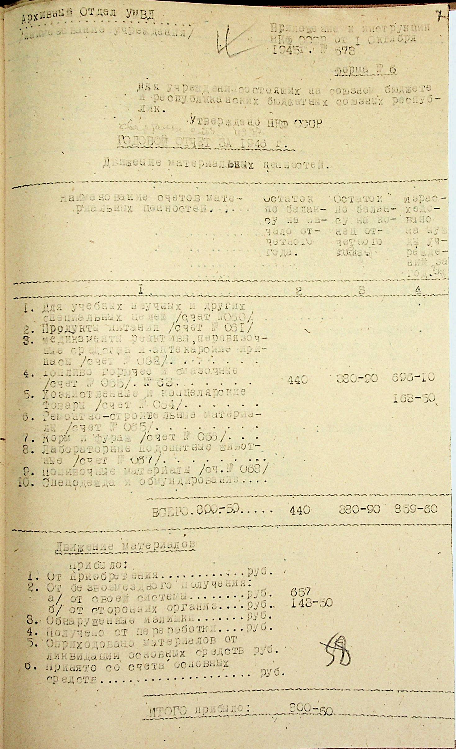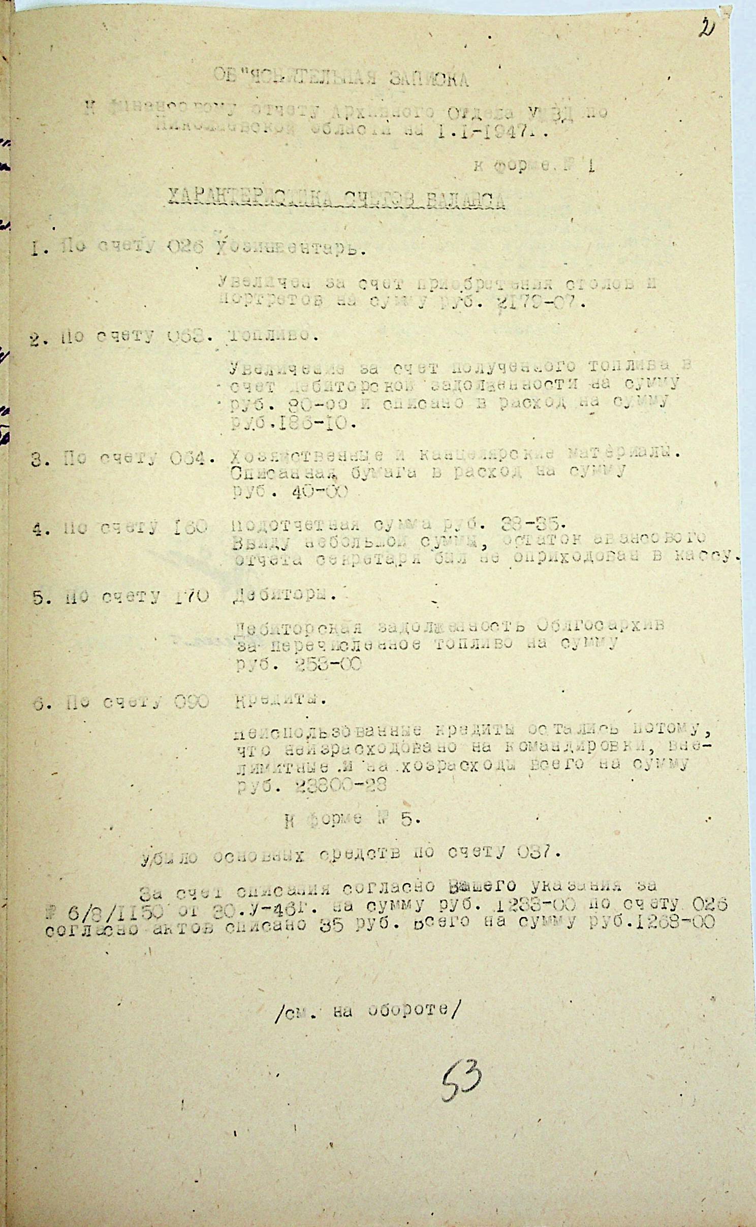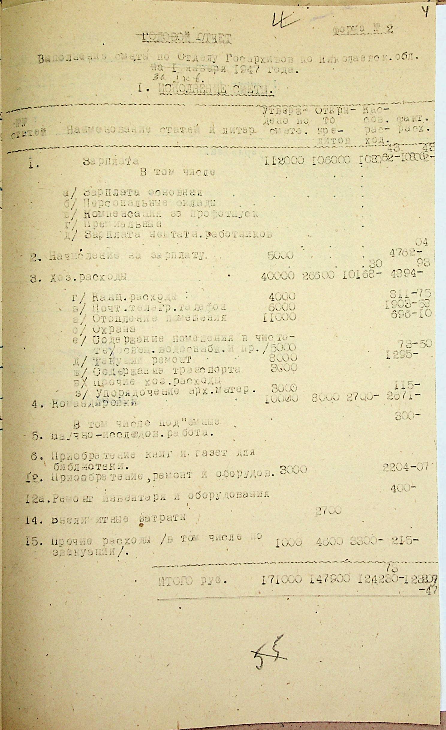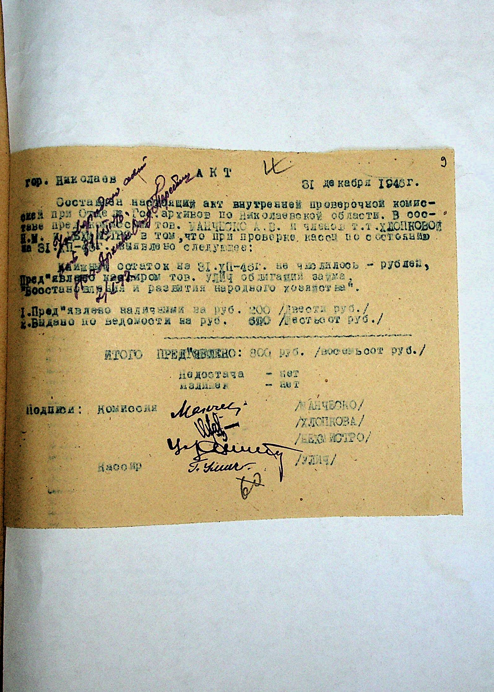 • • • • Справа № 69 “Річний фінансовий звіт відділу державних архівів Миколаївської області за 1946 р.”