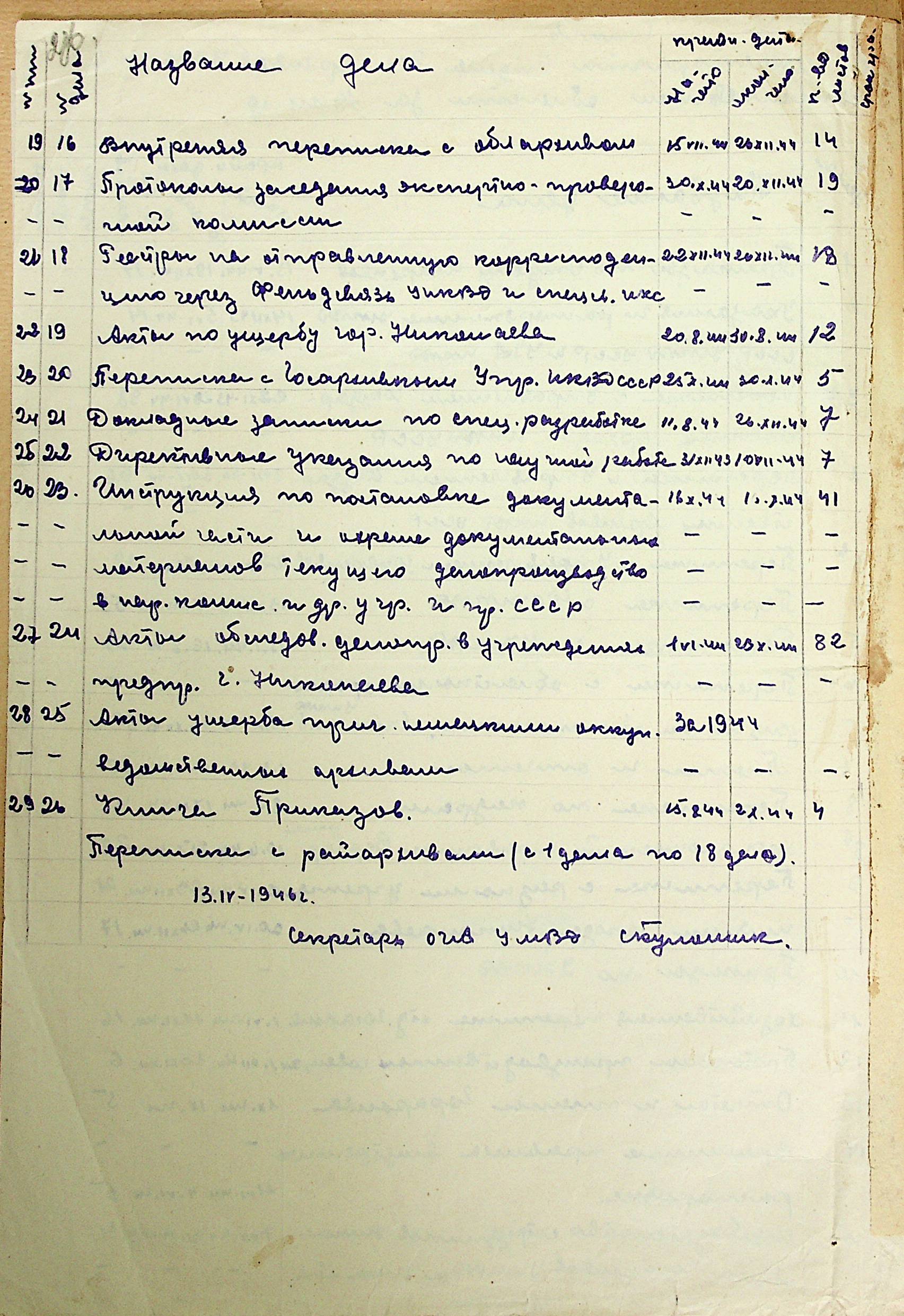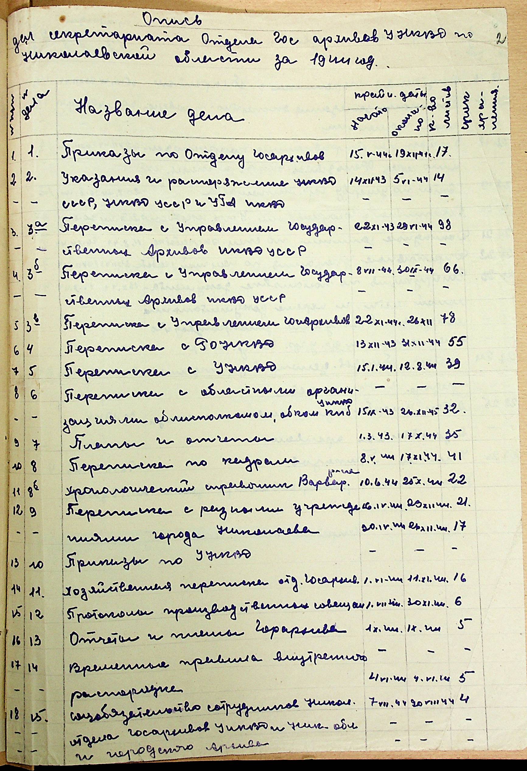 ◦ ◦ ◦ Опис № 3 справ постійного зберігання за 1943–1953 роки
