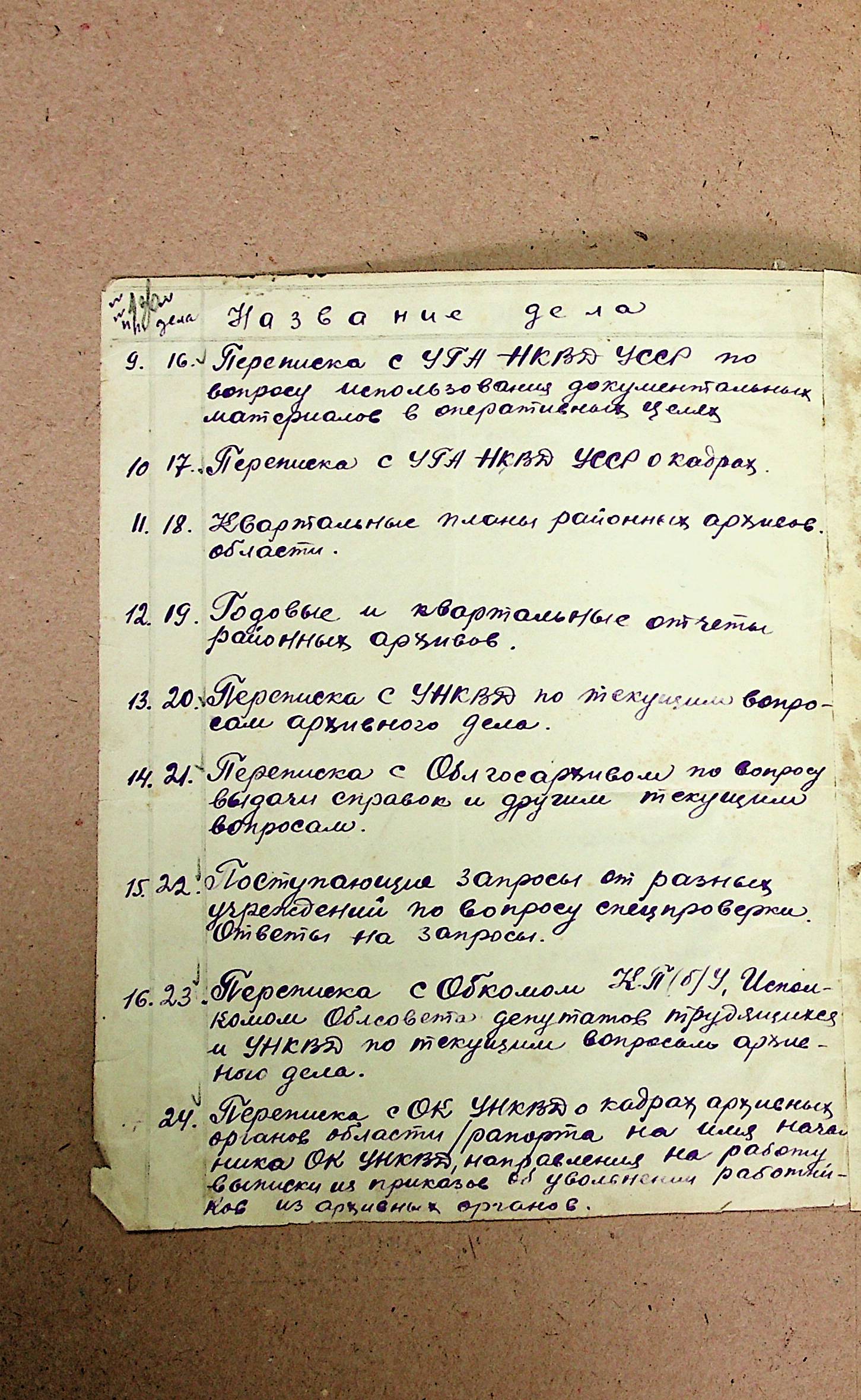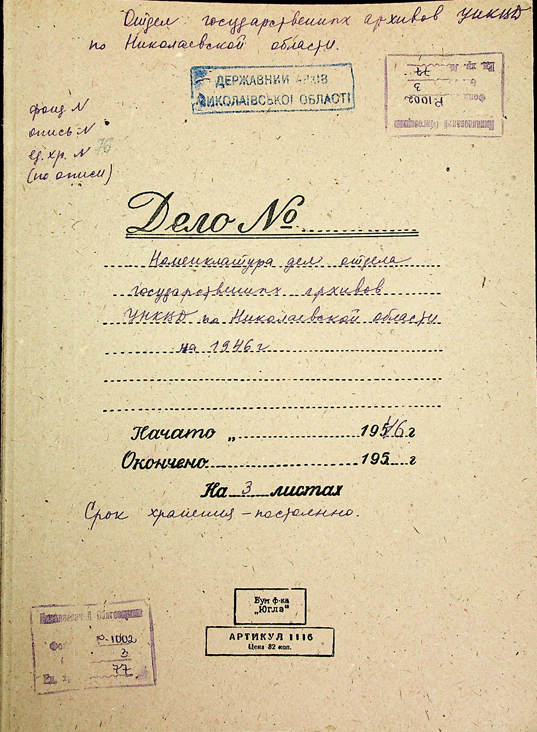 • • • • Справа № 77 “Номенклатура справ відділу державних архівів УНКВС у Миколаївській області на 1946 р.”