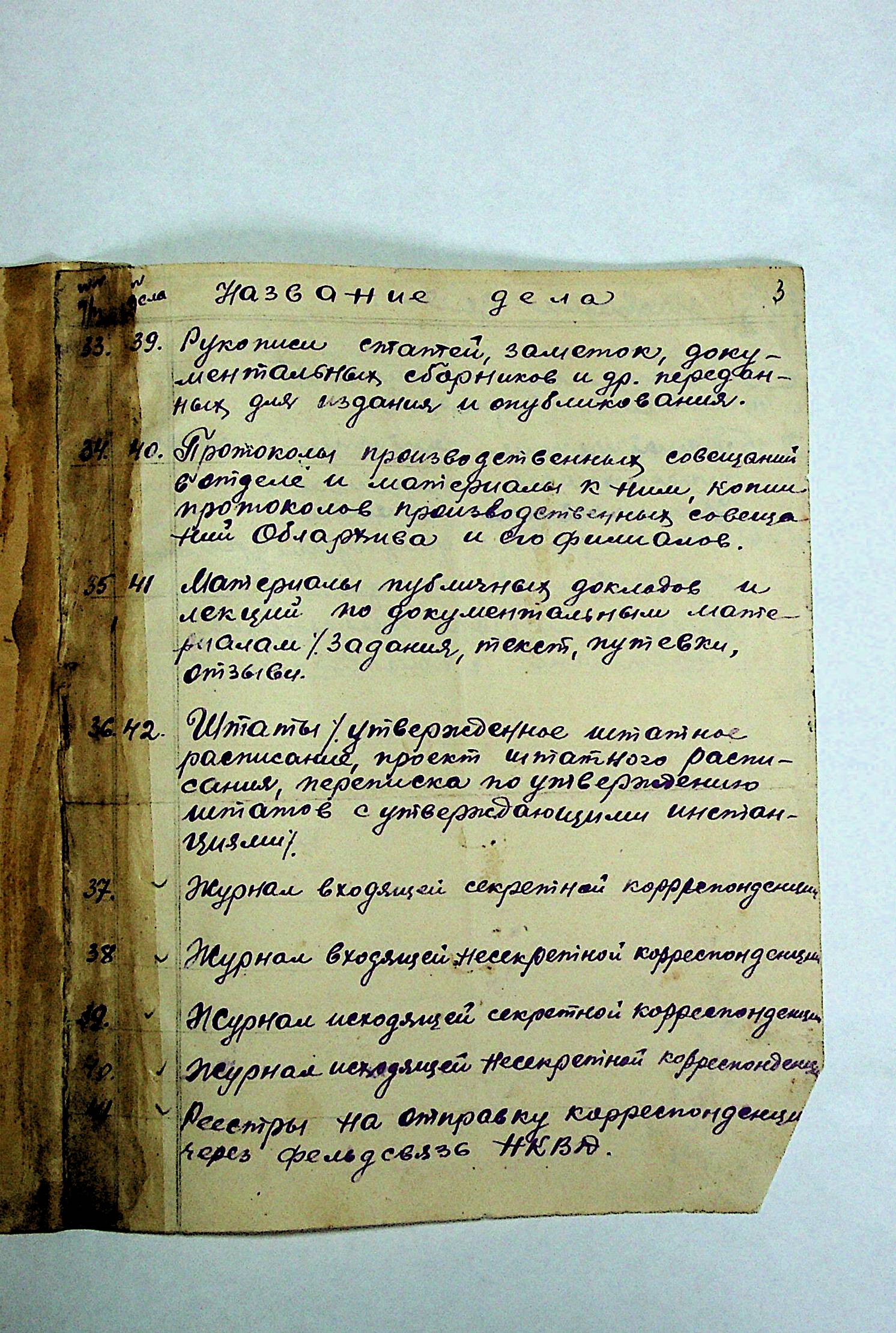 ◦ ◦ ◦ Опис № 3 справ постійного зберігання за 1943–1953 роки