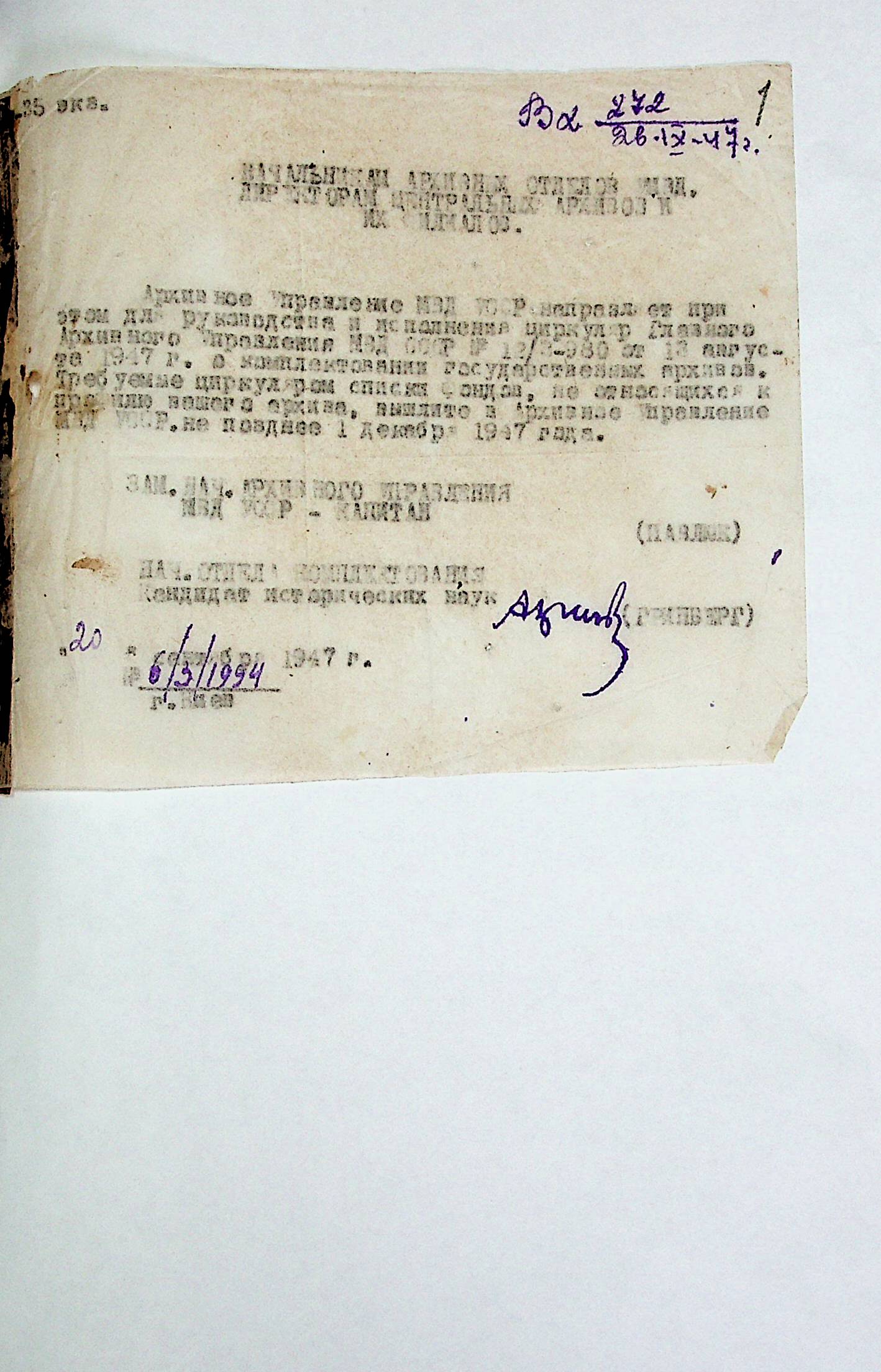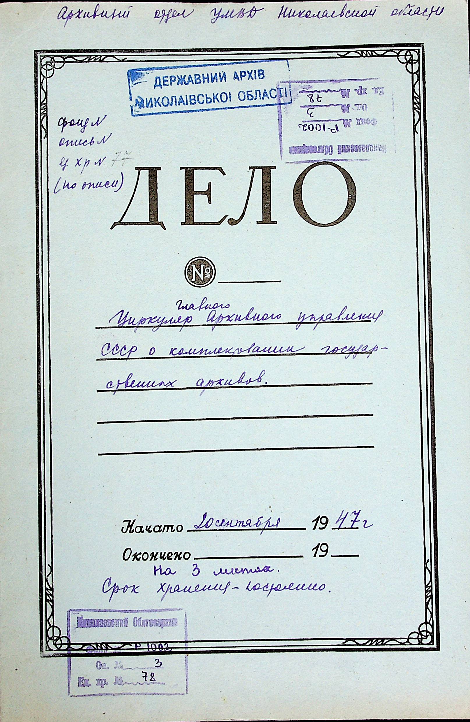 • • • • Справа № 78 “Циркуляр головного архівного управління СРСР про комплектування державних архівів”