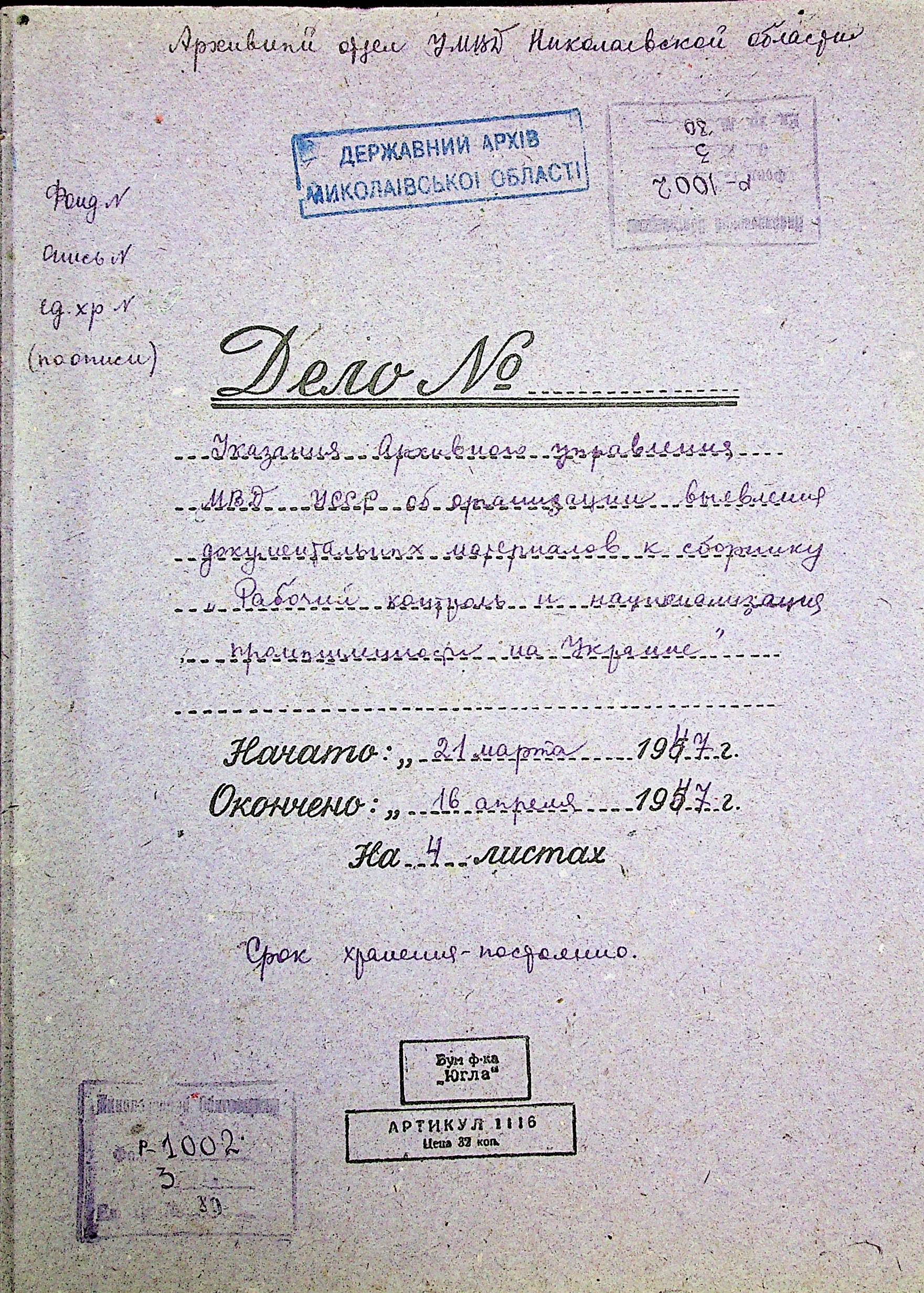 ◦ ◦ Фонд № Р-1002 “Архівний відділ управління виконкому Миколаївської обласної Ради народних депутатів, м. Миколаїв”