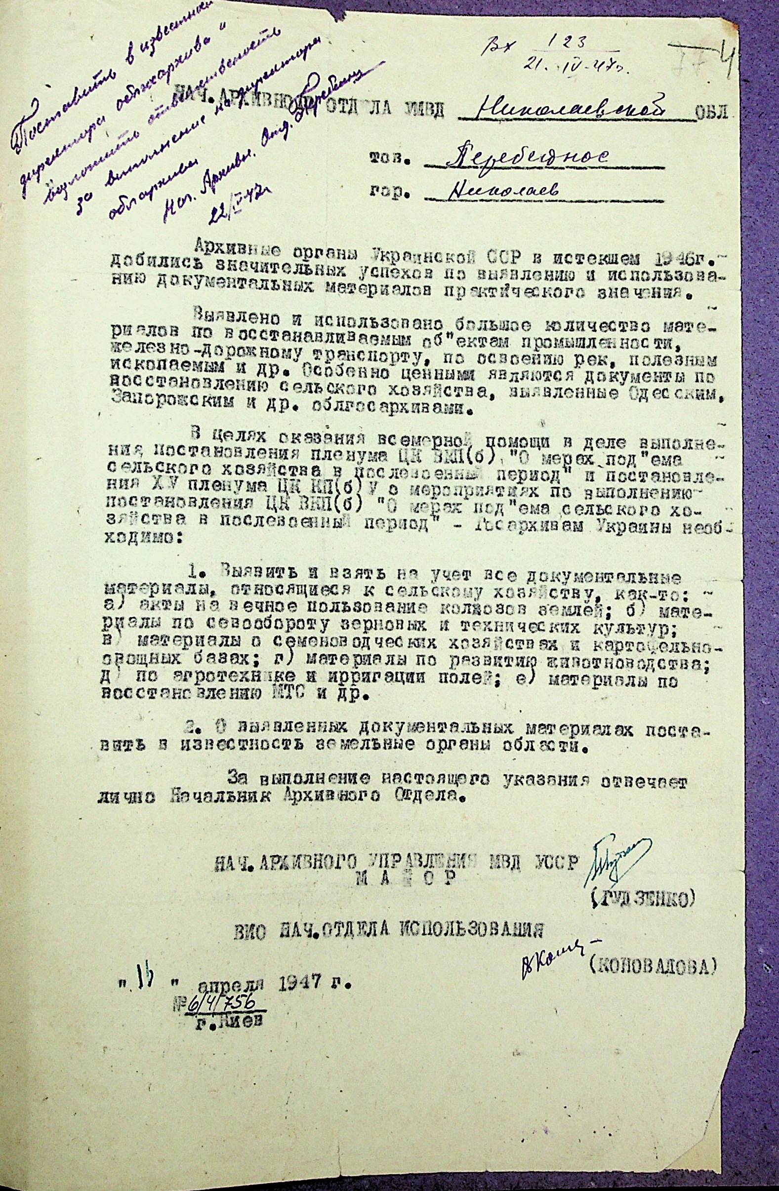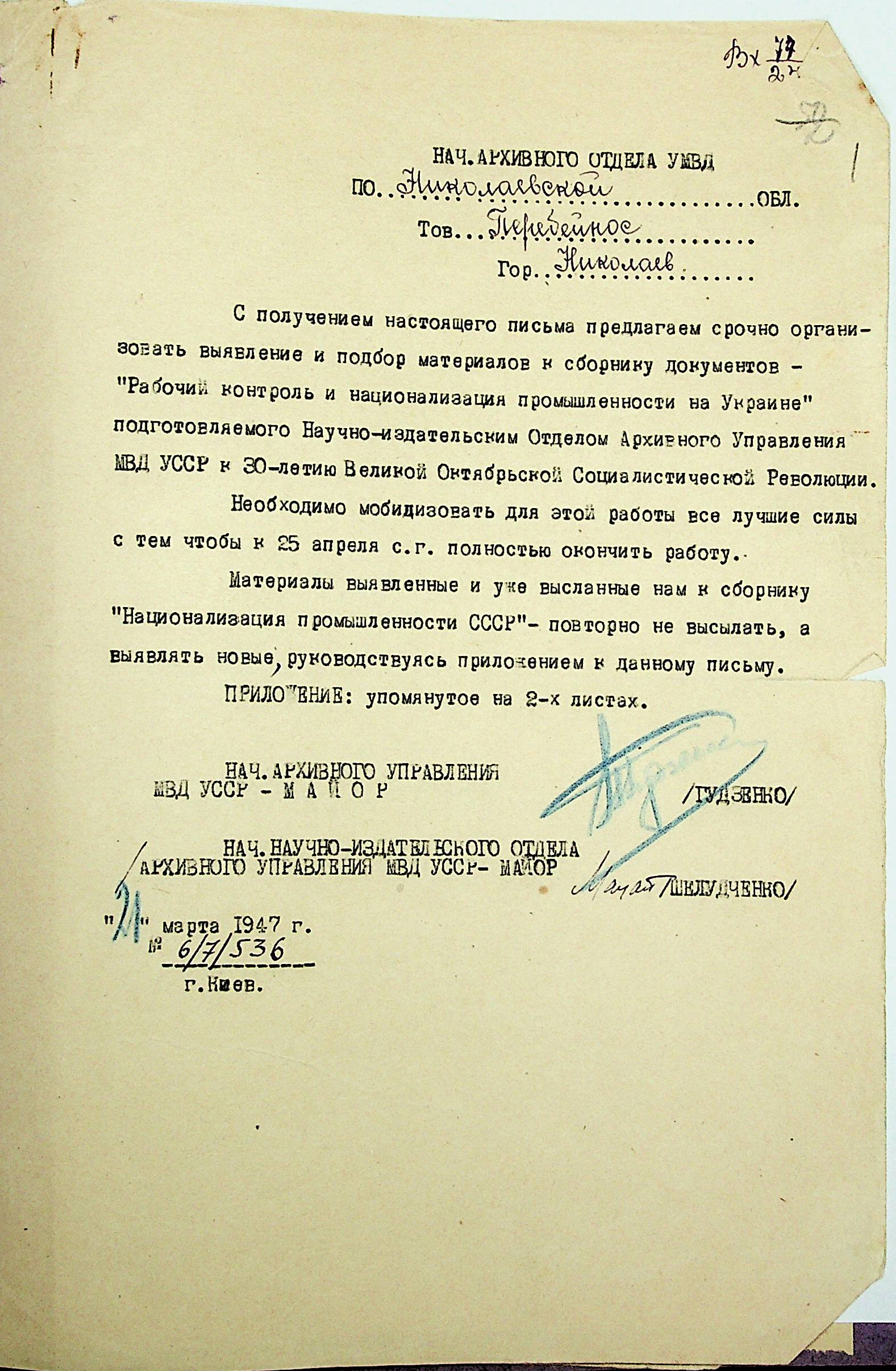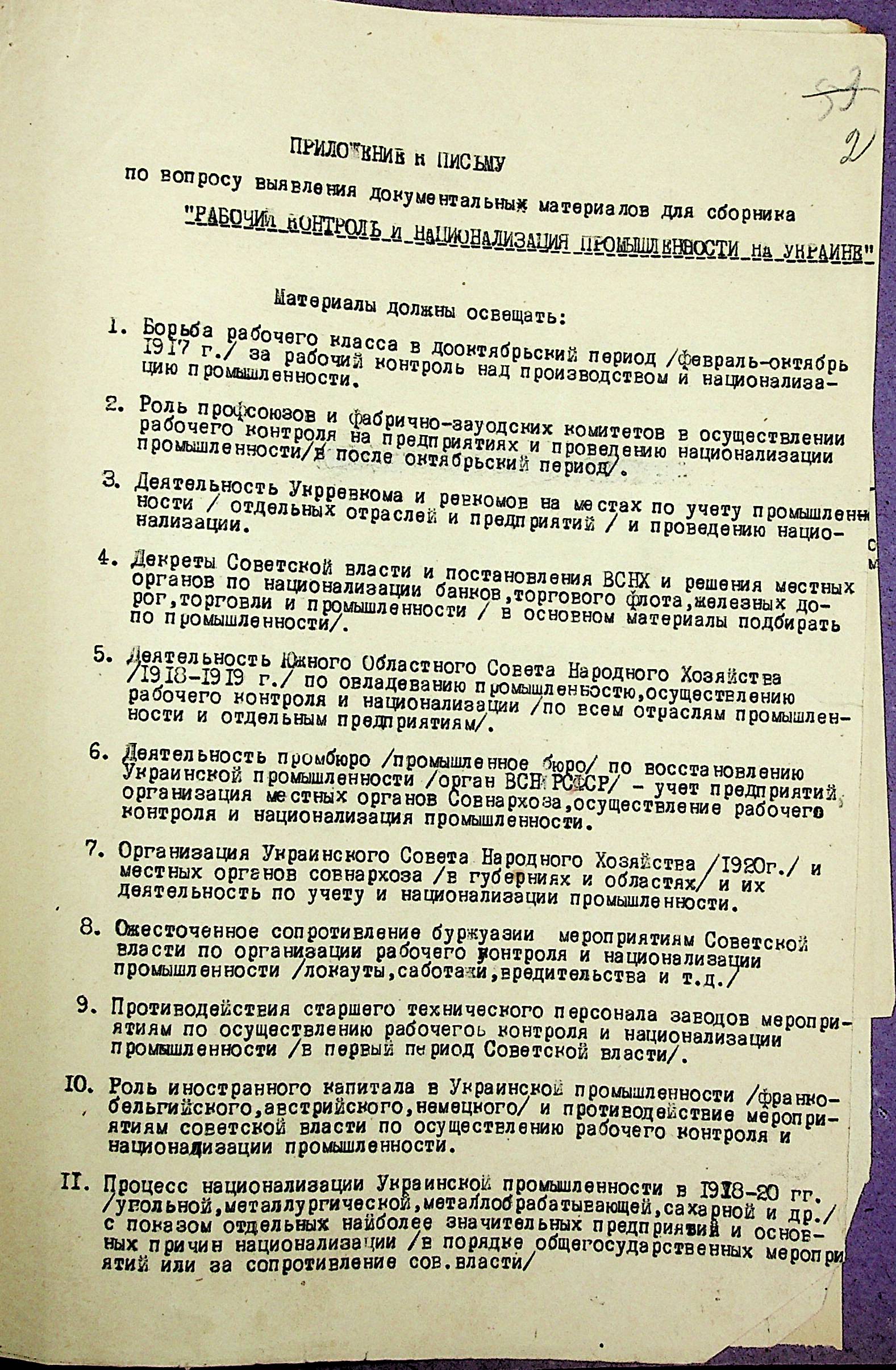 • • • • Справа № 80 “Вказівки архівного управління МВС УРСР про організацію виявлення документальних матеріалів до збірки “Робочий контроль та націоналізація промисловості в Україні””