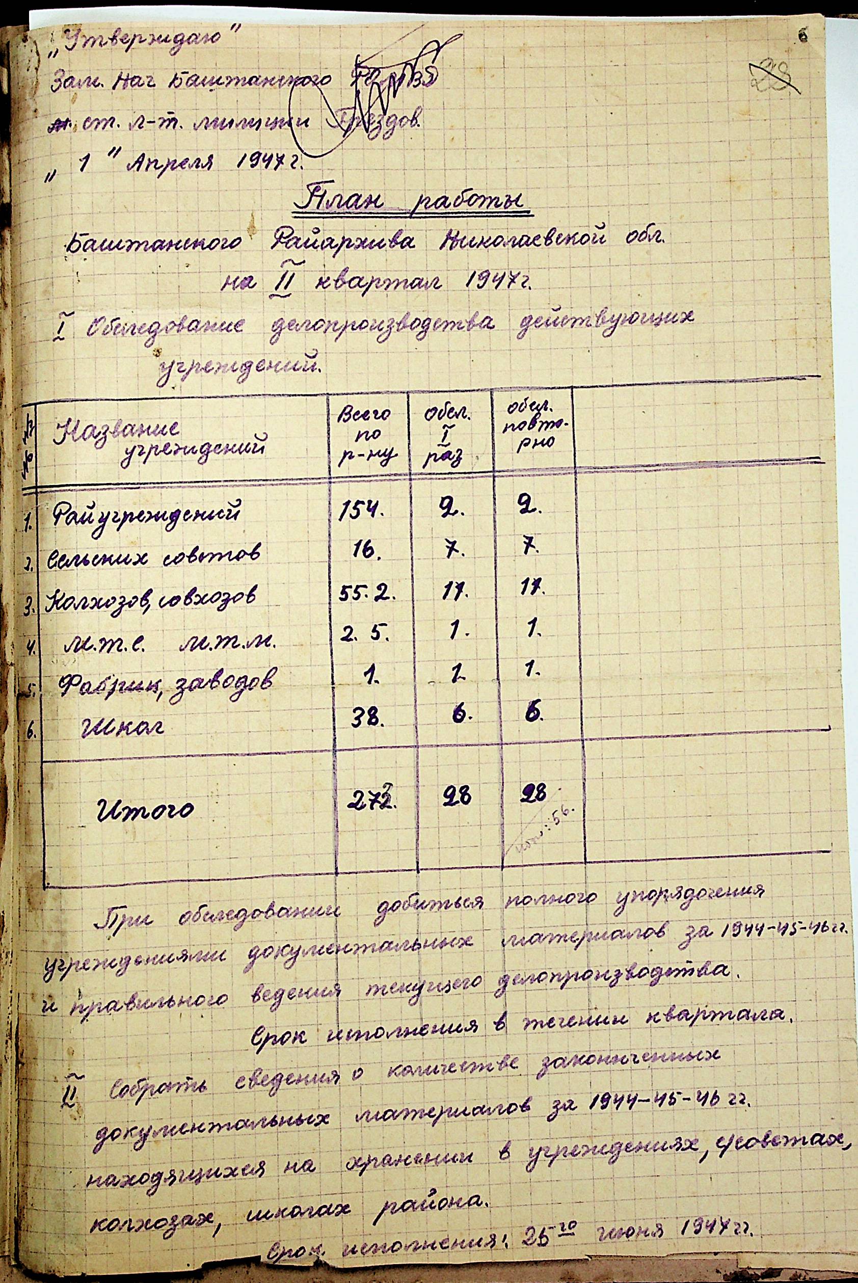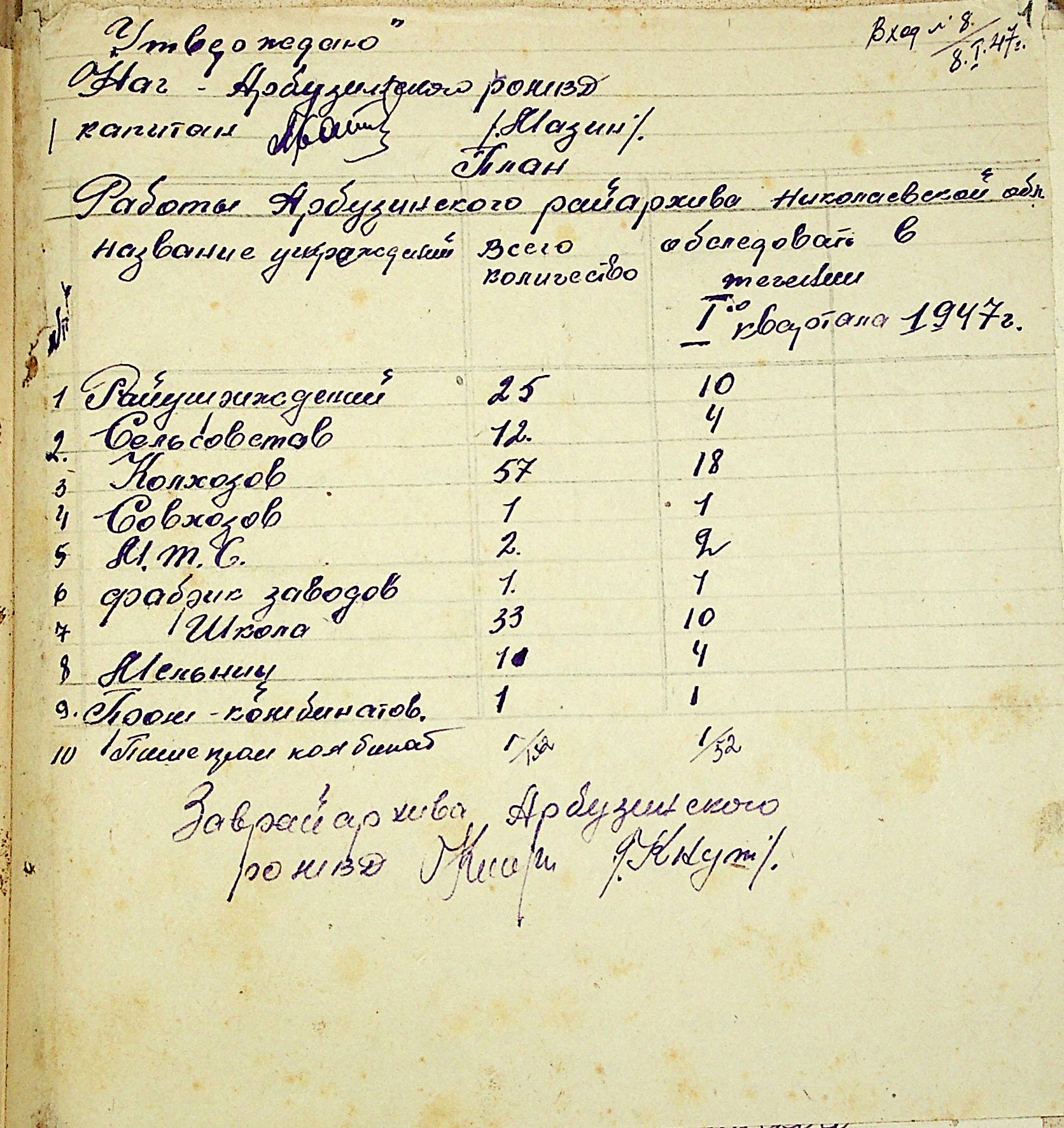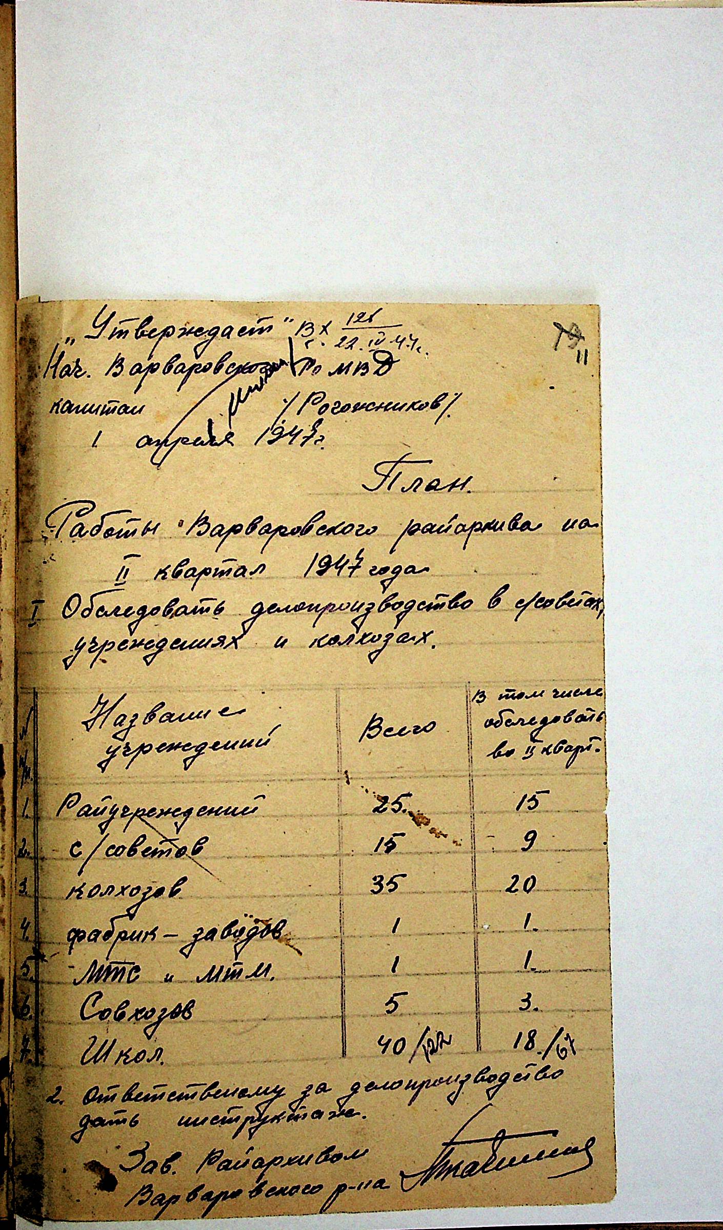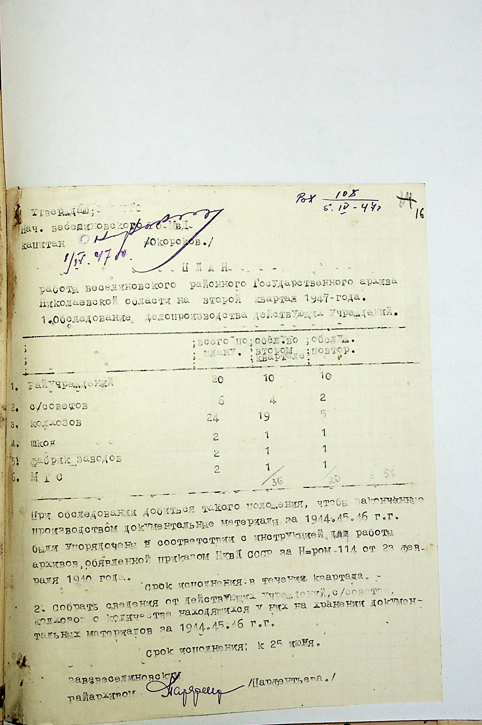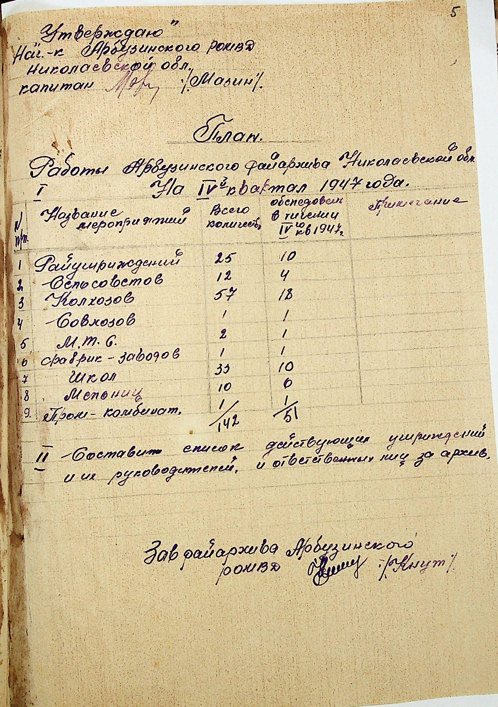 • • • • Справа № 83 “Квартальні плани роботи районних державних архівів Миколаївської області на 1947 р.”