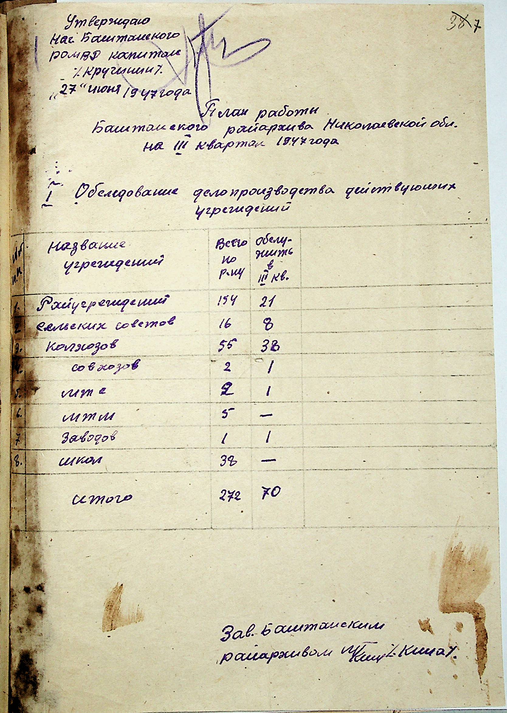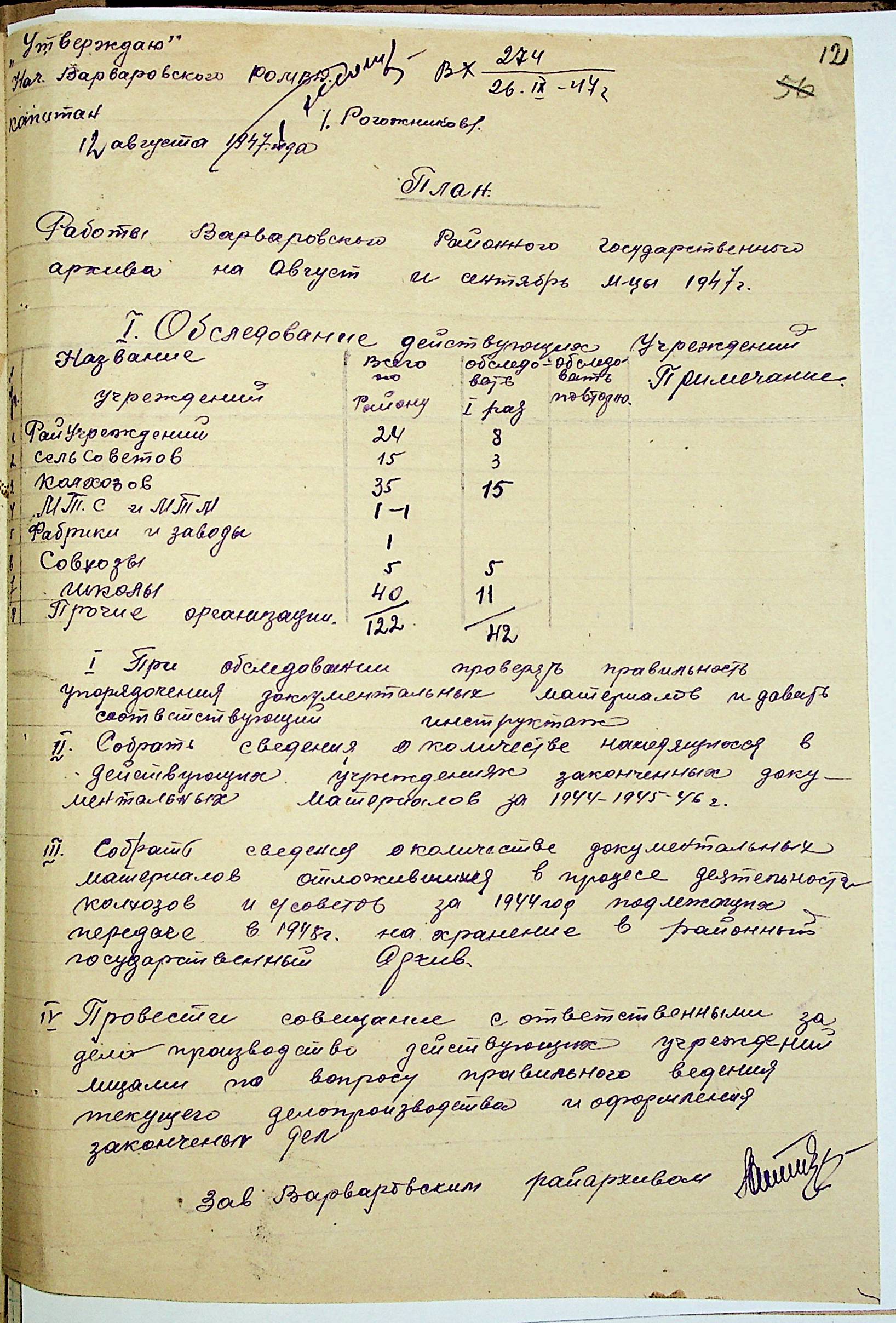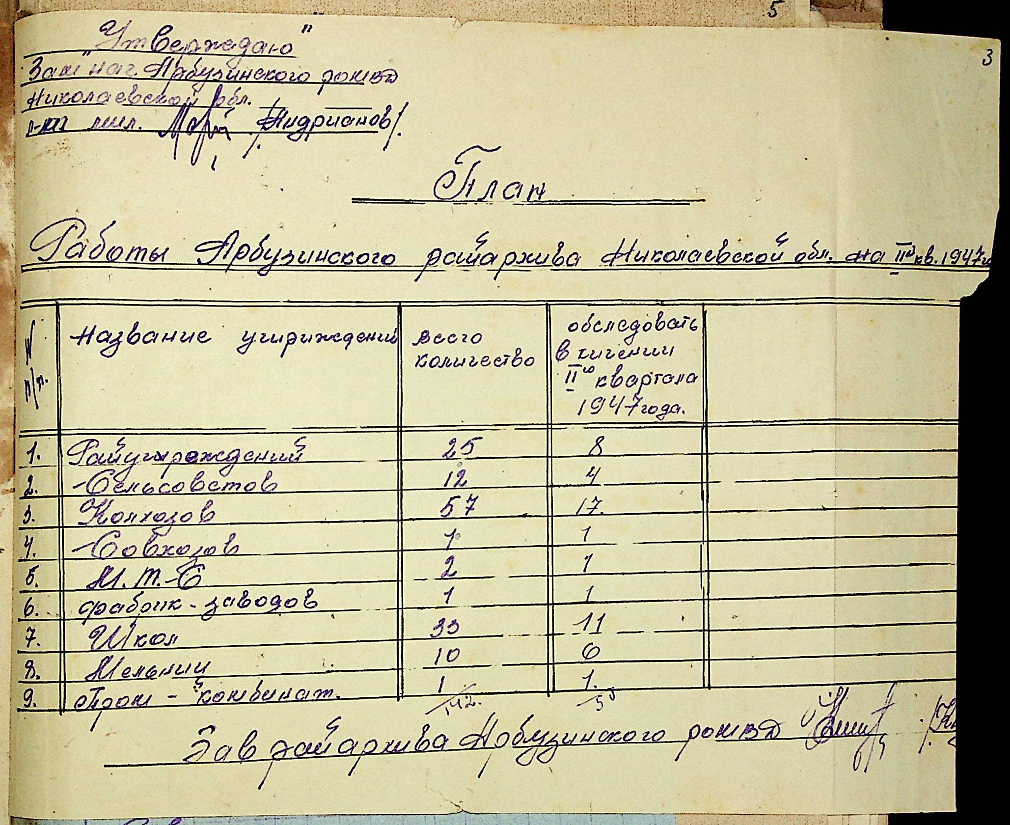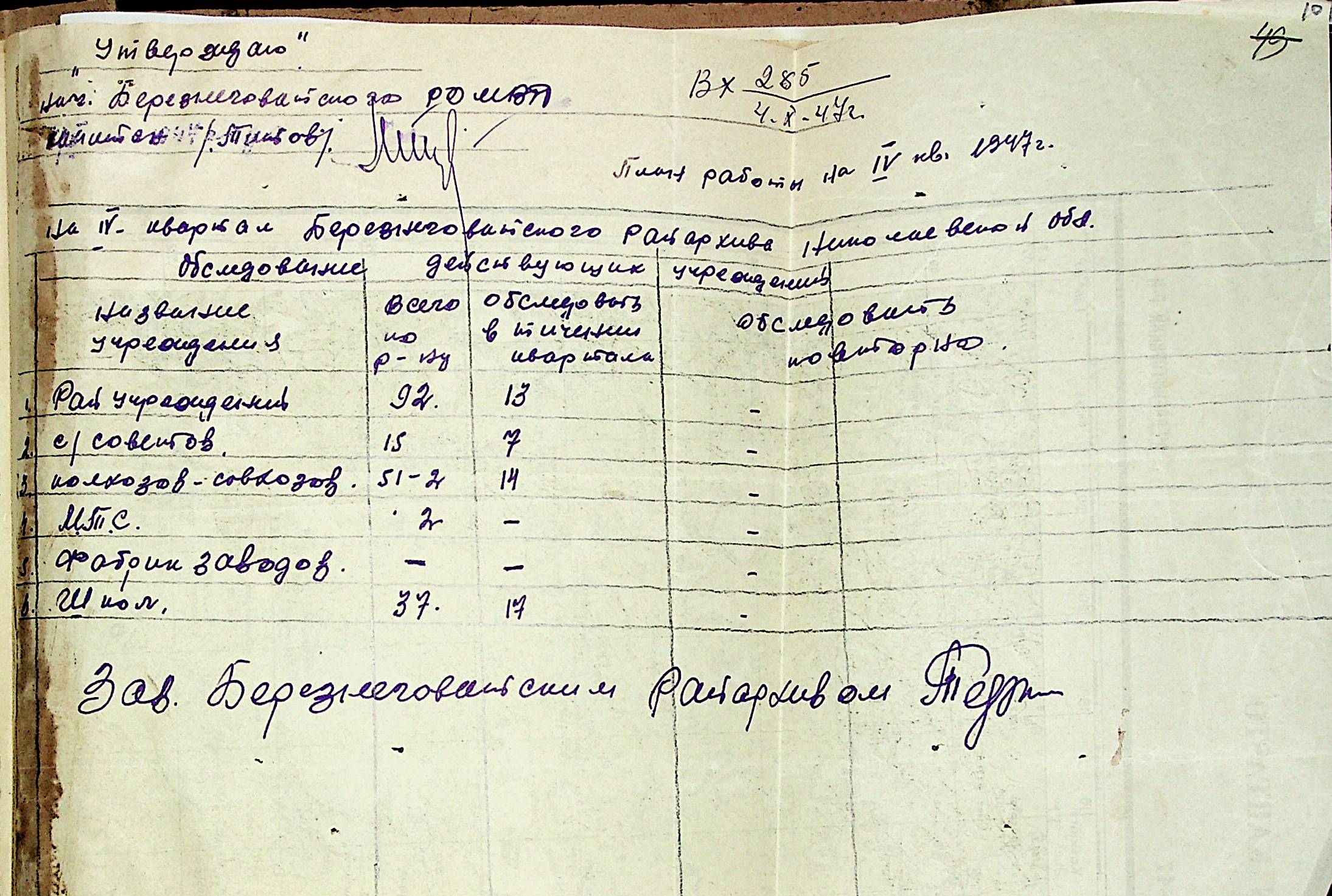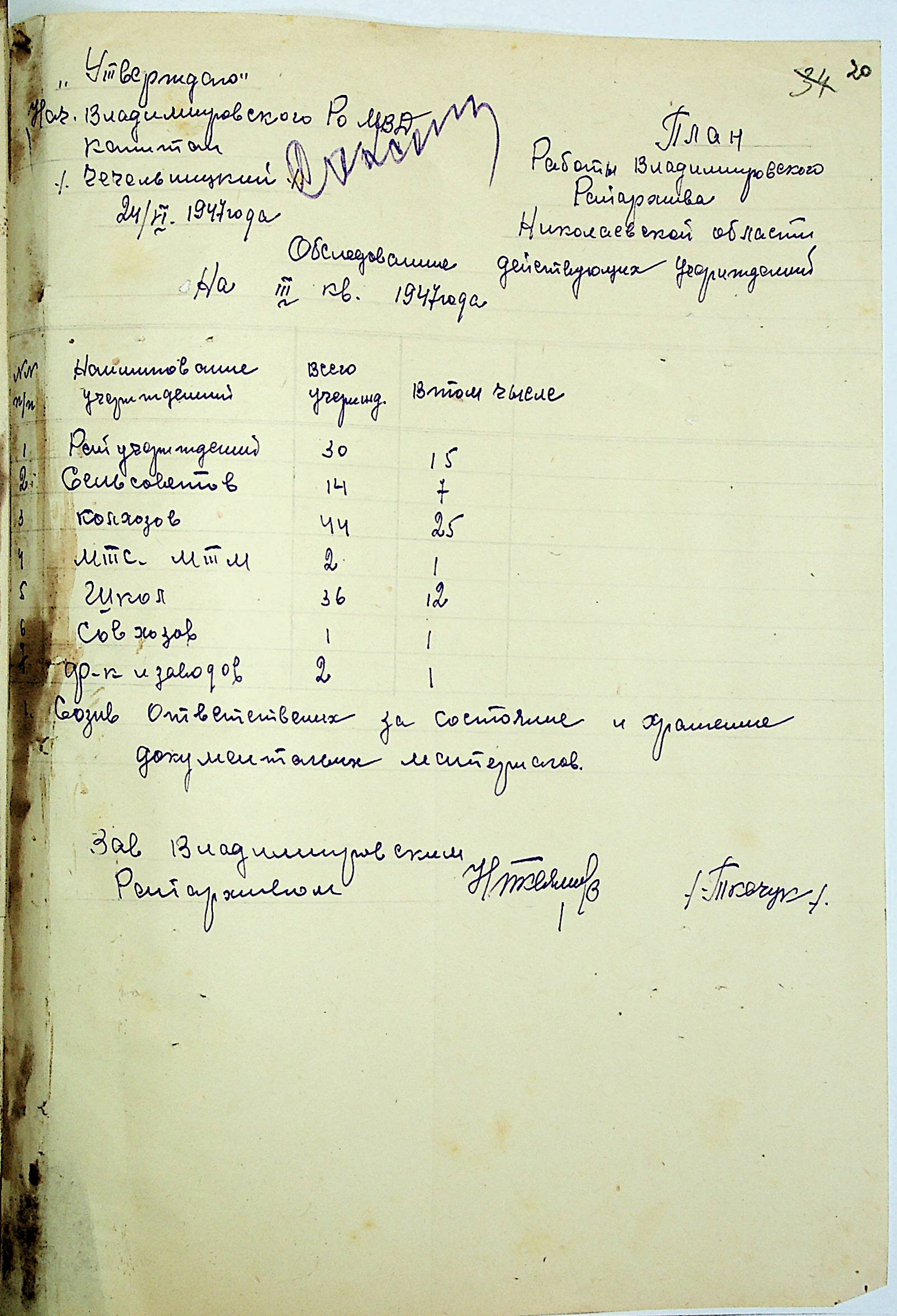 • • • • Справа № 83 “Квартальні плани роботи районних державних архівів Миколаївської області на 1947 р.”