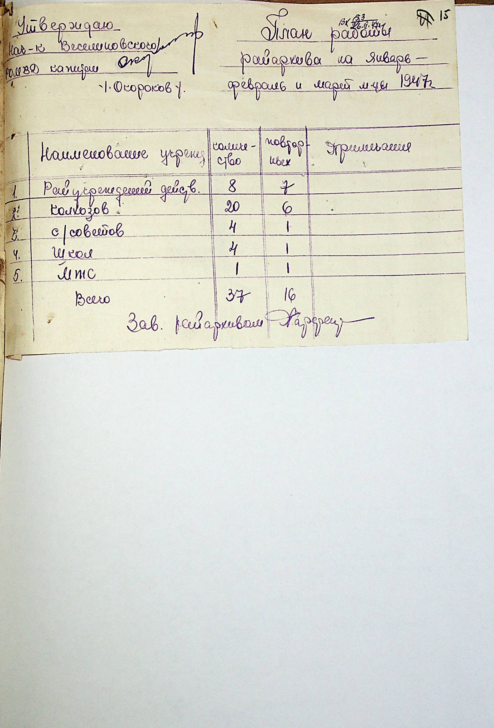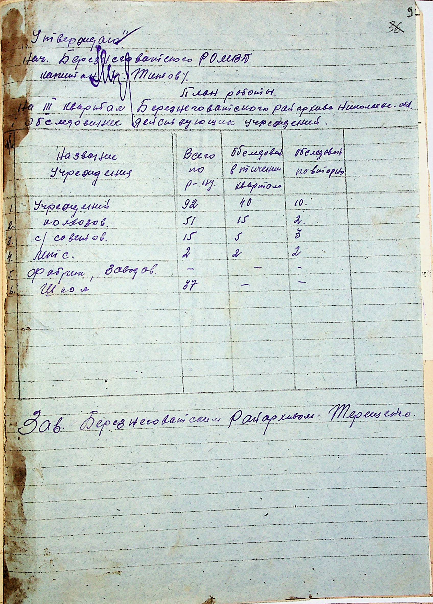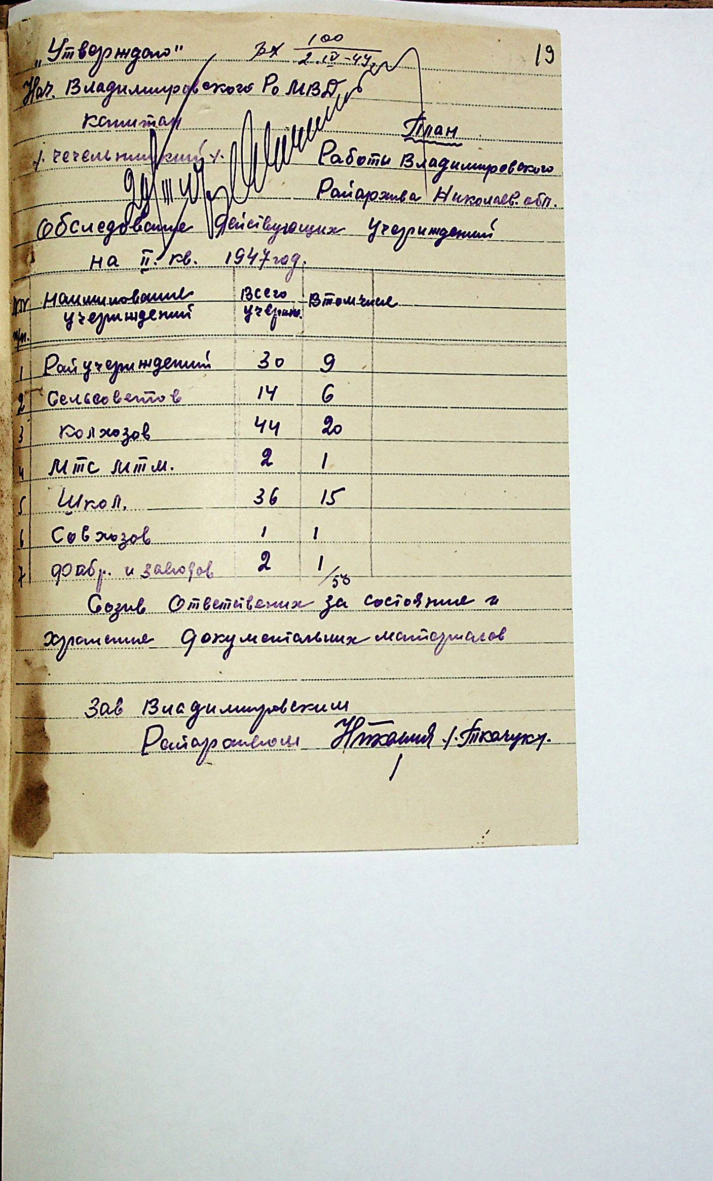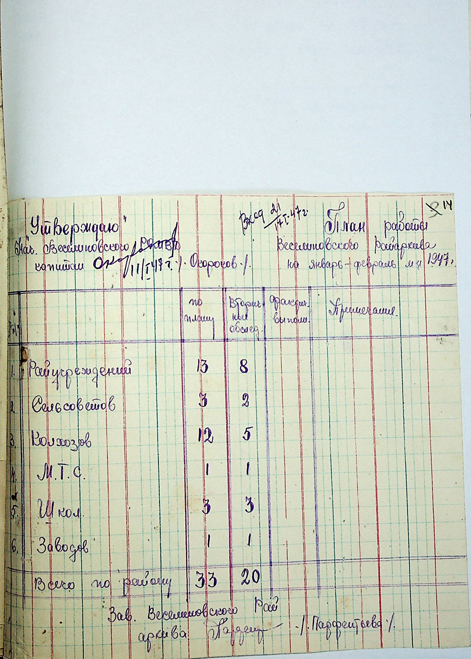 • • • • Справа № 83 “Квартальні плани роботи районних державних архівів Миколаївської області на 1947 р.”