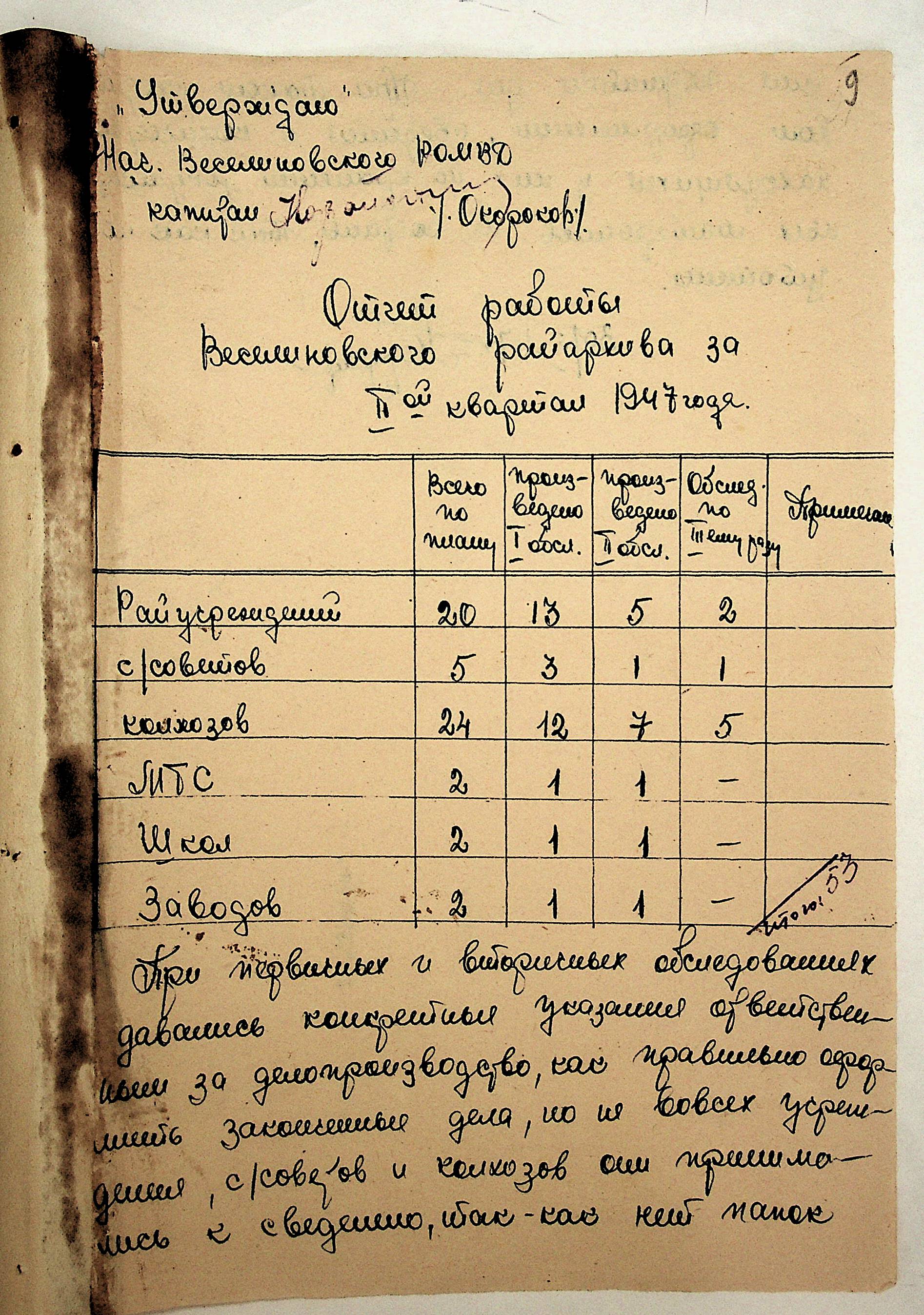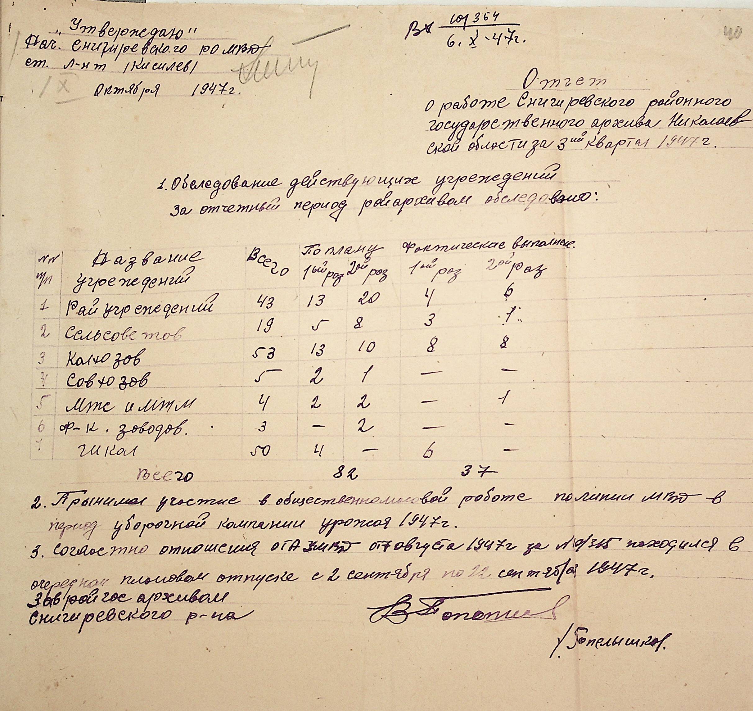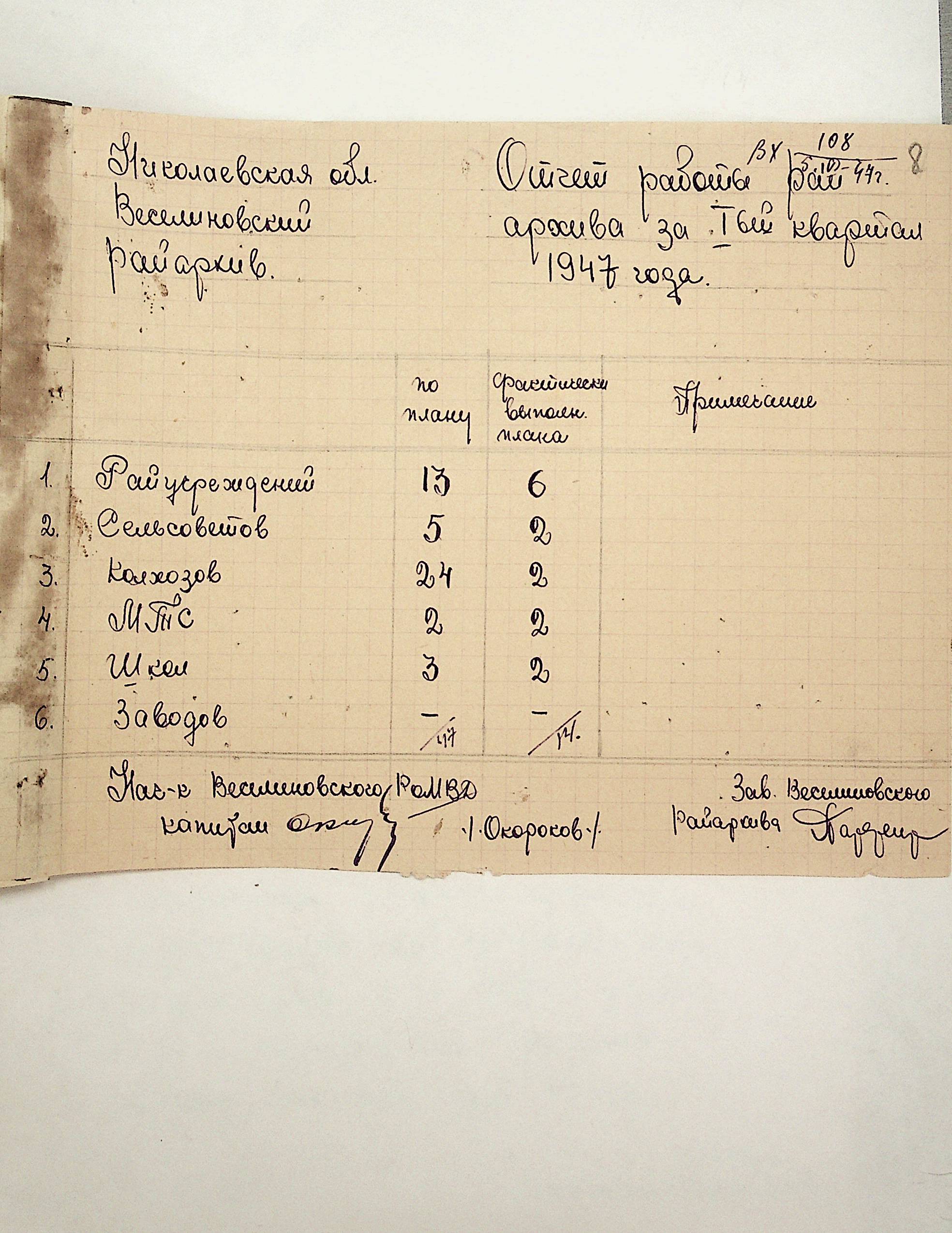 • • • • Справа № 85 “Квартальні звіти про роботу районних державних архівів Миколаївської області за 1947 р.”