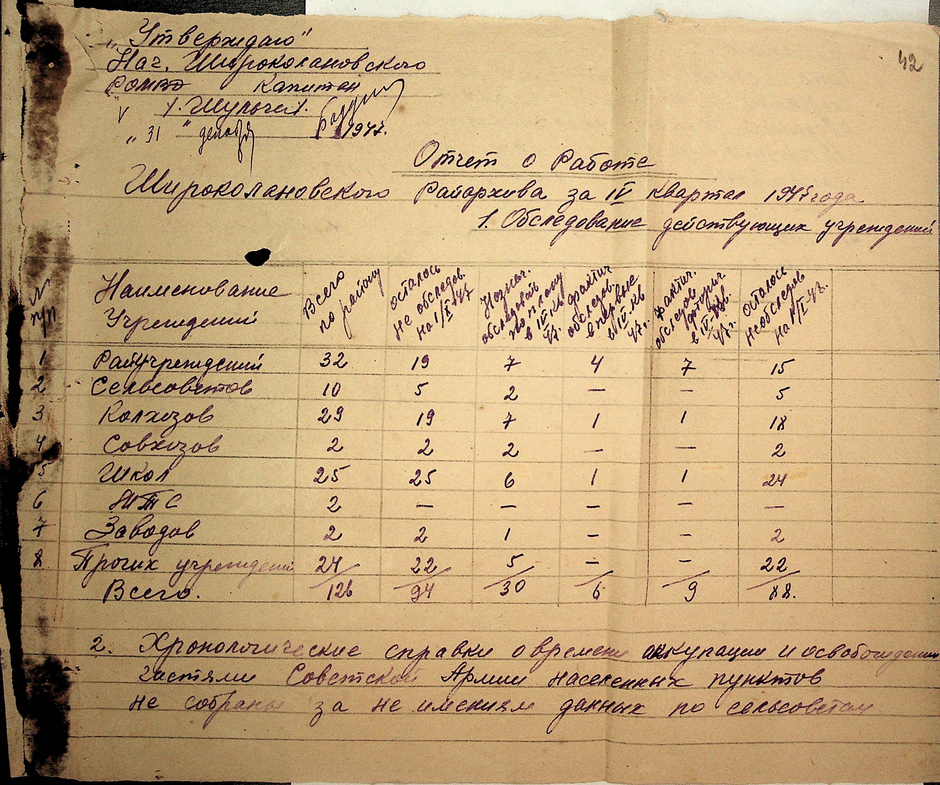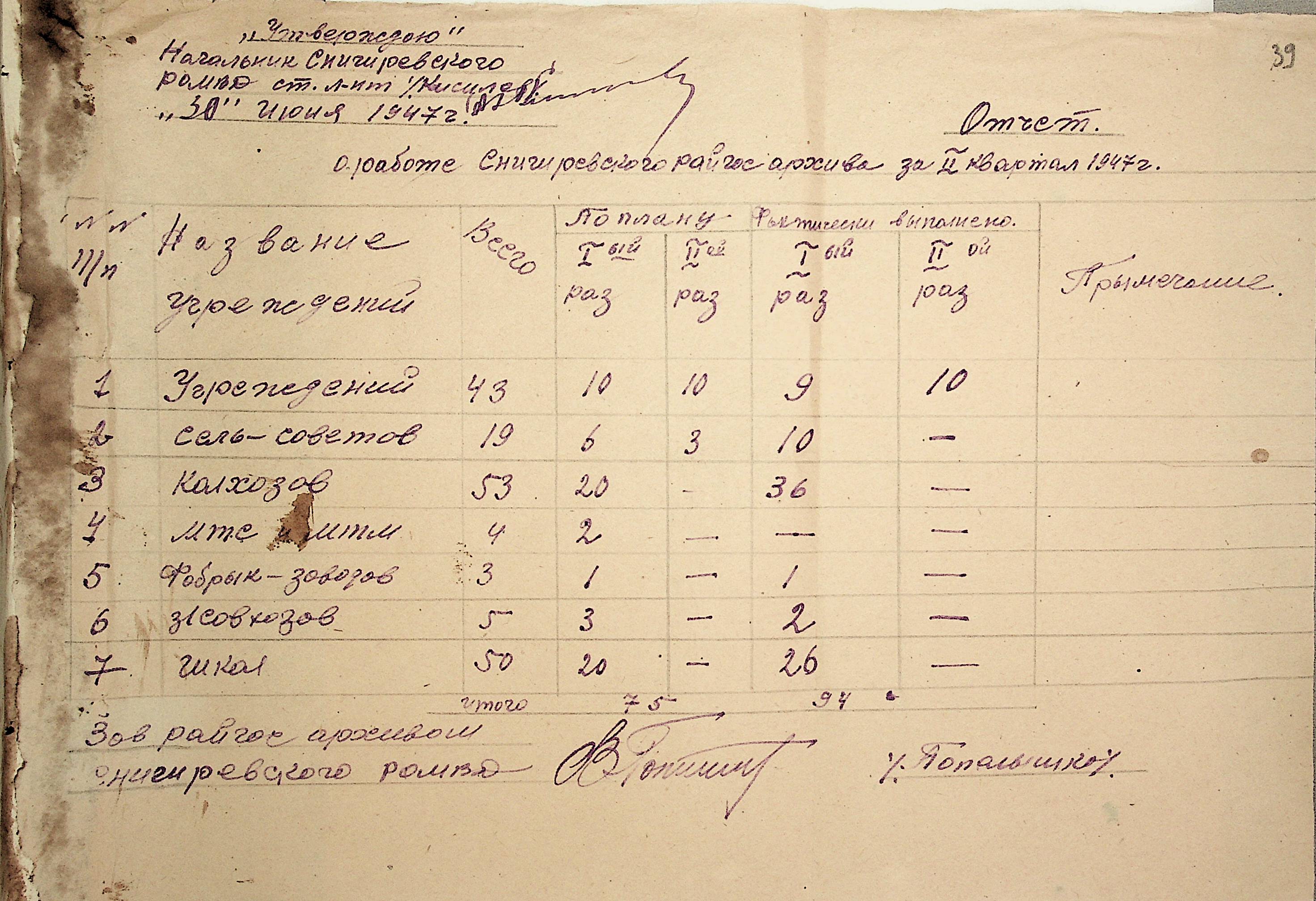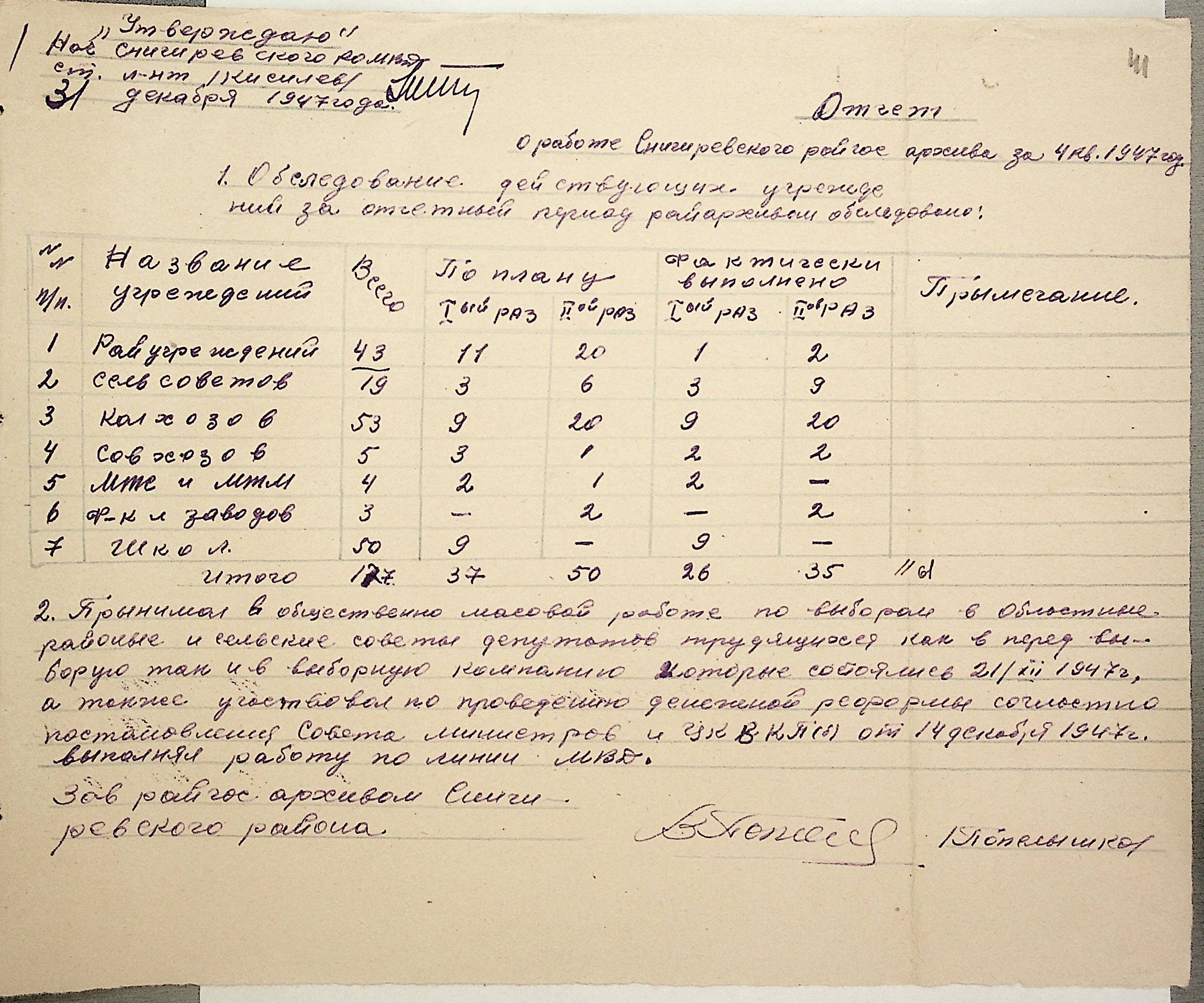 • • • • Справа № 85 “Квартальні звіти про роботу районних державних архівів Миколаївської області за 1947 р.”