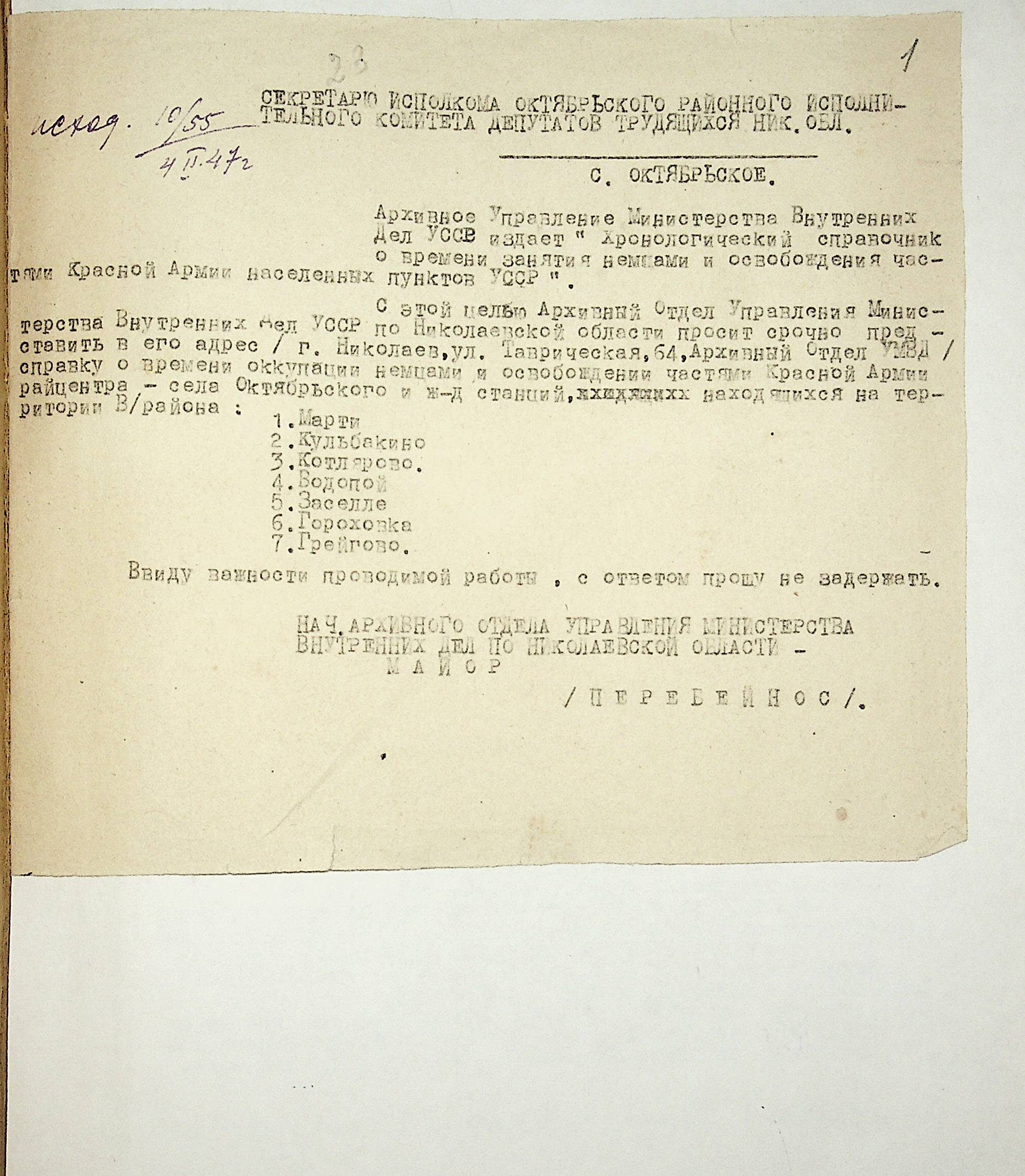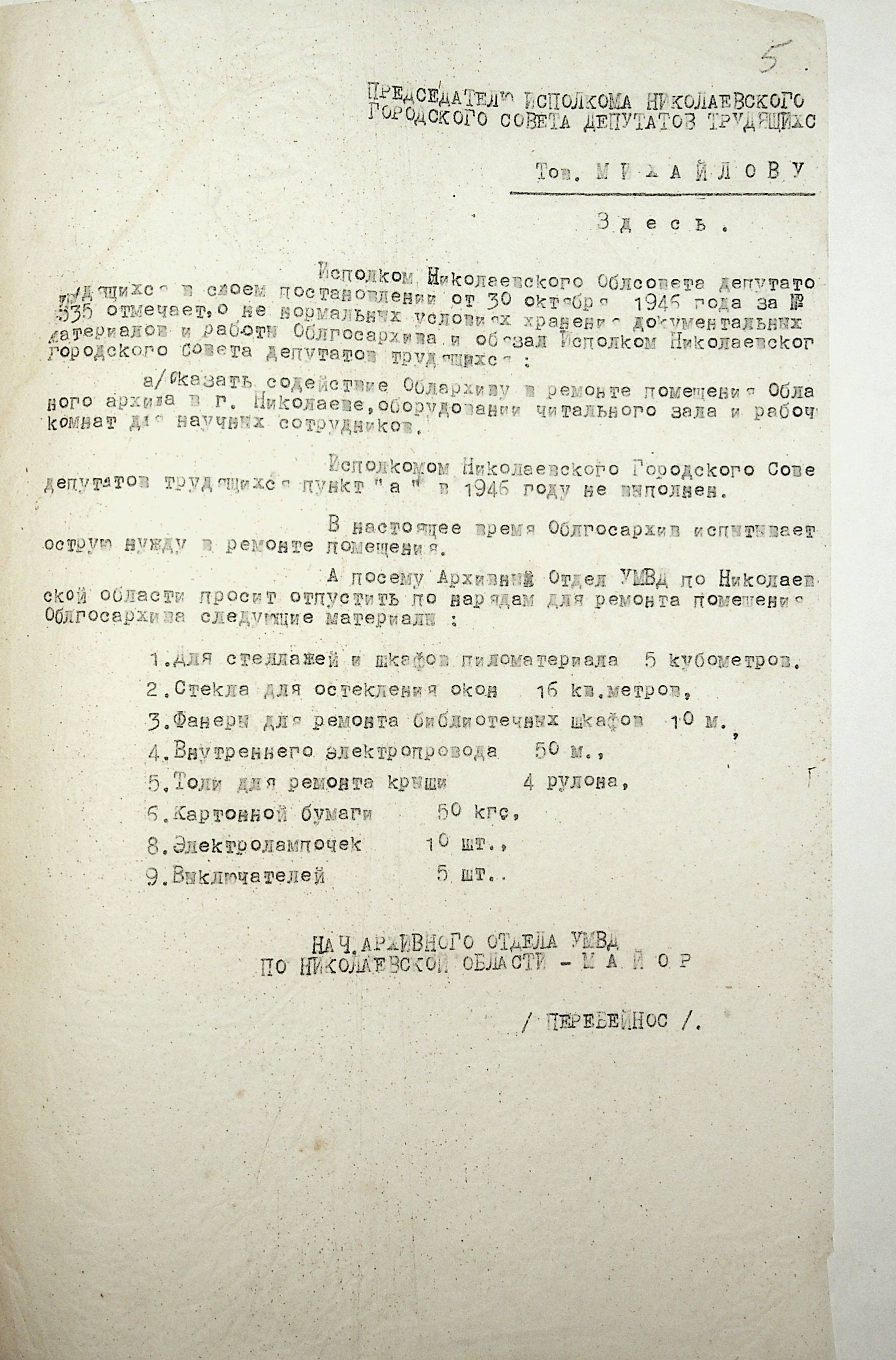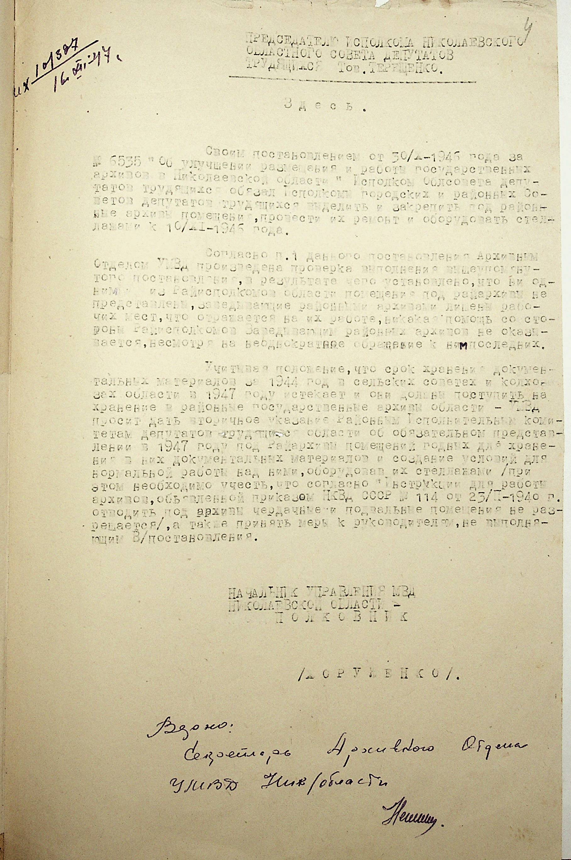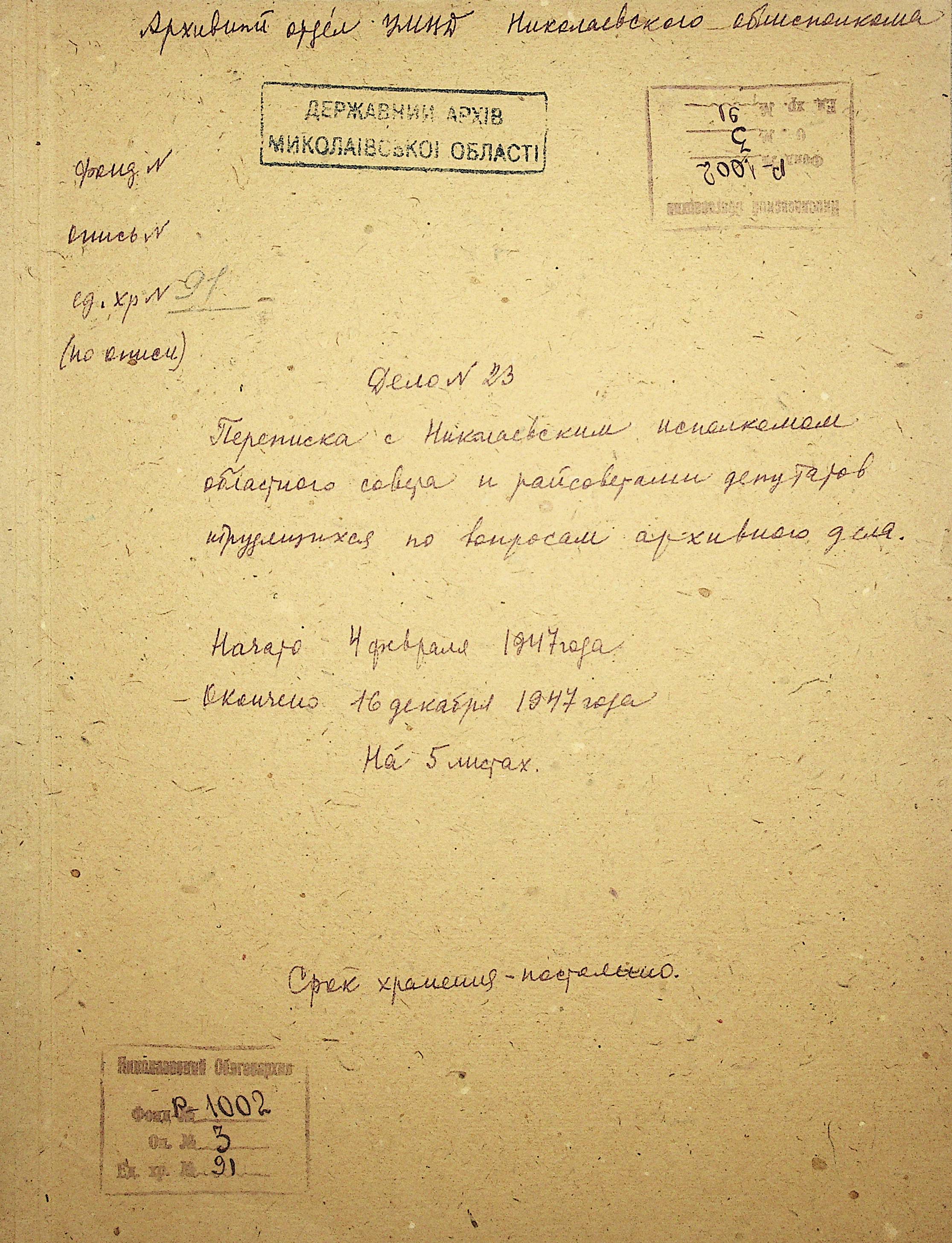 • • • • Справа № 91 “Листування з Миколаївським виконкомом обласної ради та райрадами депутатів трудящих з питань архівної справи”