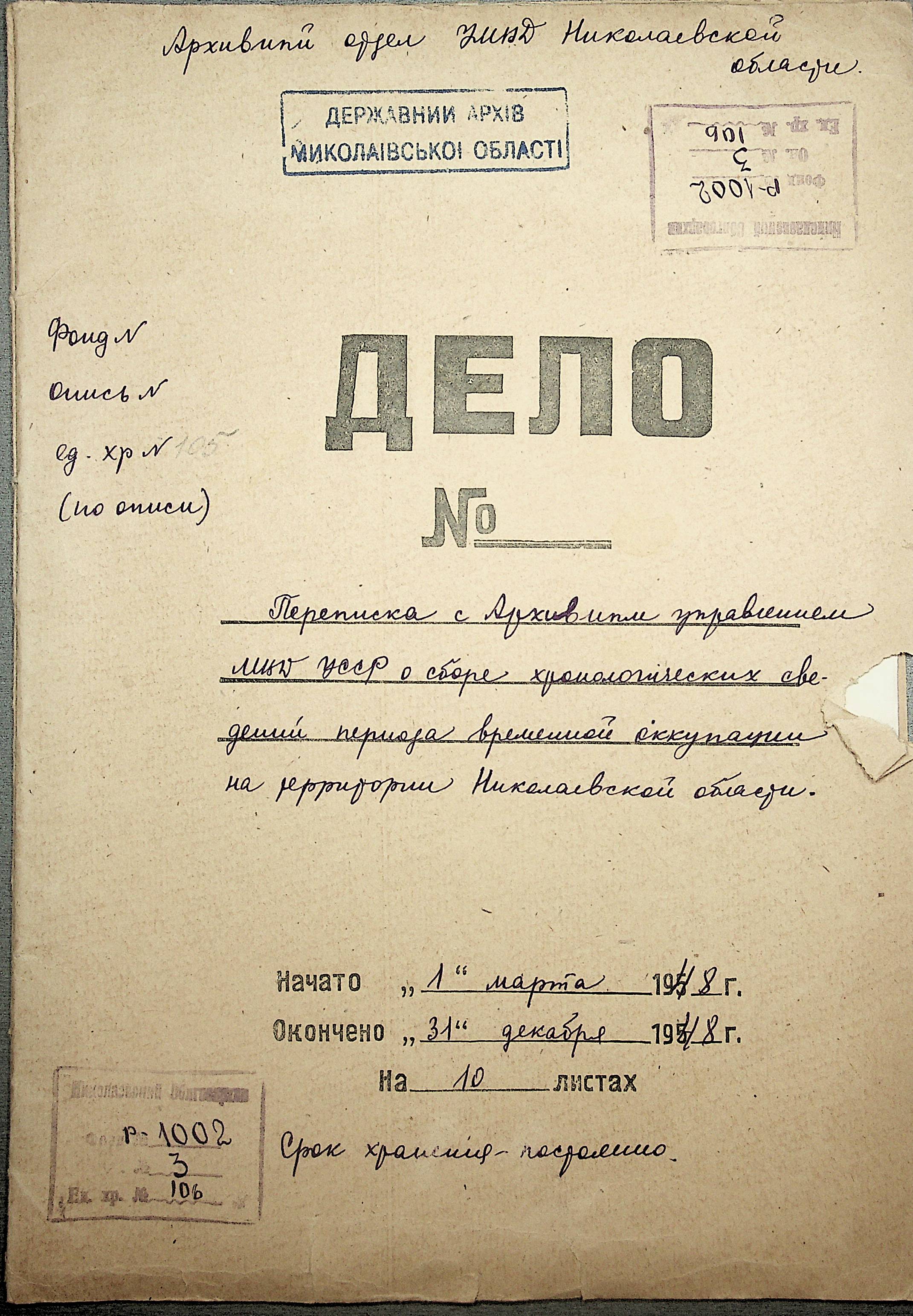 Фонд Р-1002 / Опис 3 / Справа 106