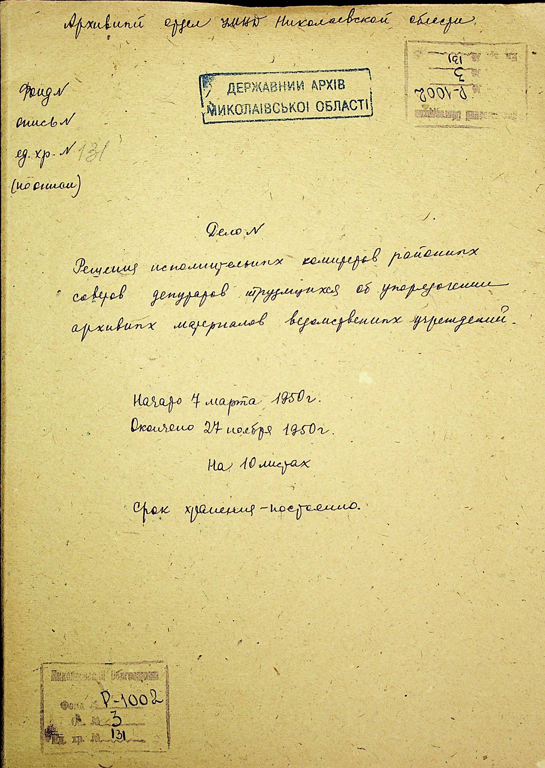 Фонд Р-1002 / Опис 3 / Справа 131
