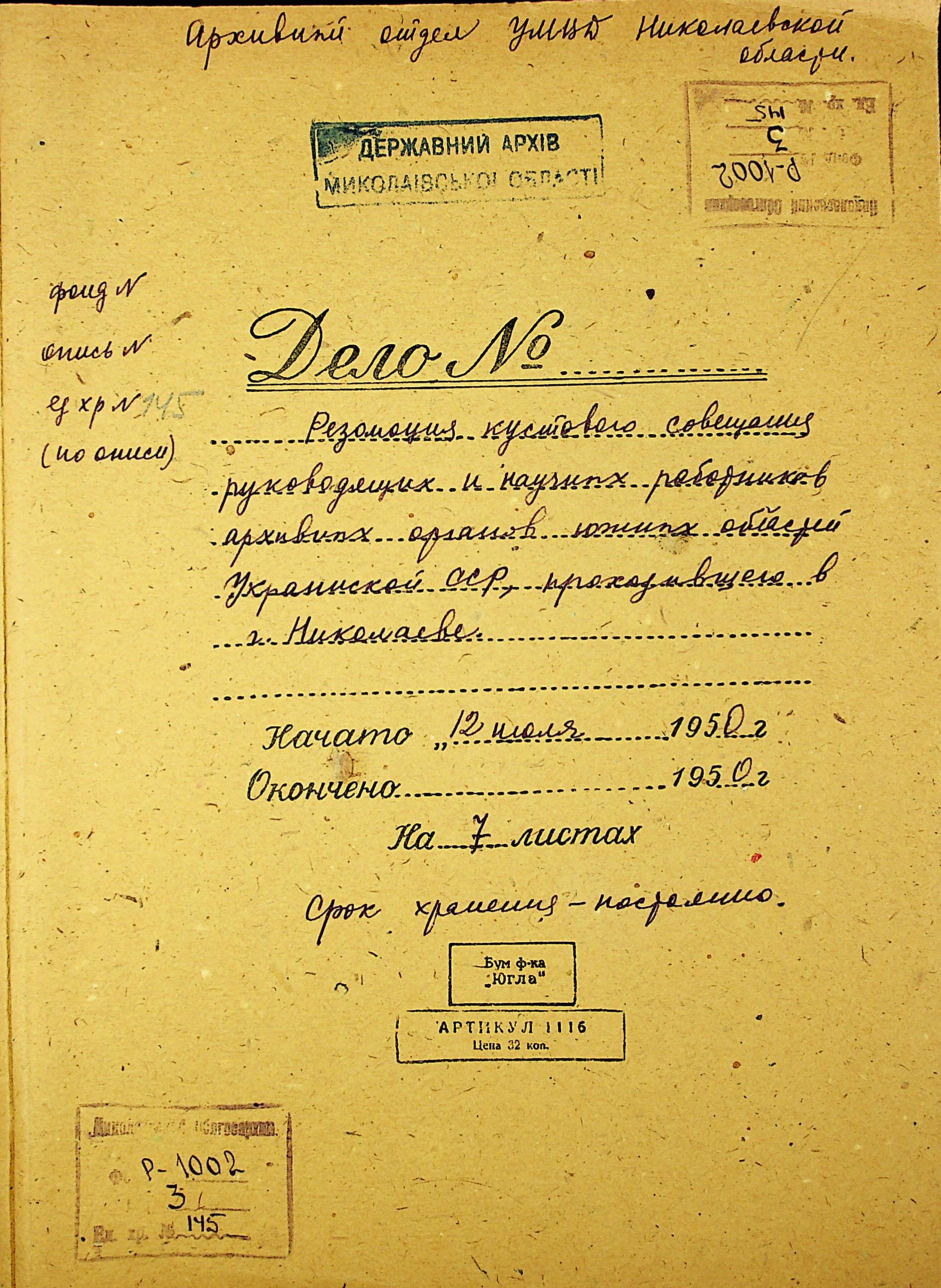 Фонд Р-1002 / Опис 3 / Справа 145