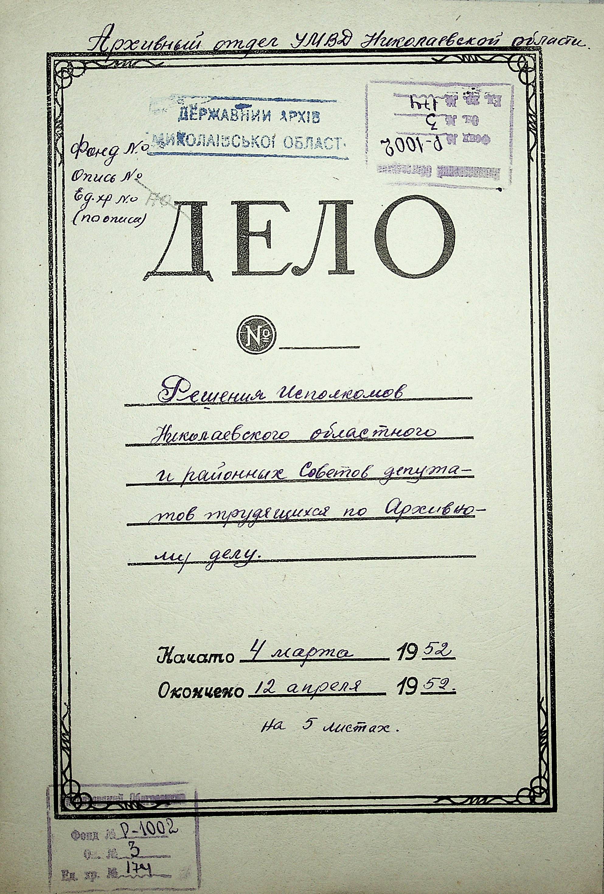 Фонд Р-1002 / Опис 3 / Справа 174