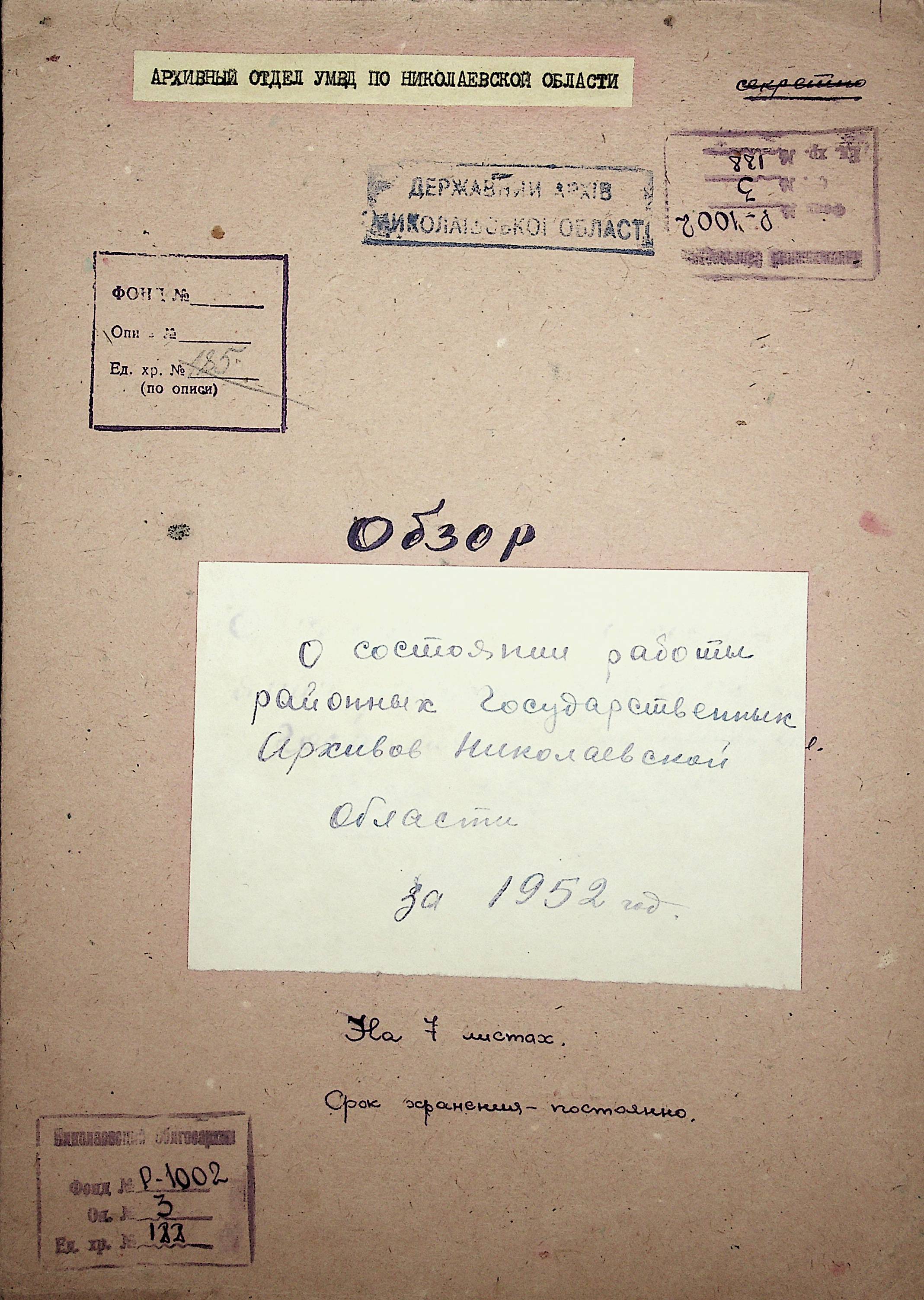 Фонд Р-1002 / Опис 3 / Справа 188
