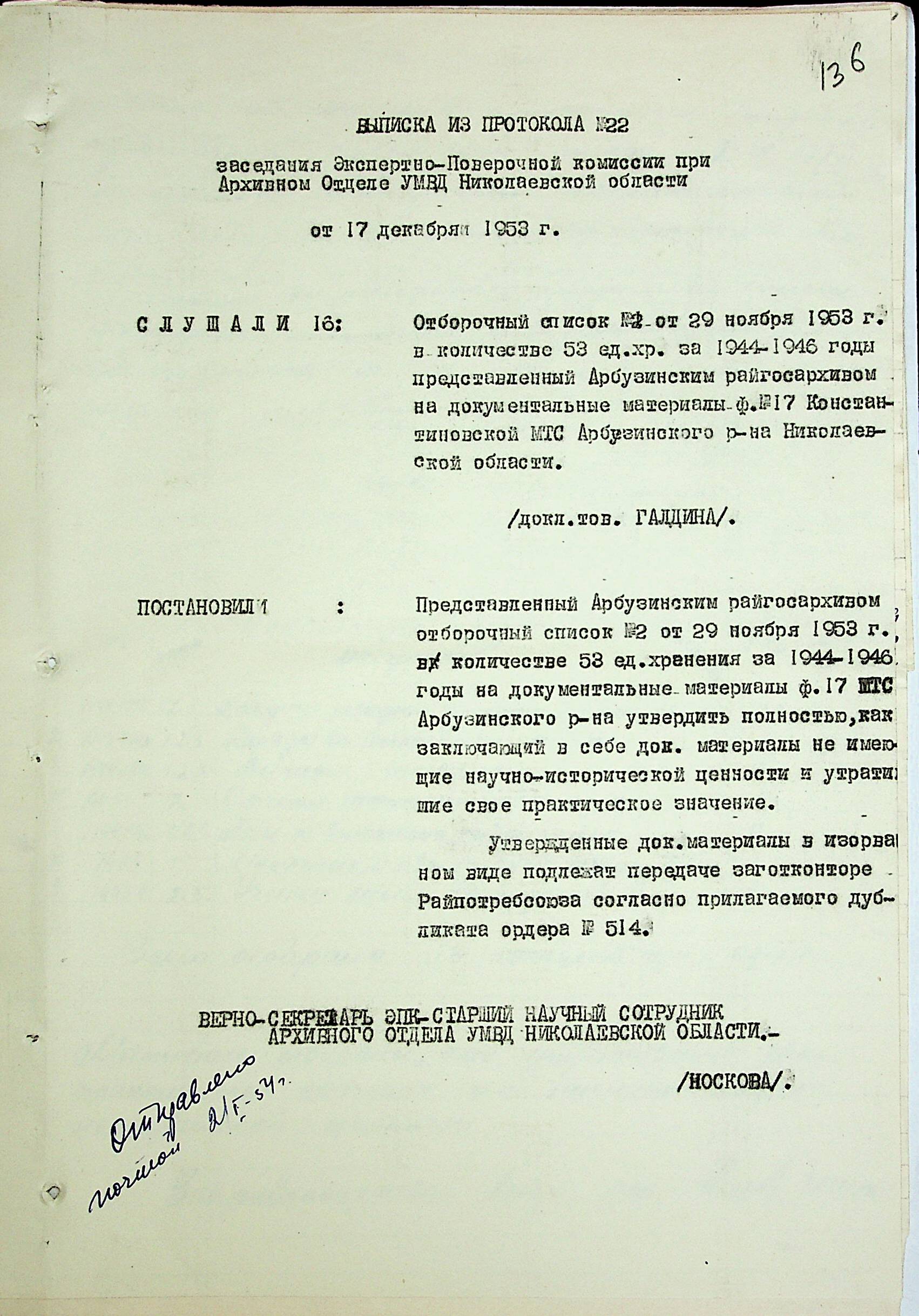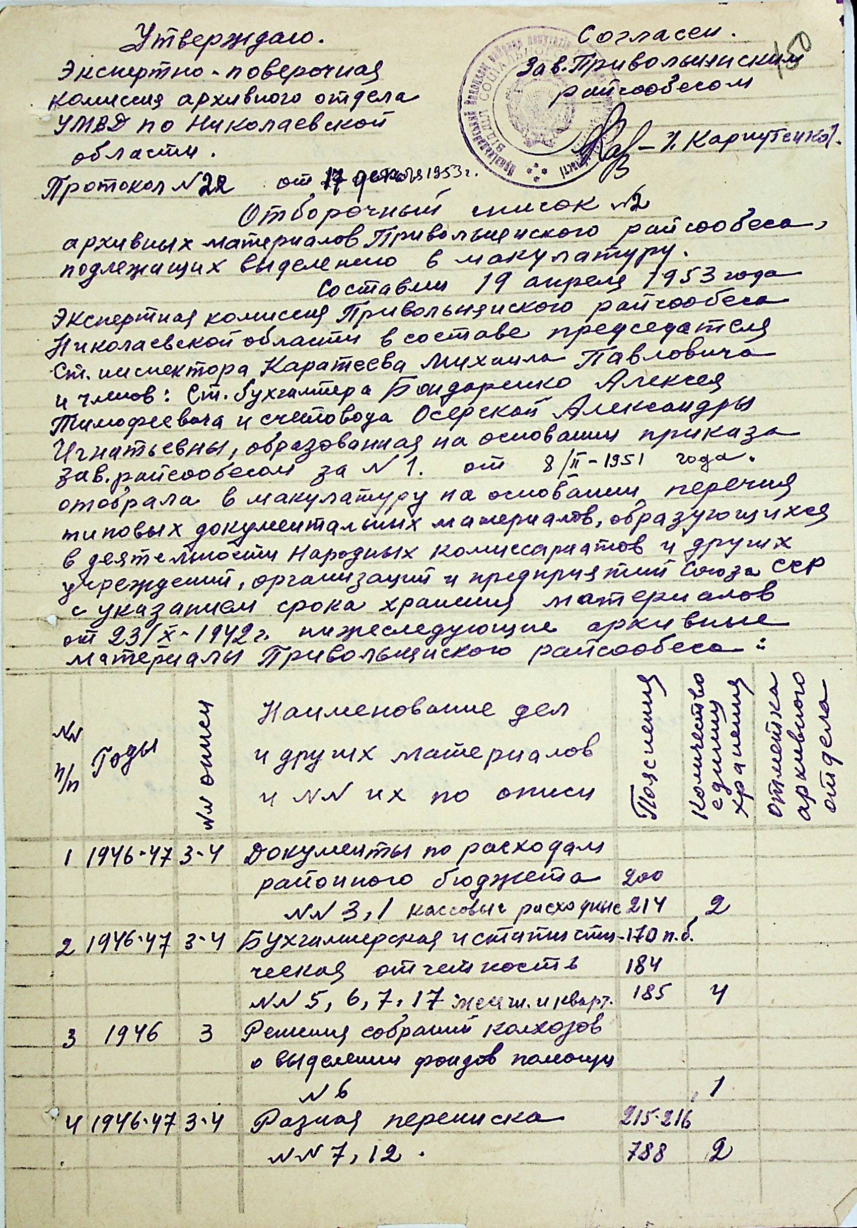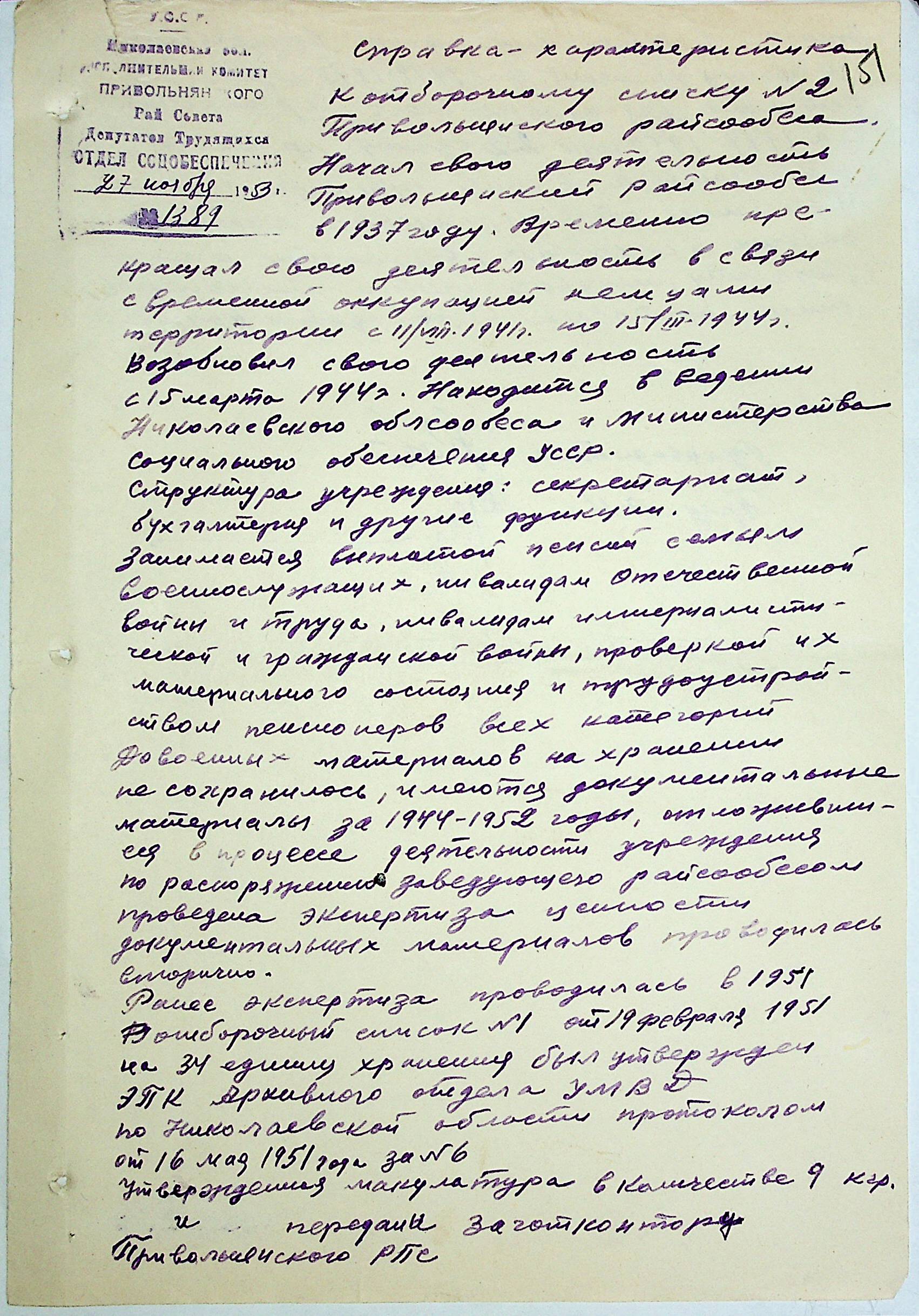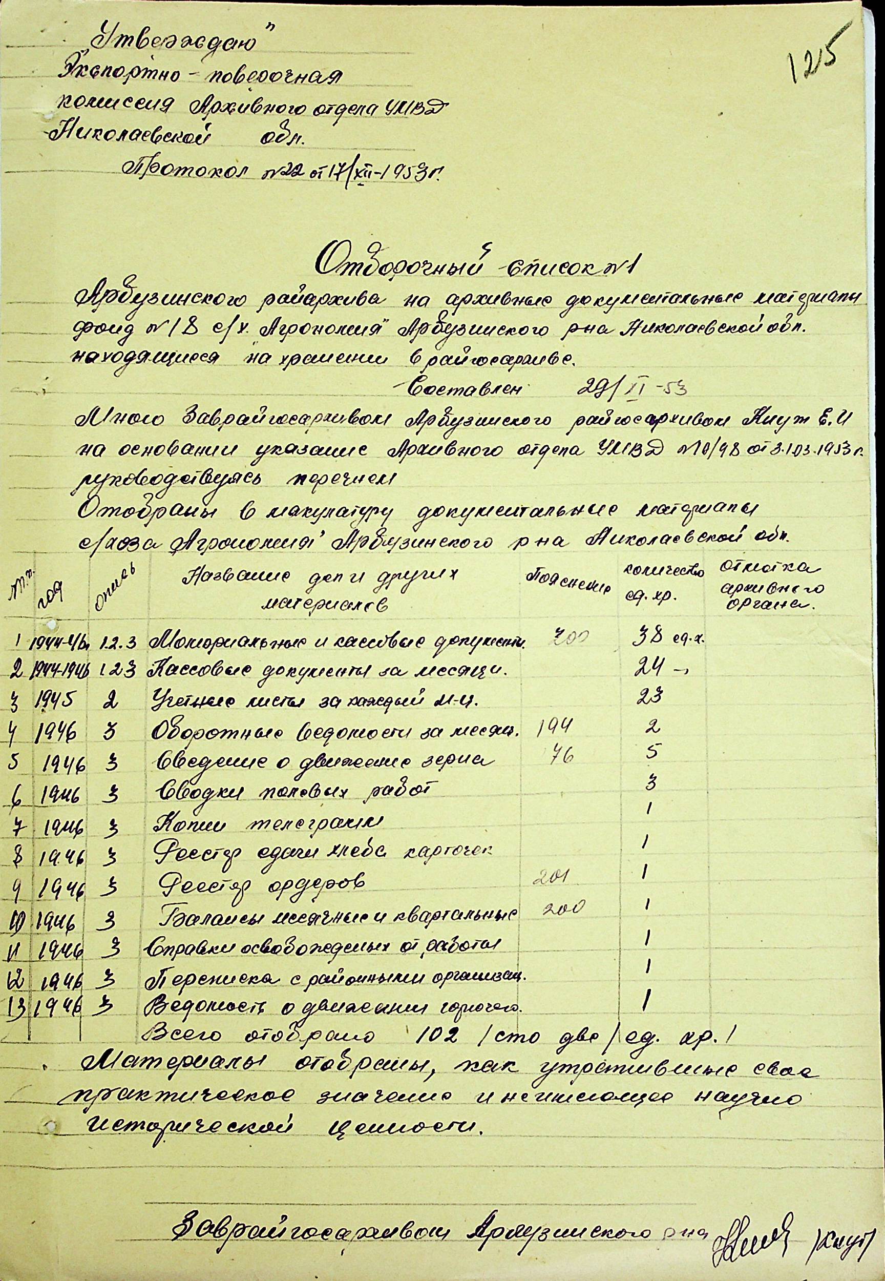 ◦ ◦ Фонд № Р-1002 “Архівний відділ управління виконкому Миколаївської обласної Ради народних депутатів, м. Миколаїв”
