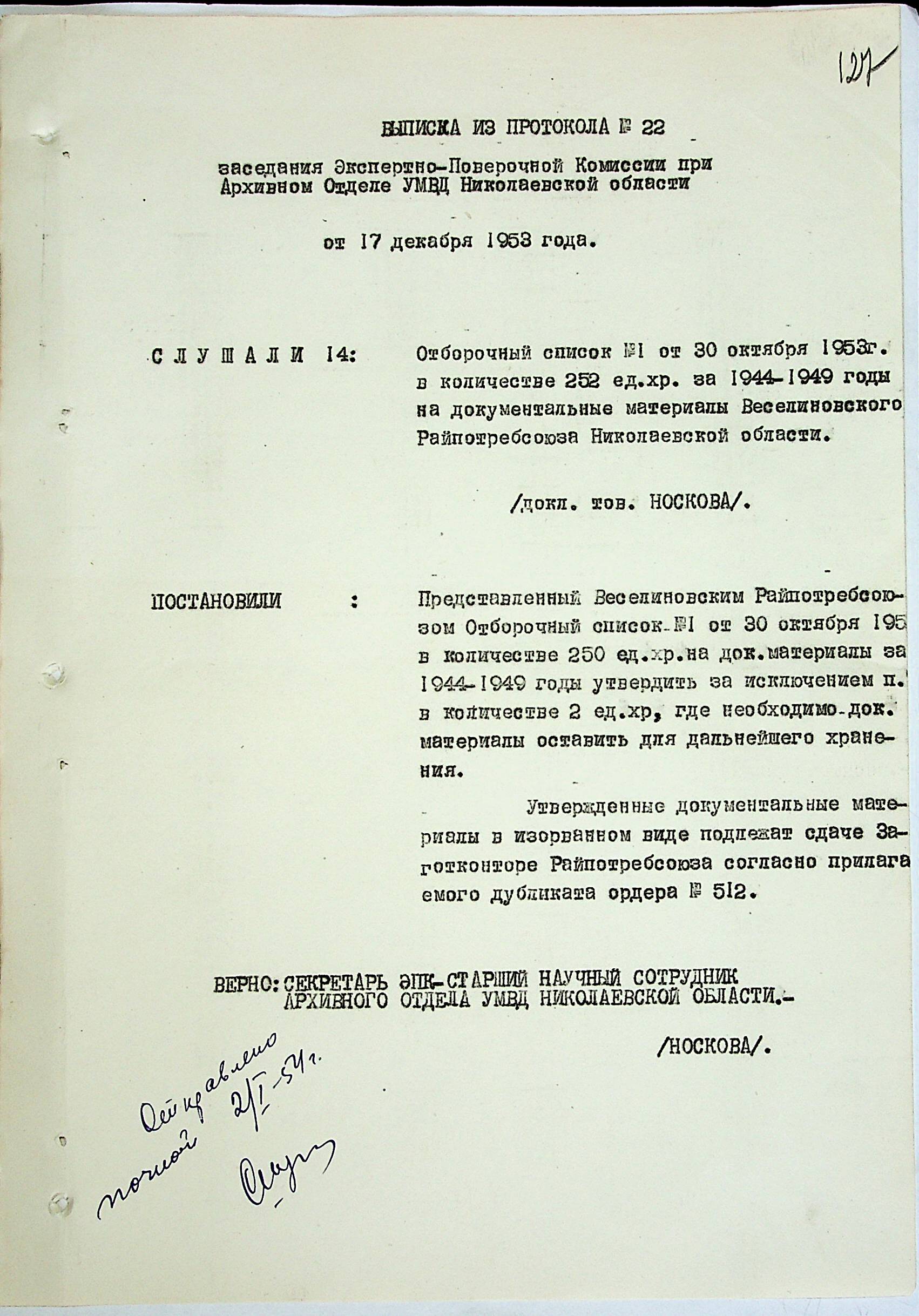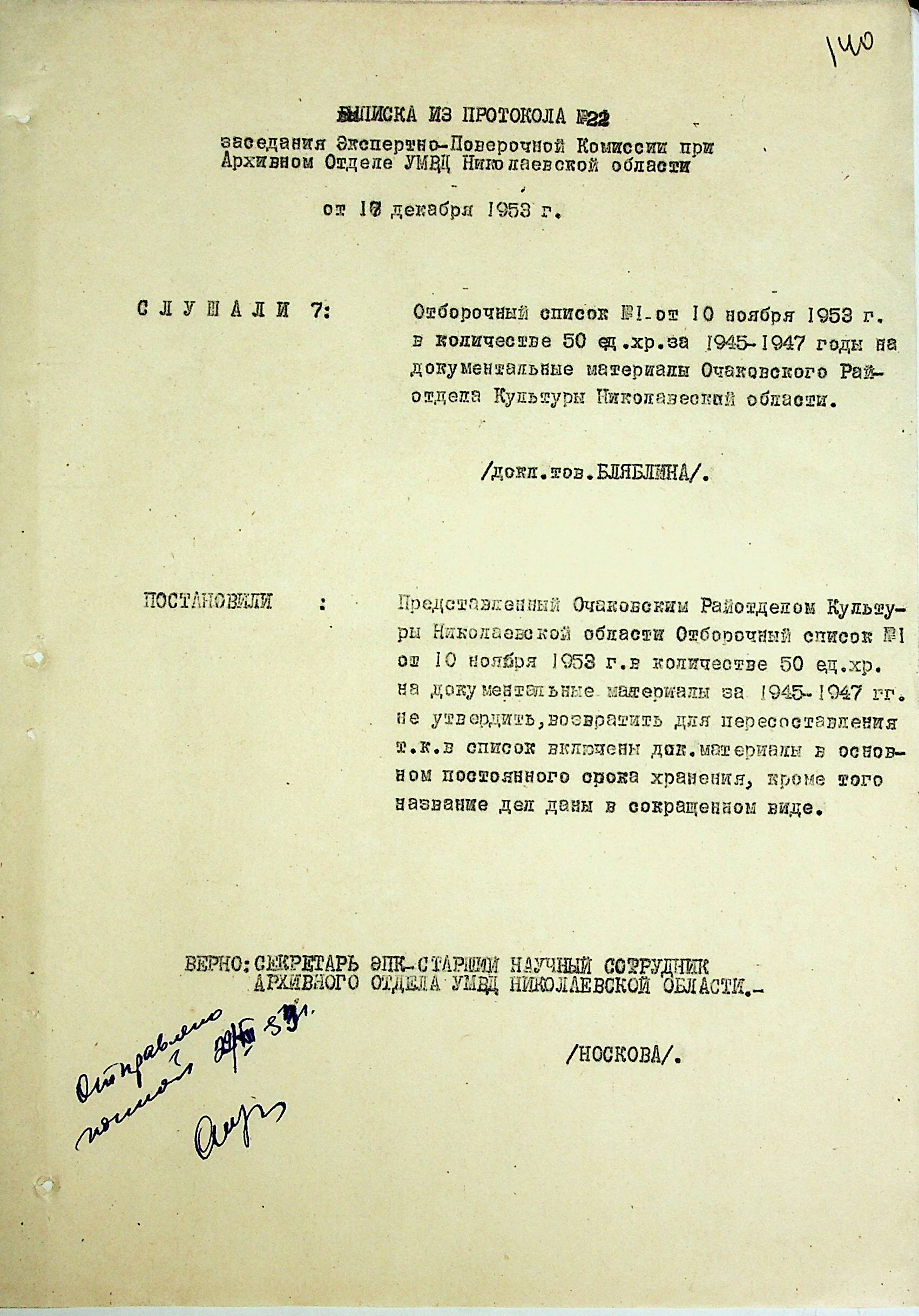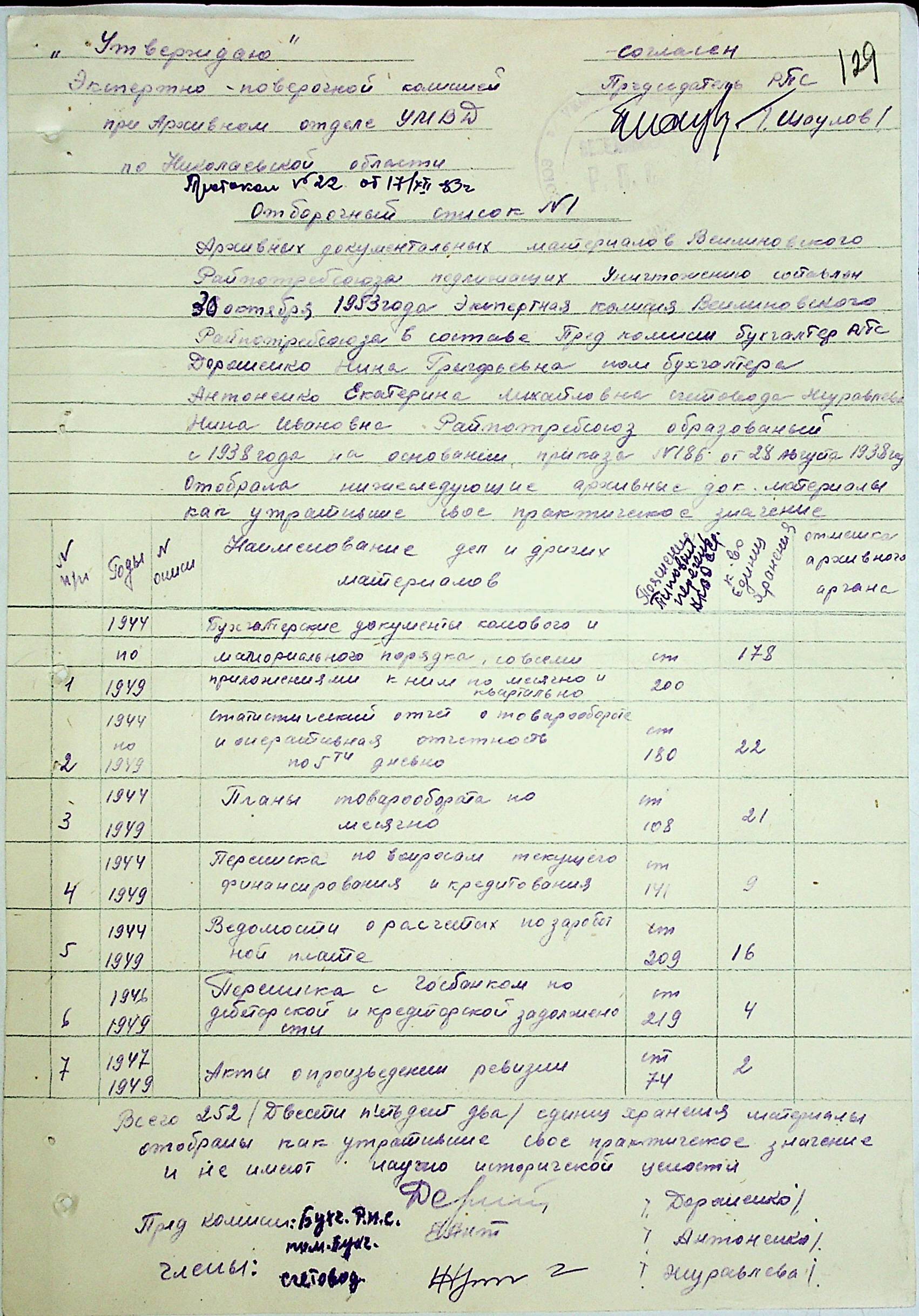 • • • • Справа № 201 “Протоколи засідань експертно-перевіряючої комісії Архівного відділу Управління МВС №20-24 та відбіркові списки до них”