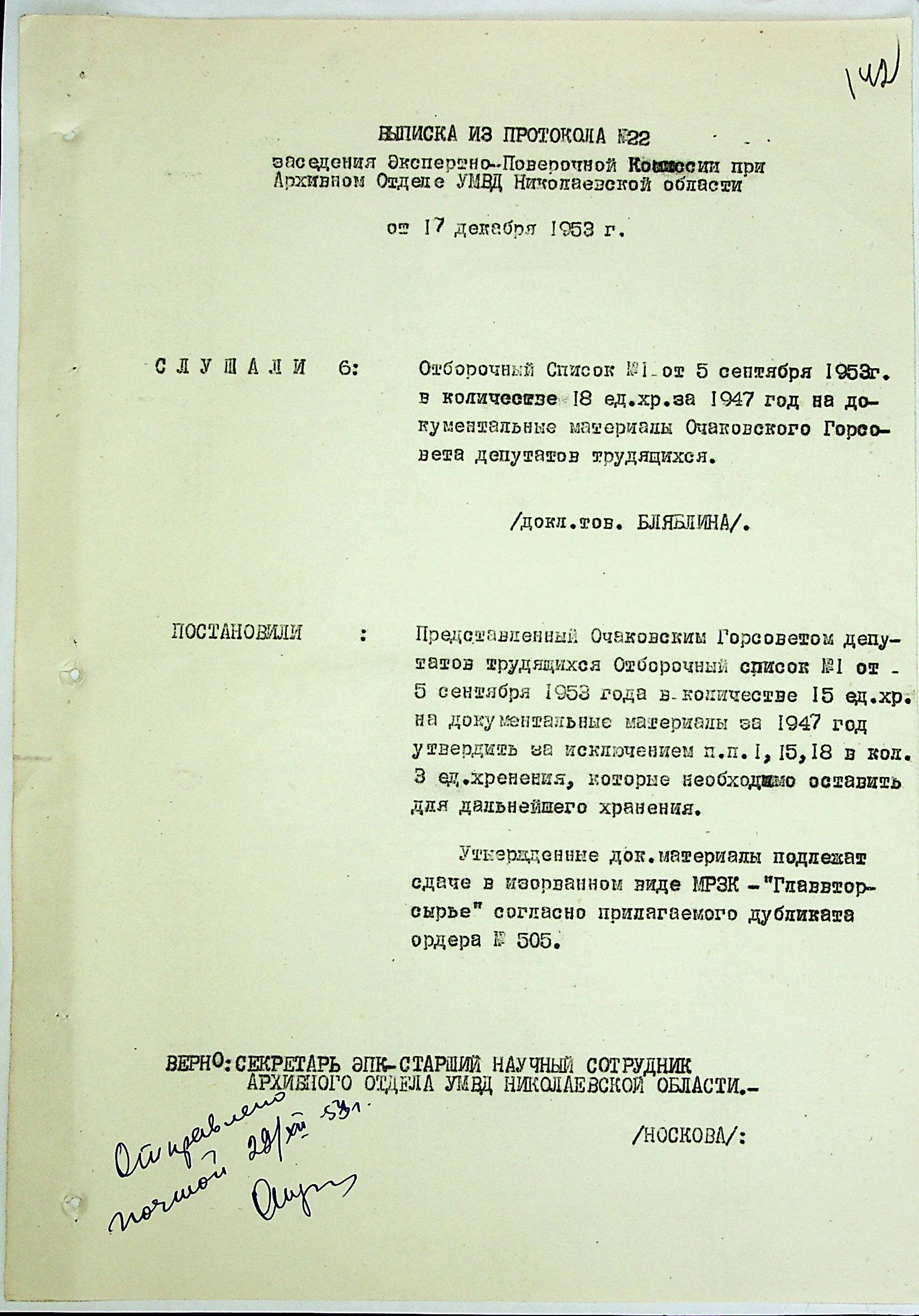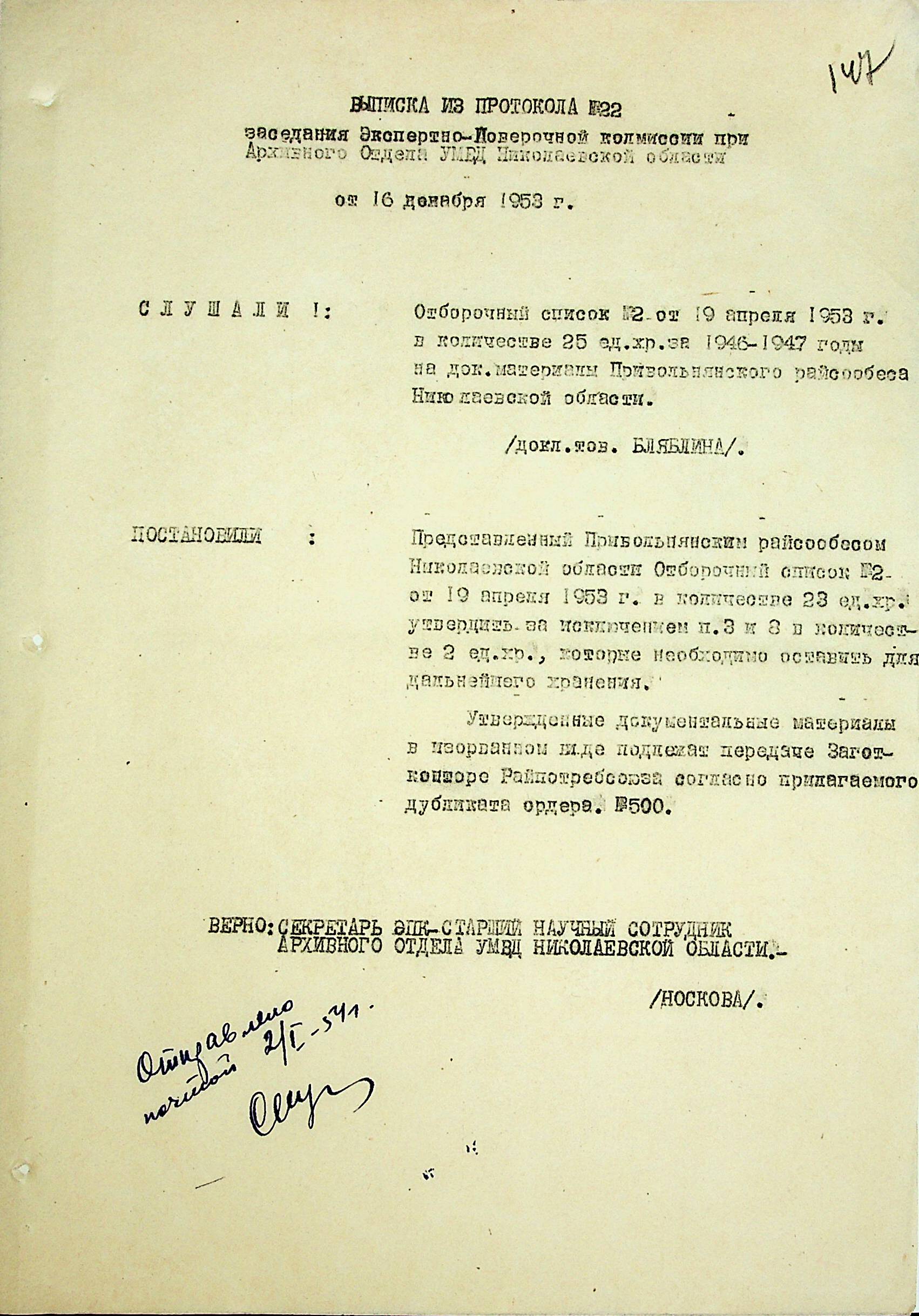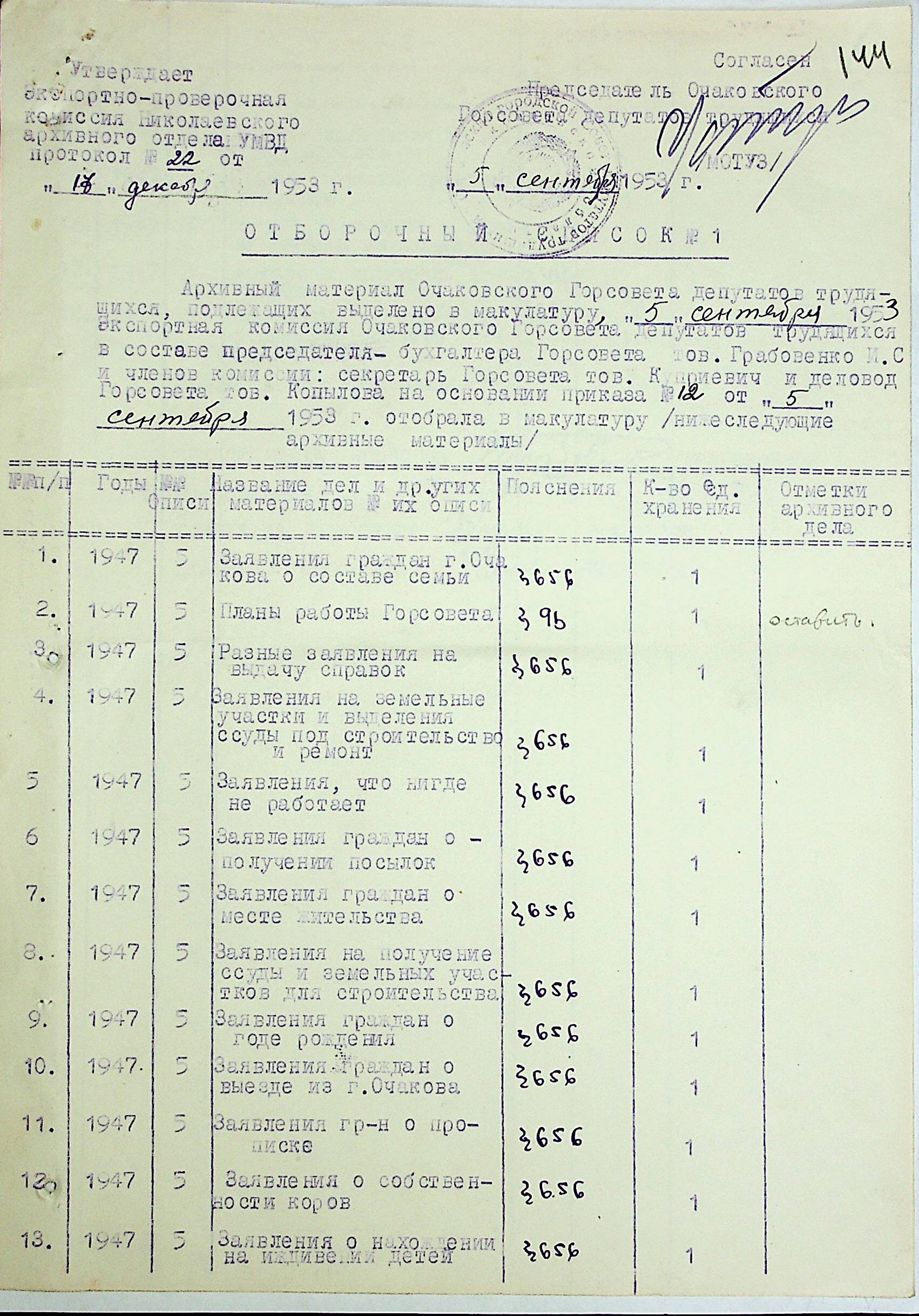 • • • • Справа № 201 “Протоколи засідань експертно-перевіряючої комісії Архівного відділу Управління МВС №20-24 та відбіркові списки до них”