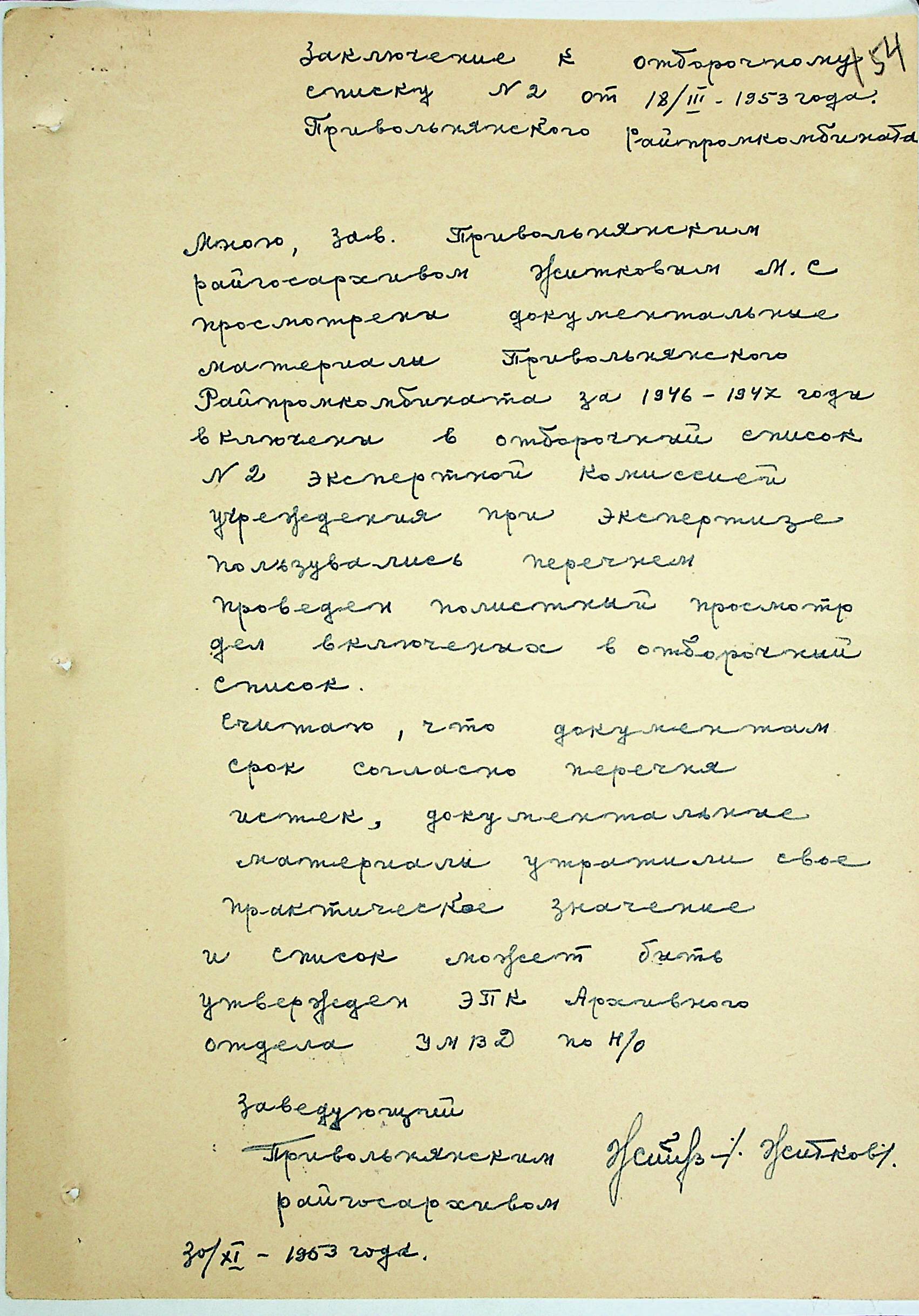 ◦ ◦ ◦ Опис № 3 справ постійного зберігання за 1943–1953 роки