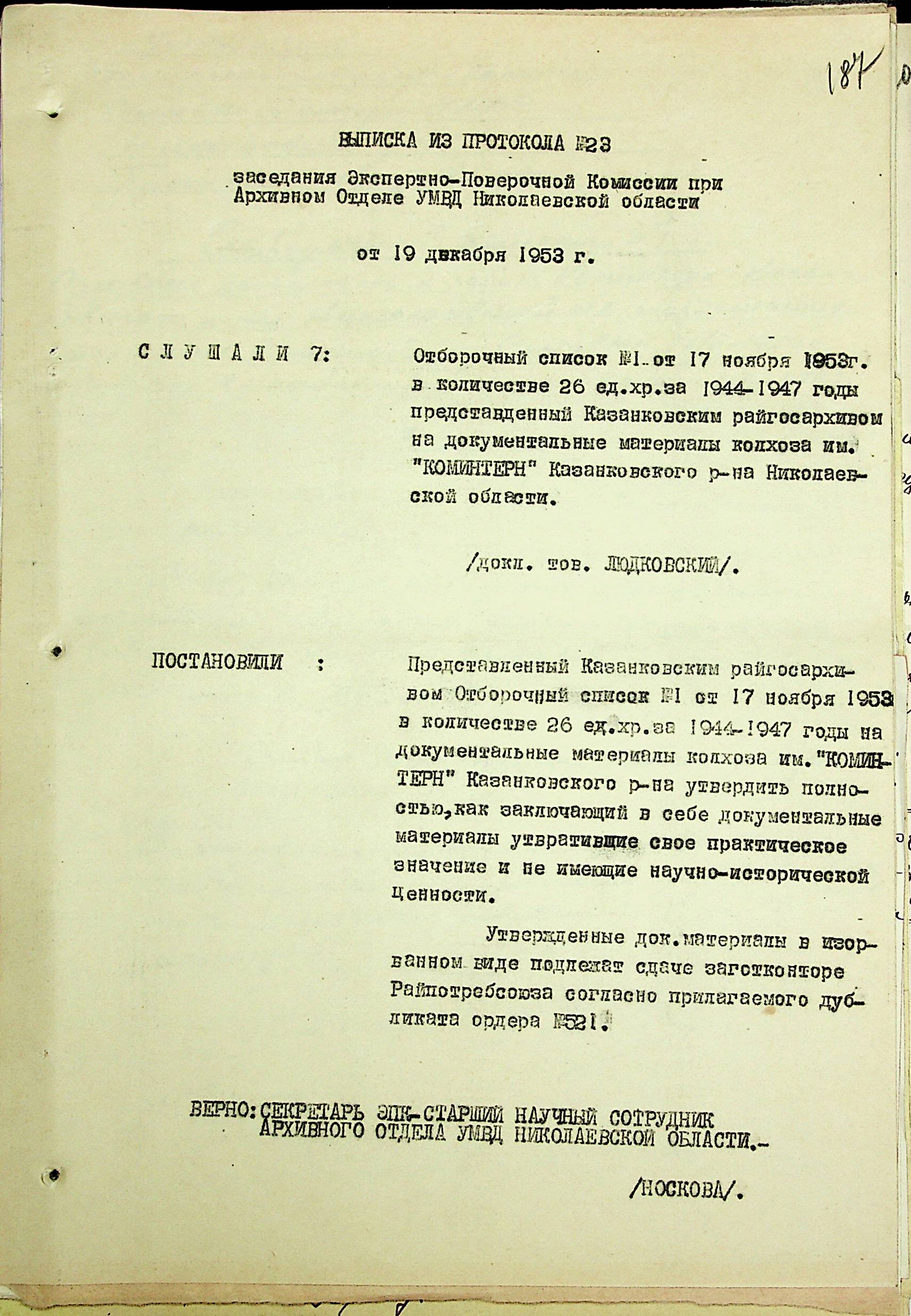 • • • • Справа № 201 “Протоколи засідань експертно-перевіряючої комісії Архівного відділу Управління МВС №20-24 та відбіркові списки до них”