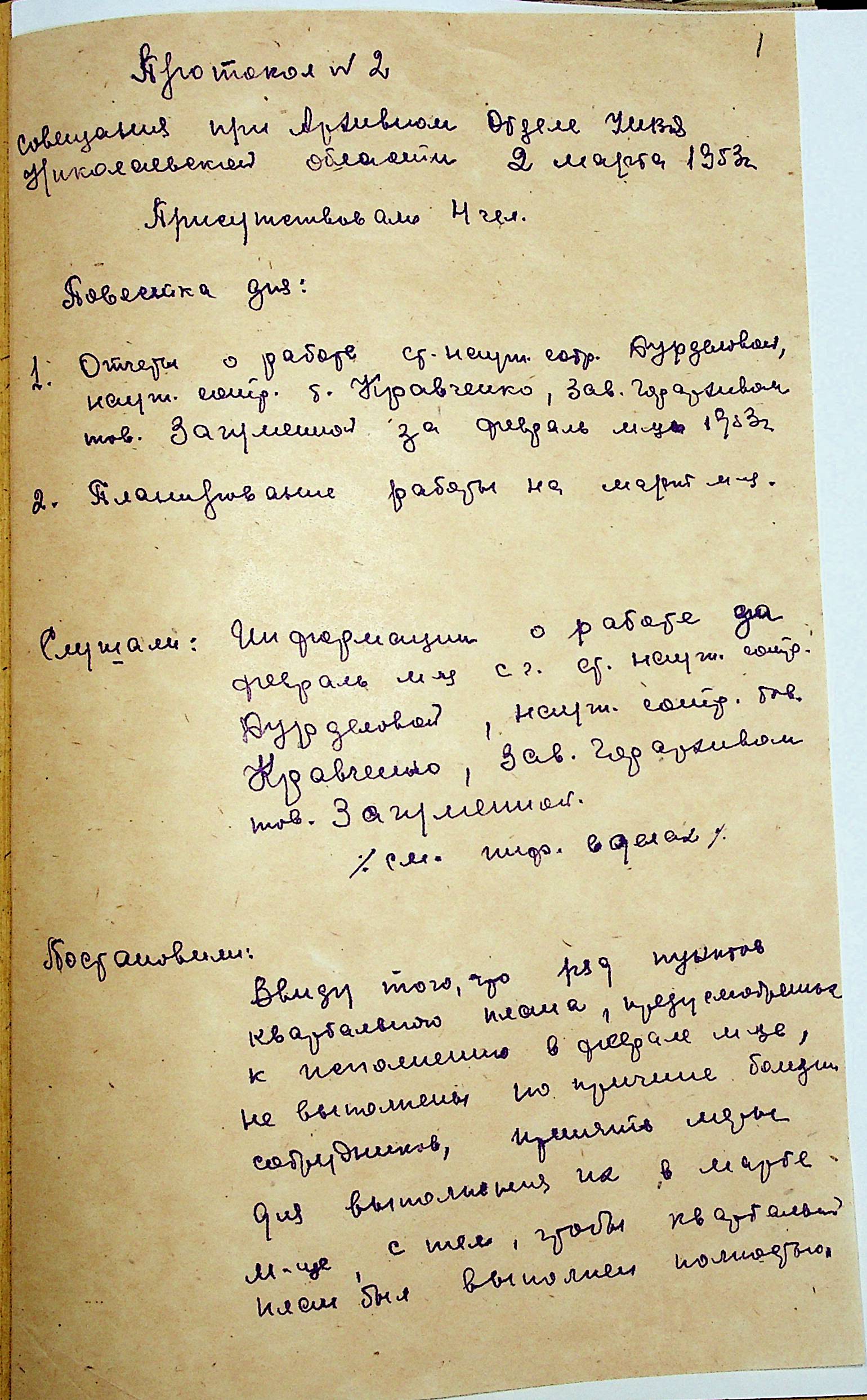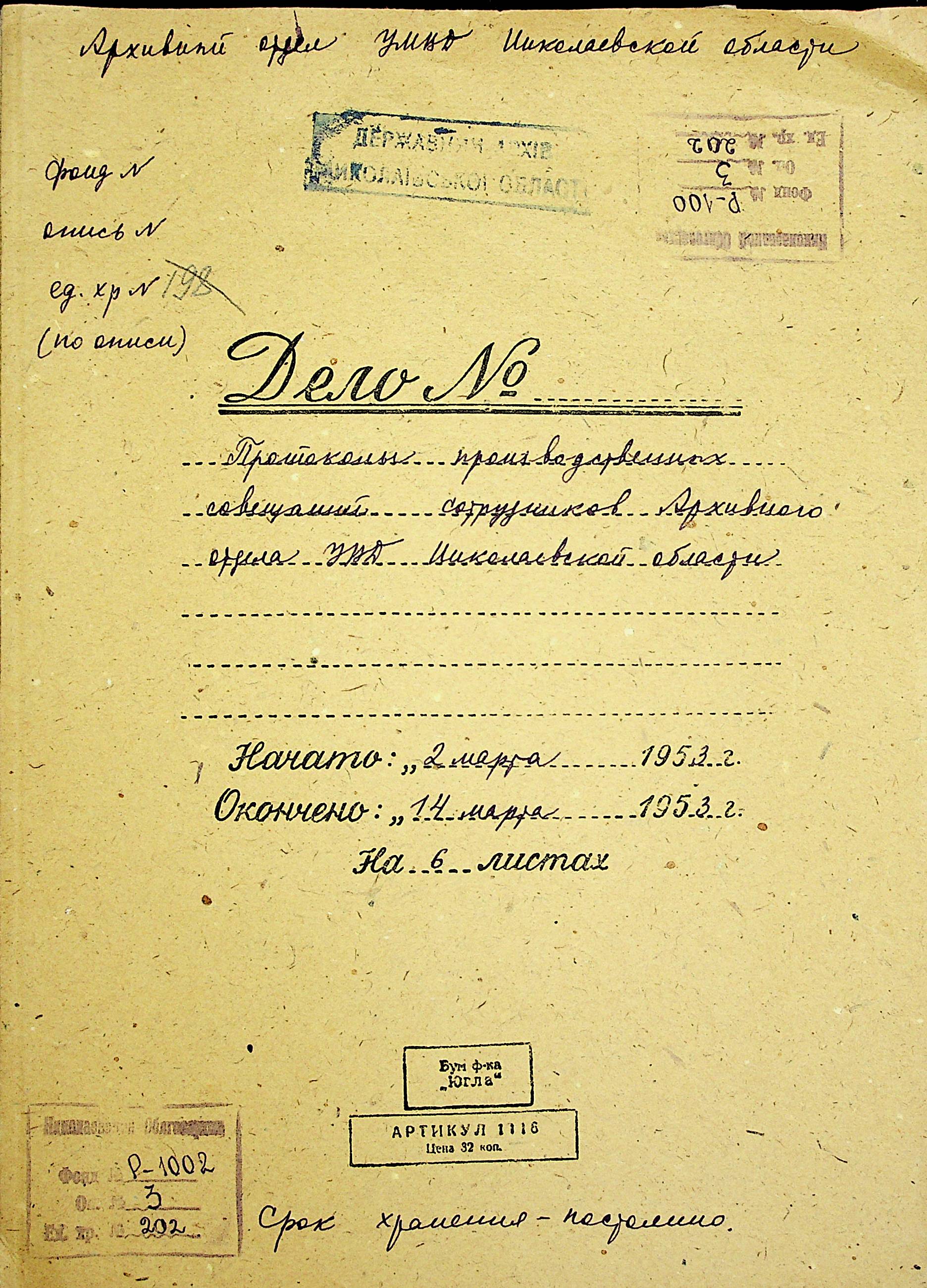 • • • • Справа № 202 “Протоколи виробничих нарад співробітників архівного відділу Управління МВС Миколаївської області”