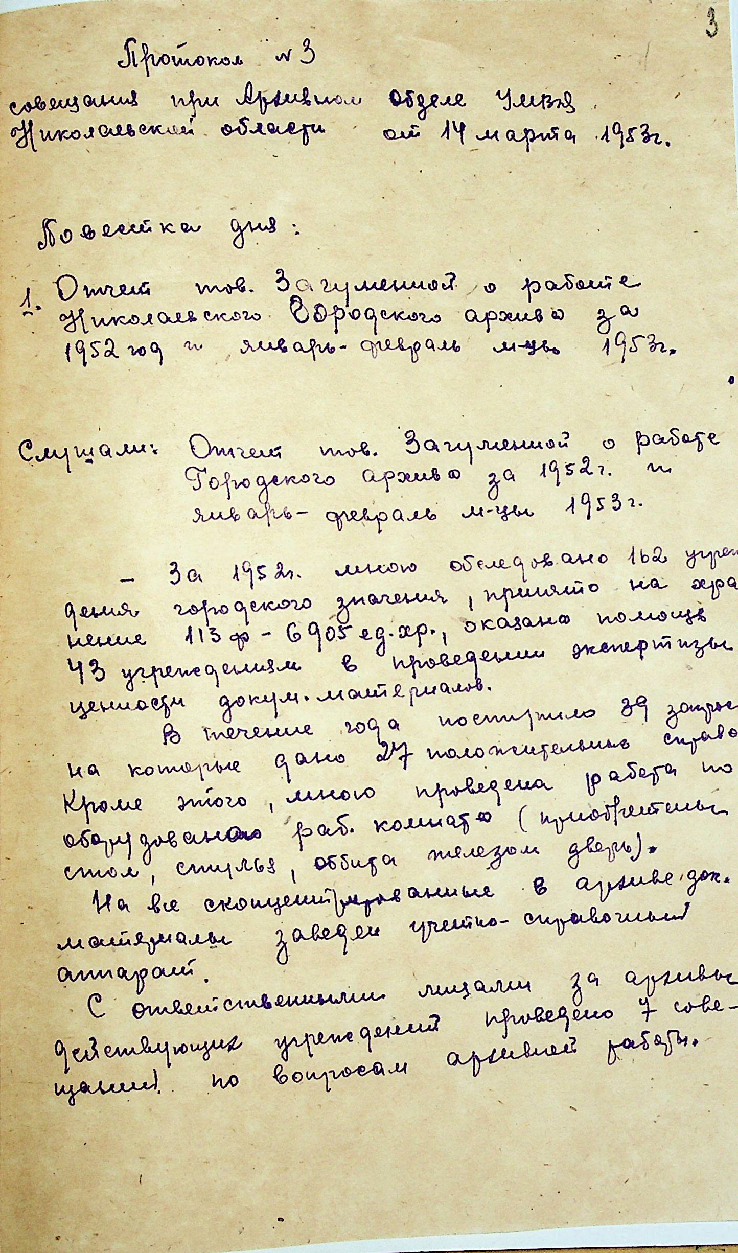 ◦ ◦ ◦ Опис № 3 справ постійного зберігання за 1943–1953 роки