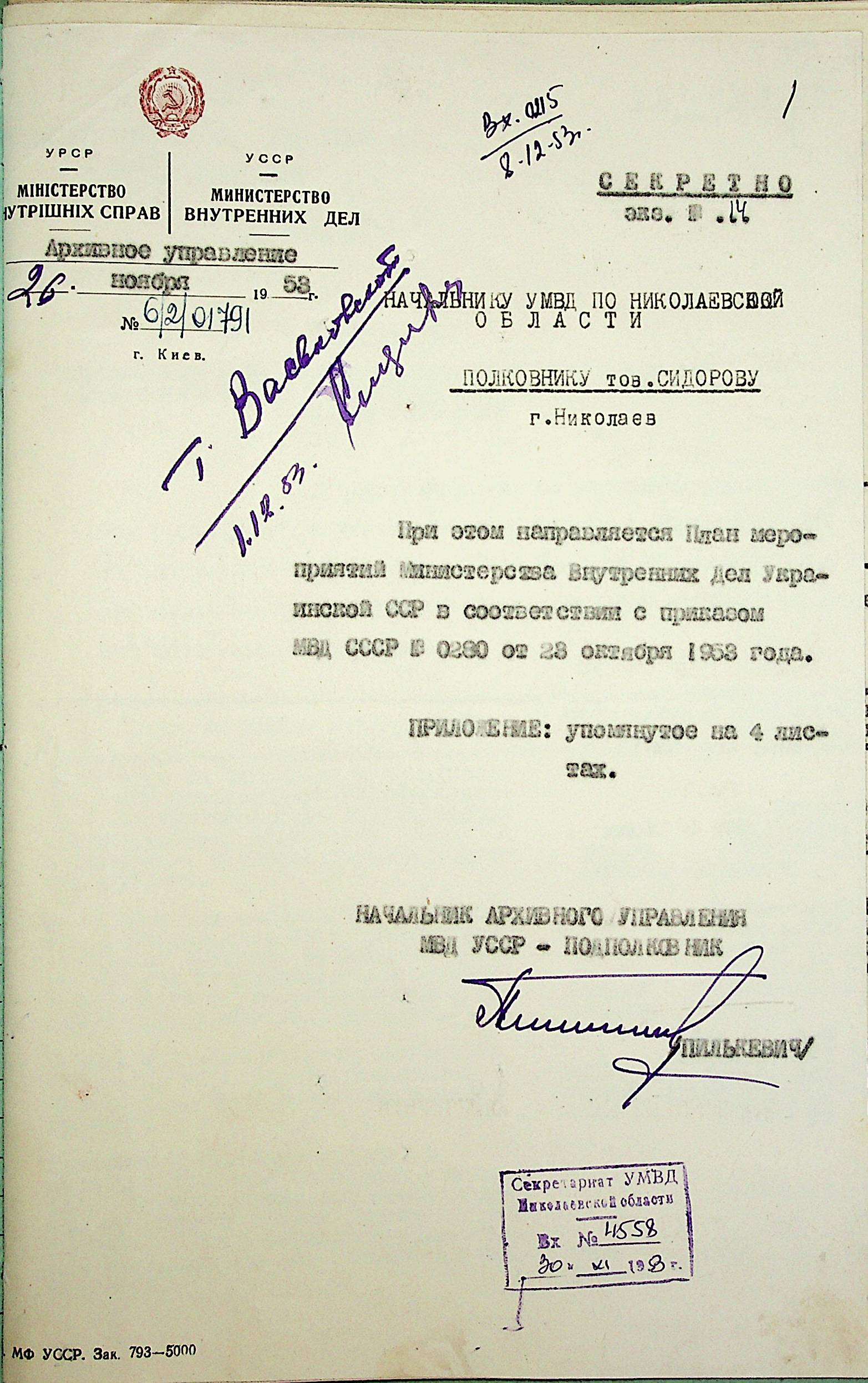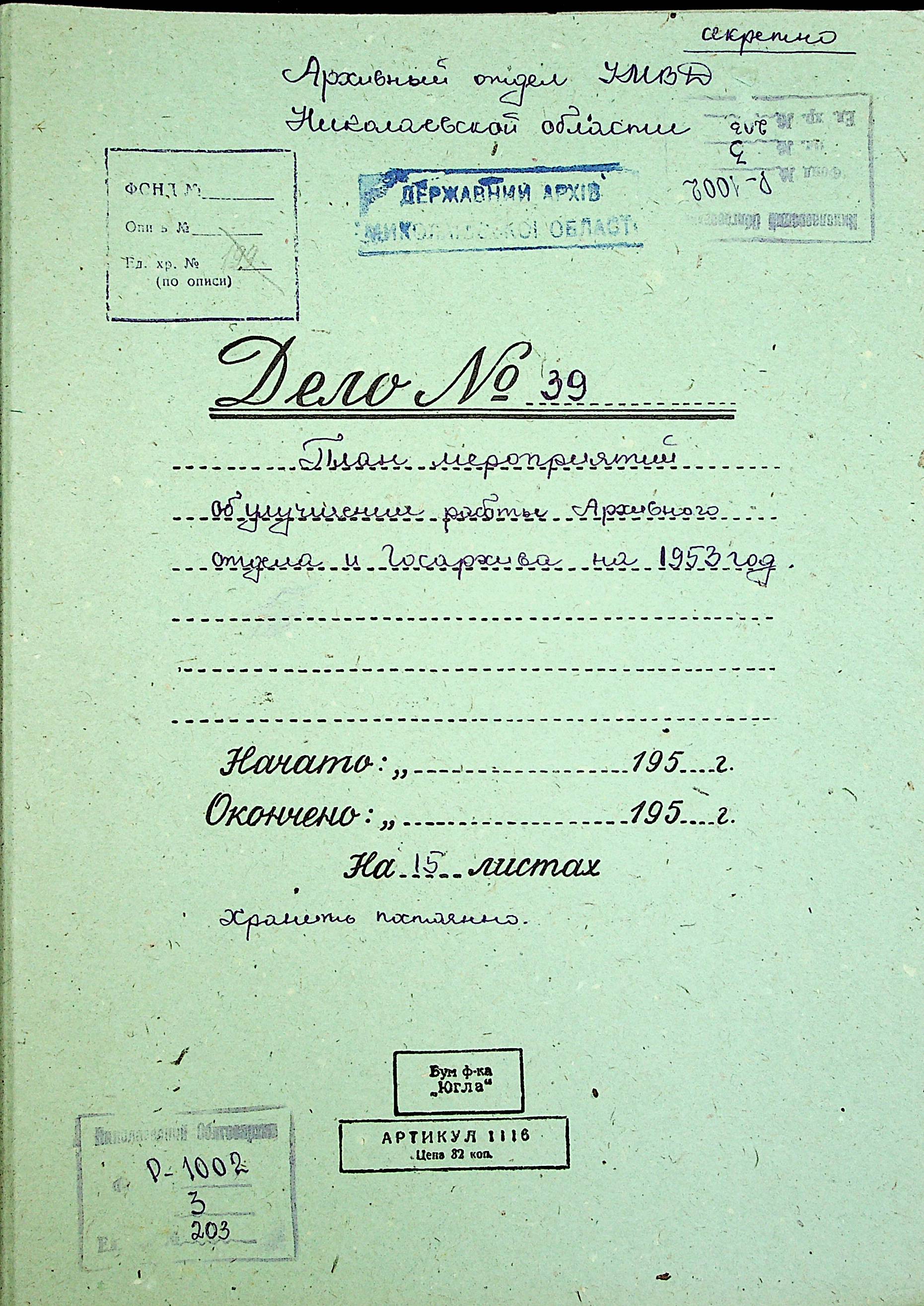 ◦ ◦ Фонд № Р-1002 “Архівний відділ управління виконкому Миколаївської обласної Ради народних депутатів, м. Миколаїв”
