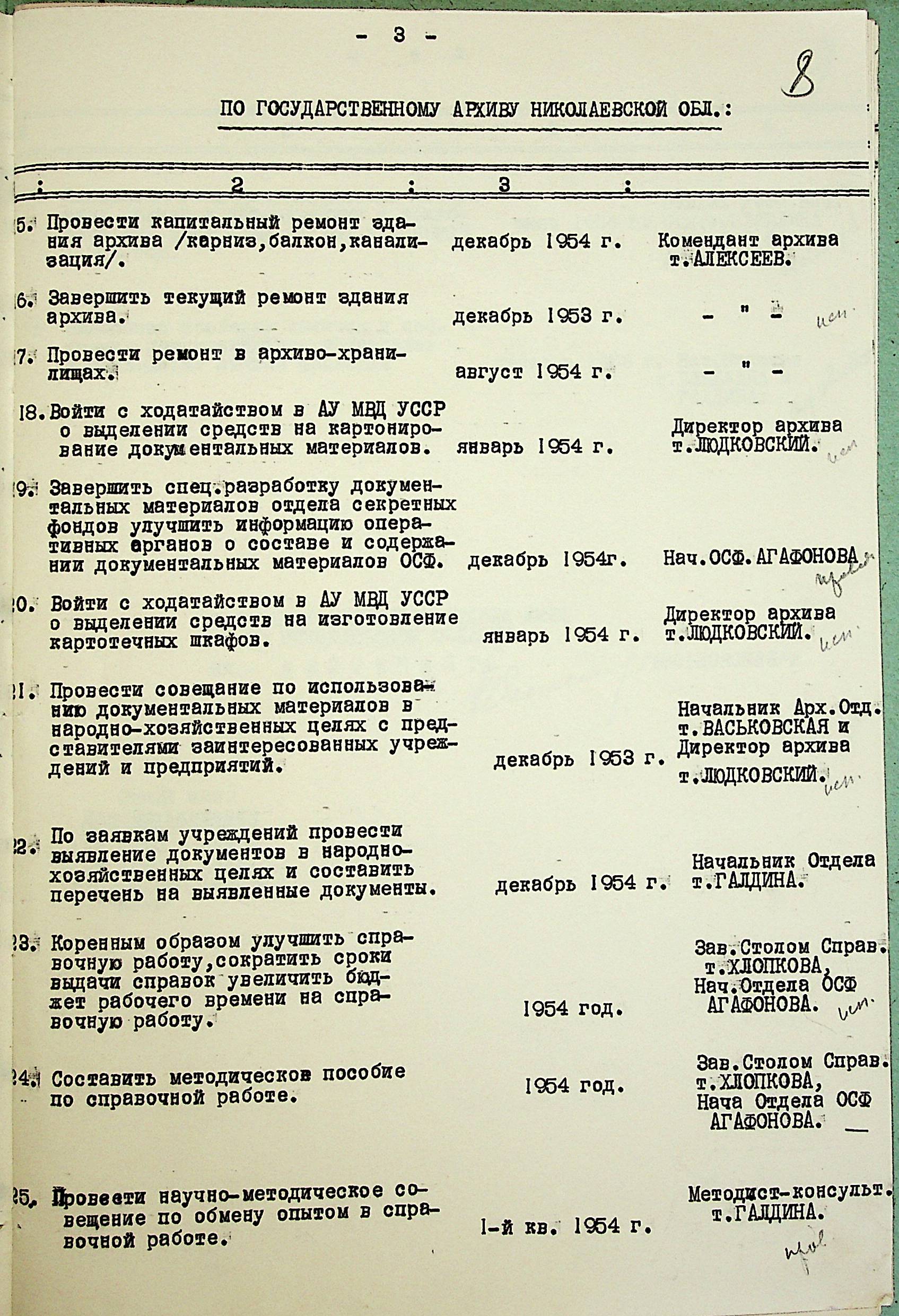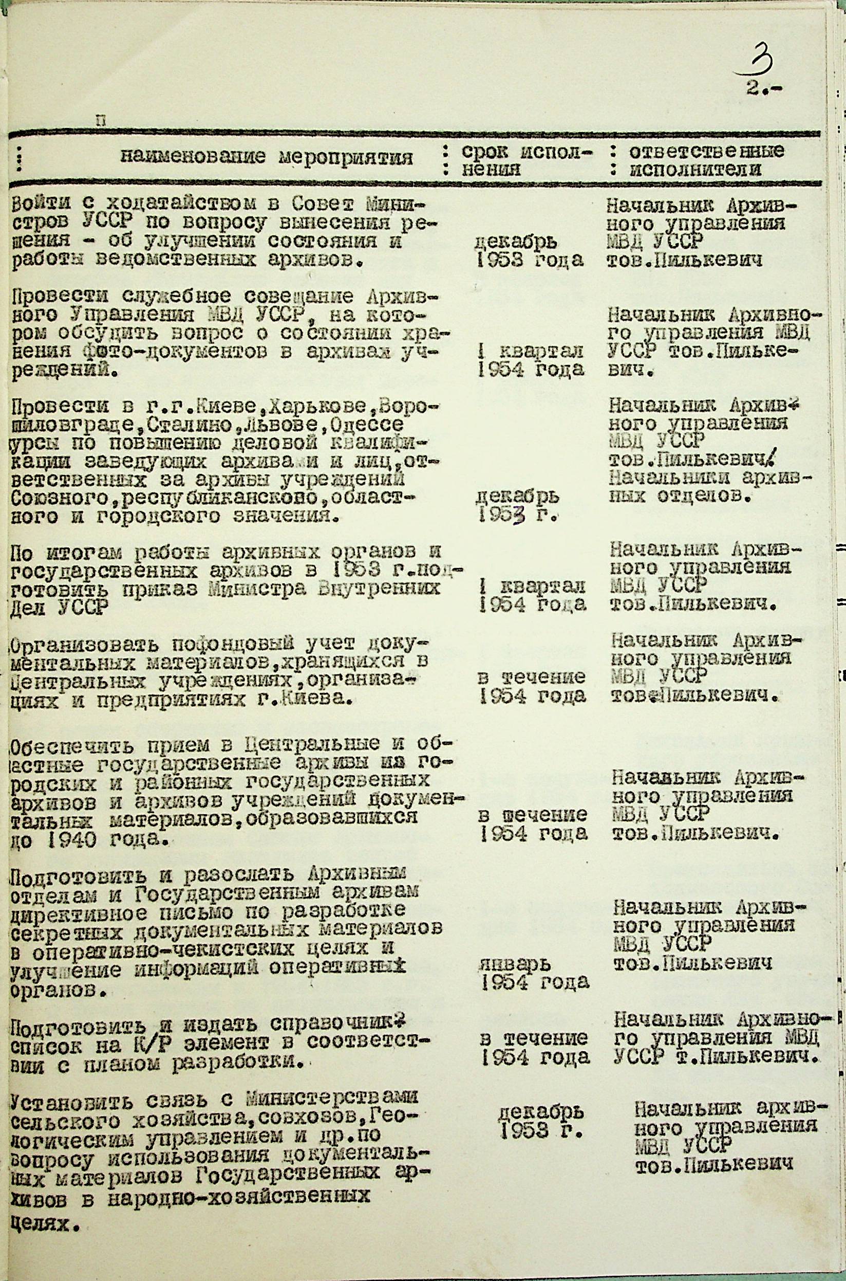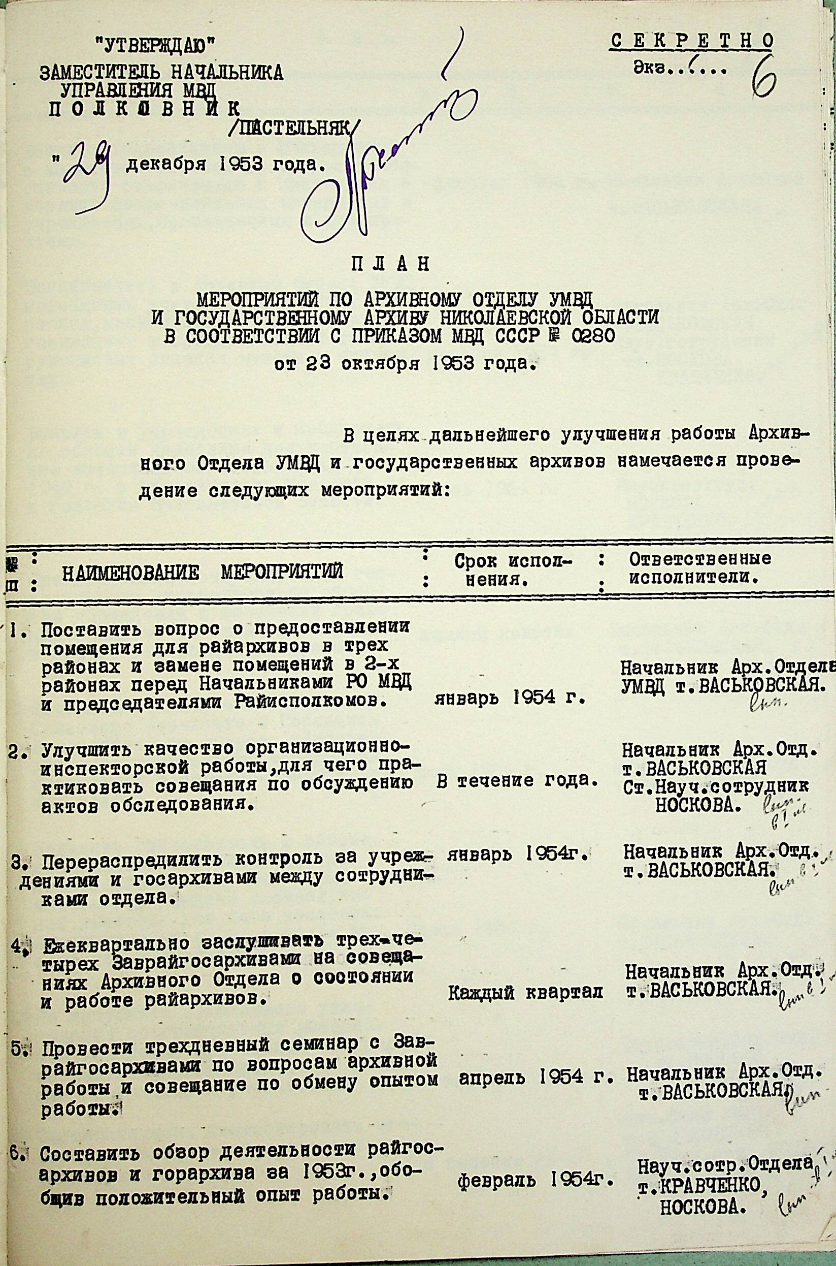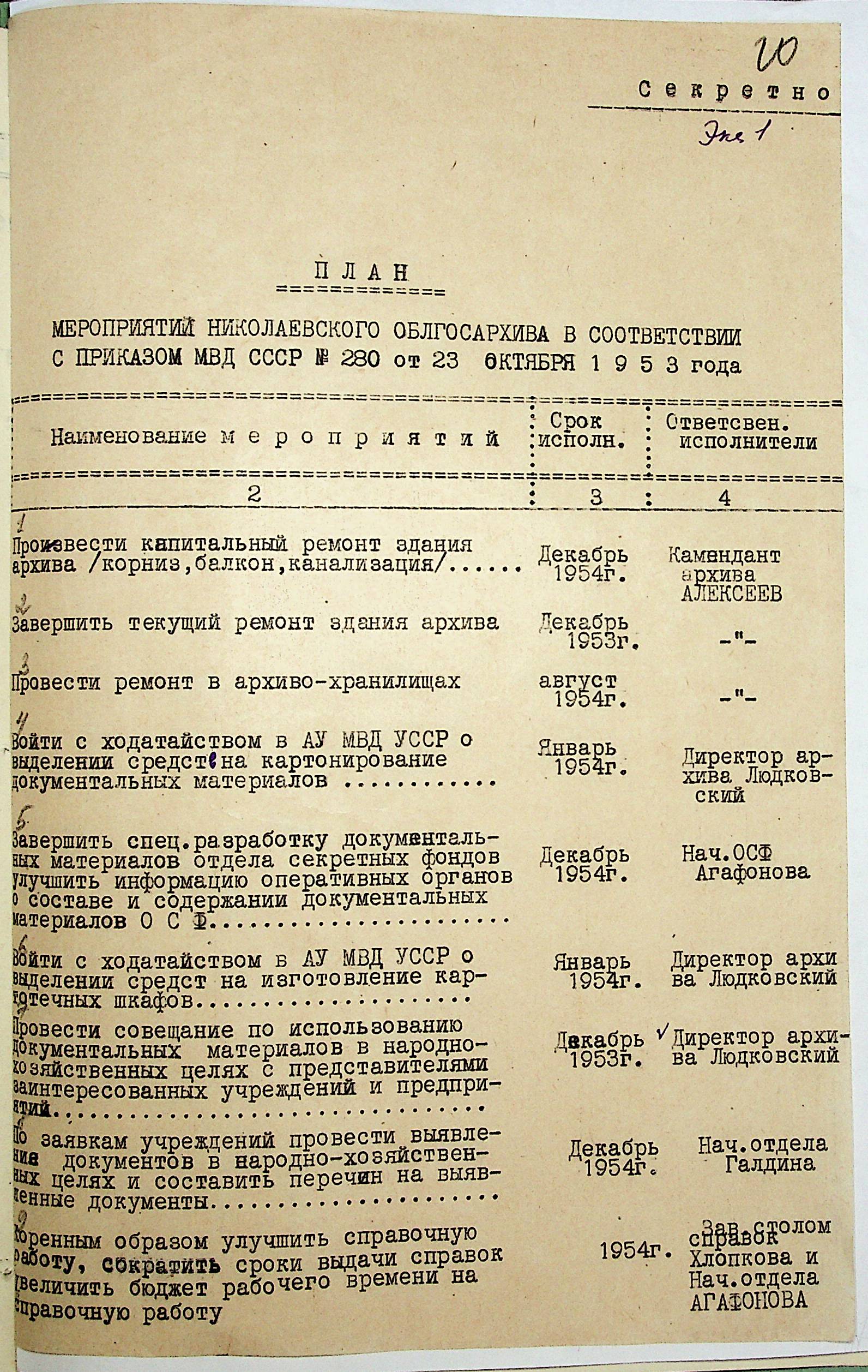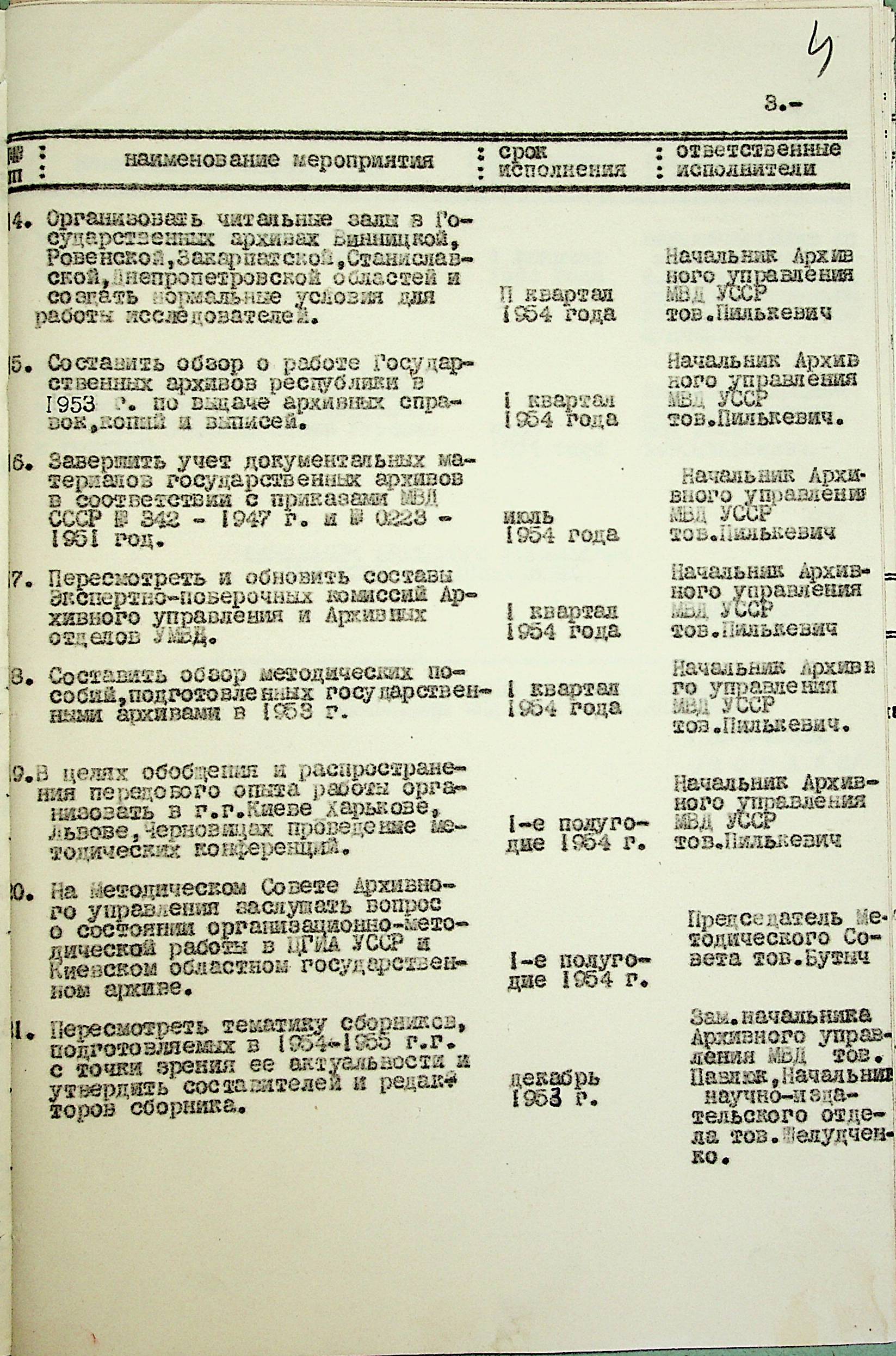 • • • • Справа № 203 “План заходів щодо поліпшення роботи Архівного відділу та державного архіву на 1953 р.”