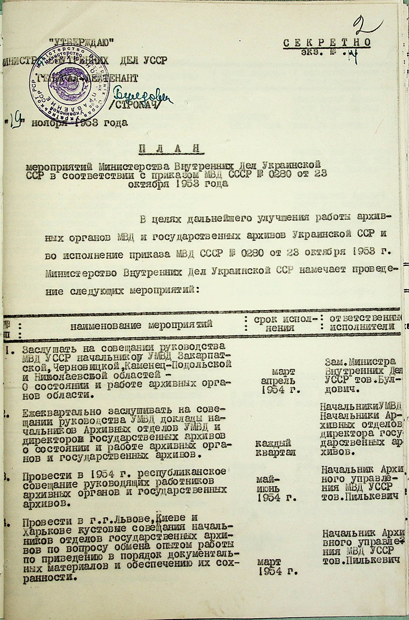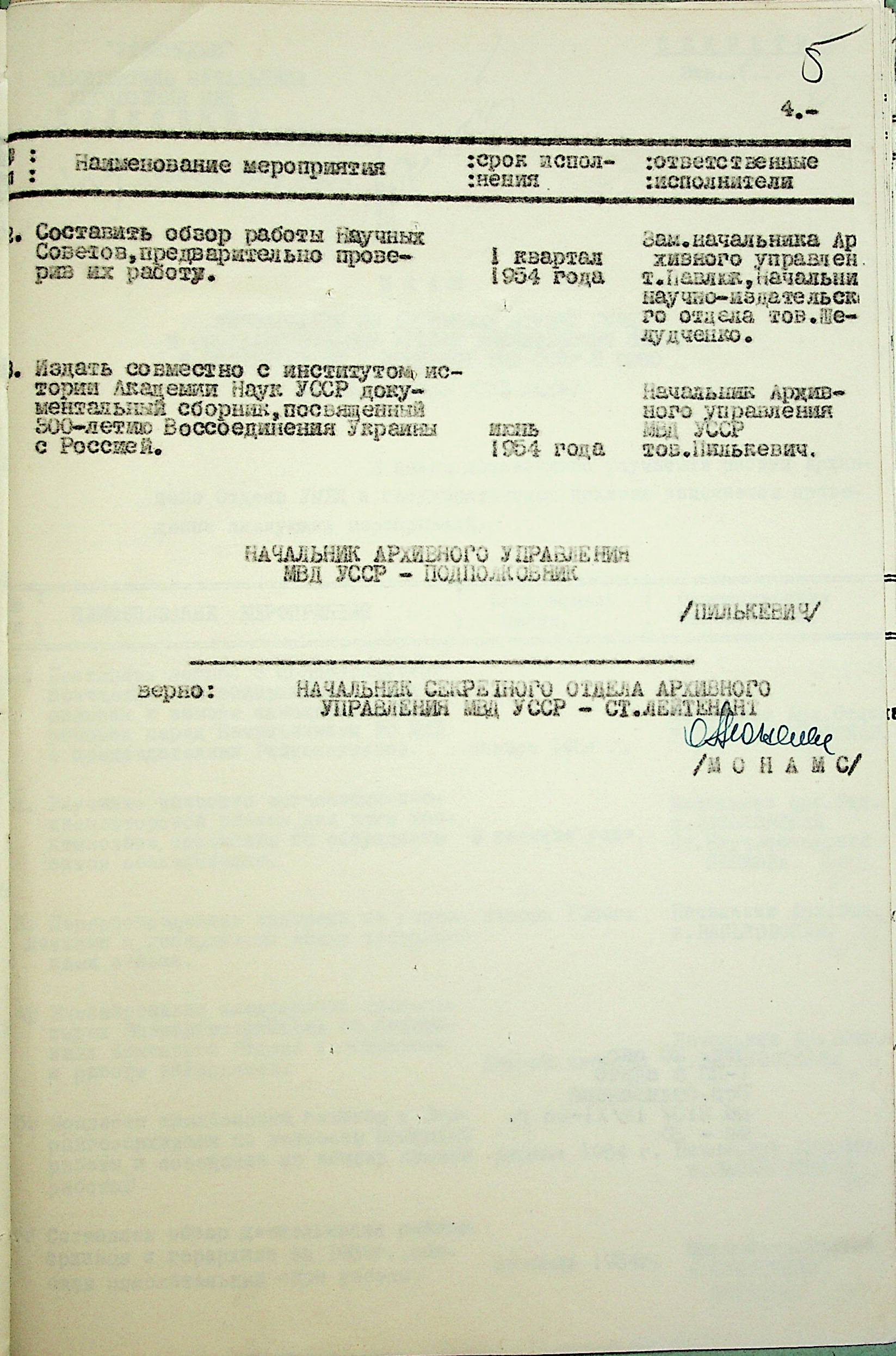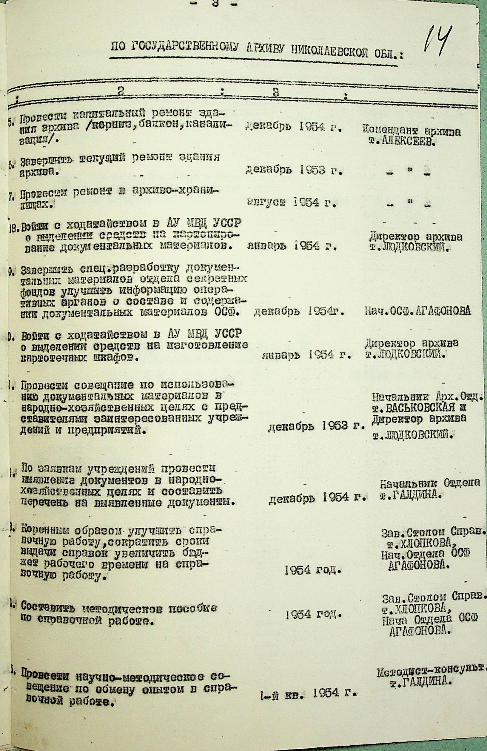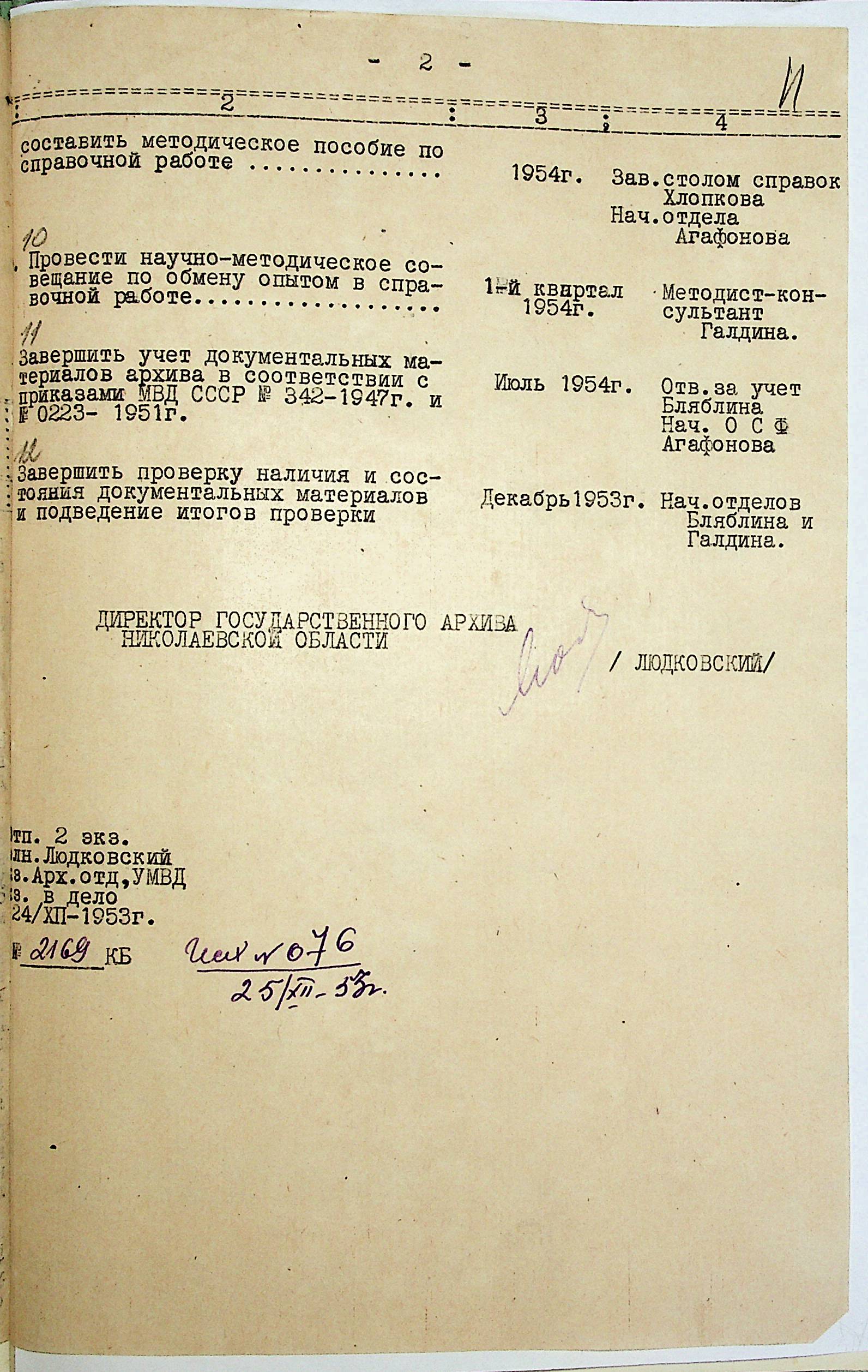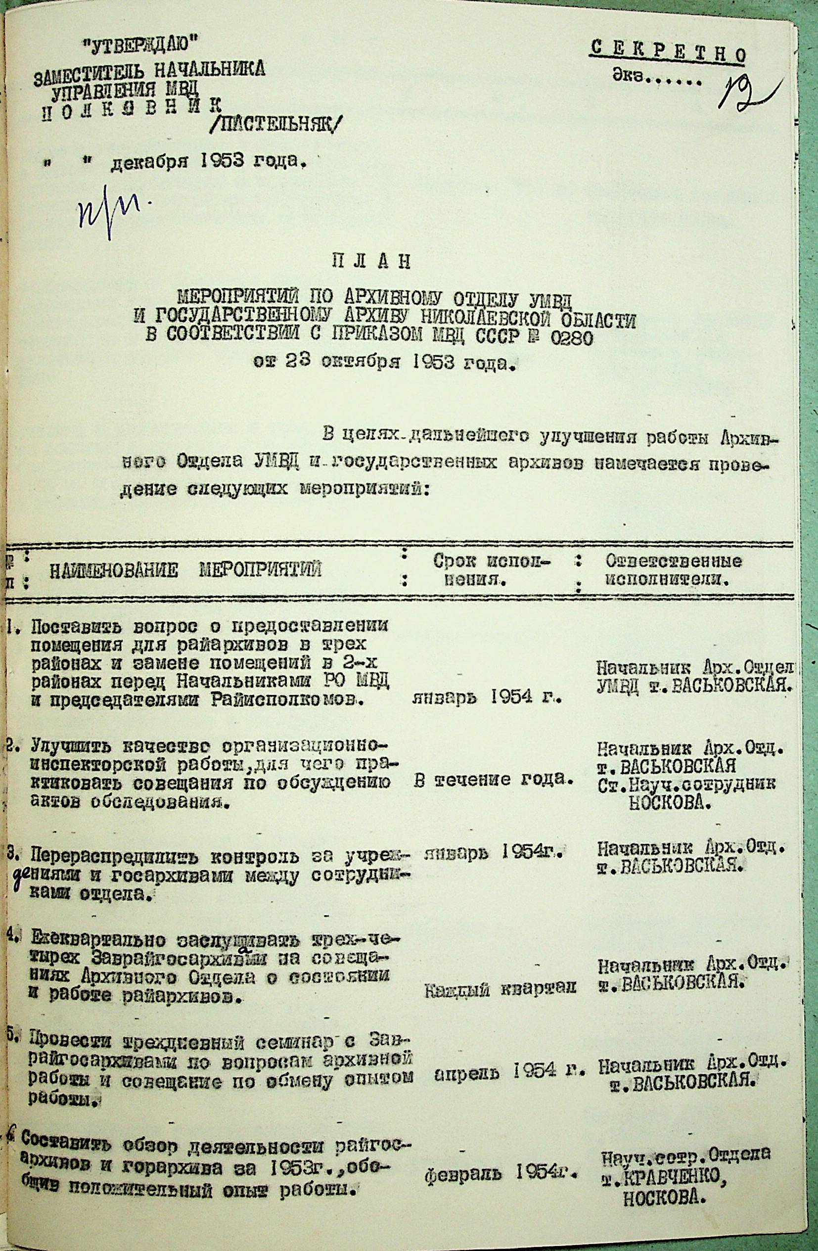 • • • • Справа № 203 “План заходів щодо поліпшення роботи Архівного відділу та державного архіву на 1953 р.”